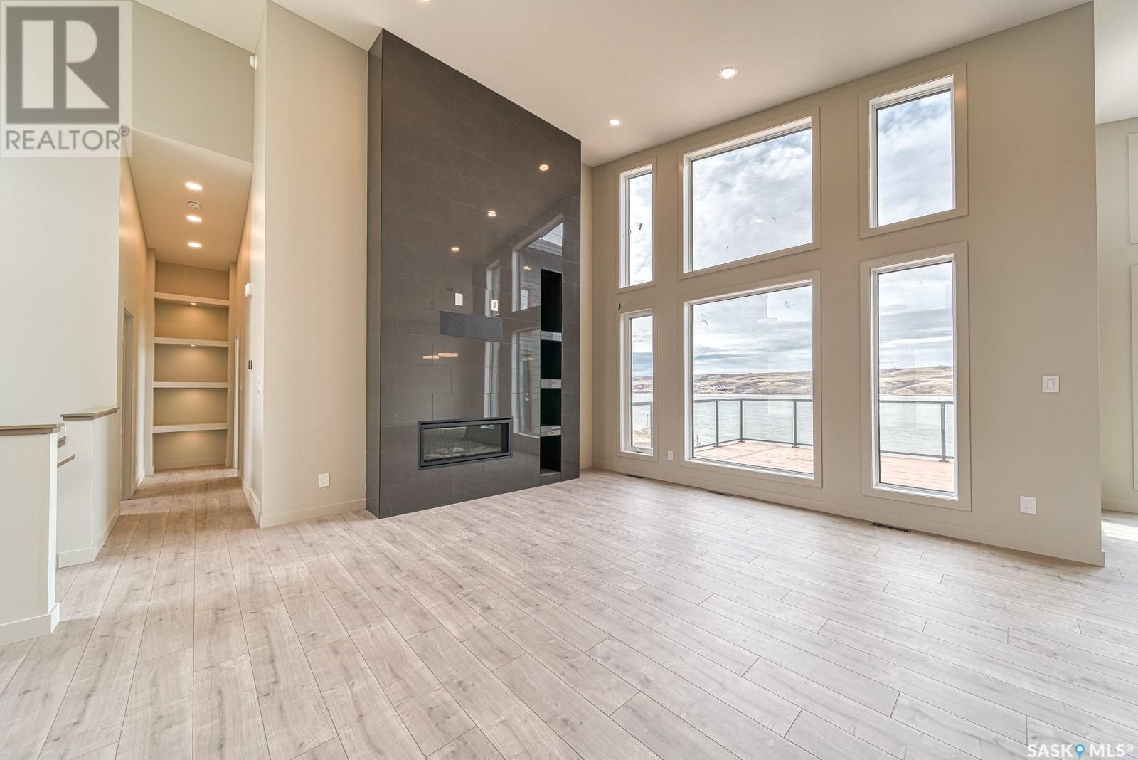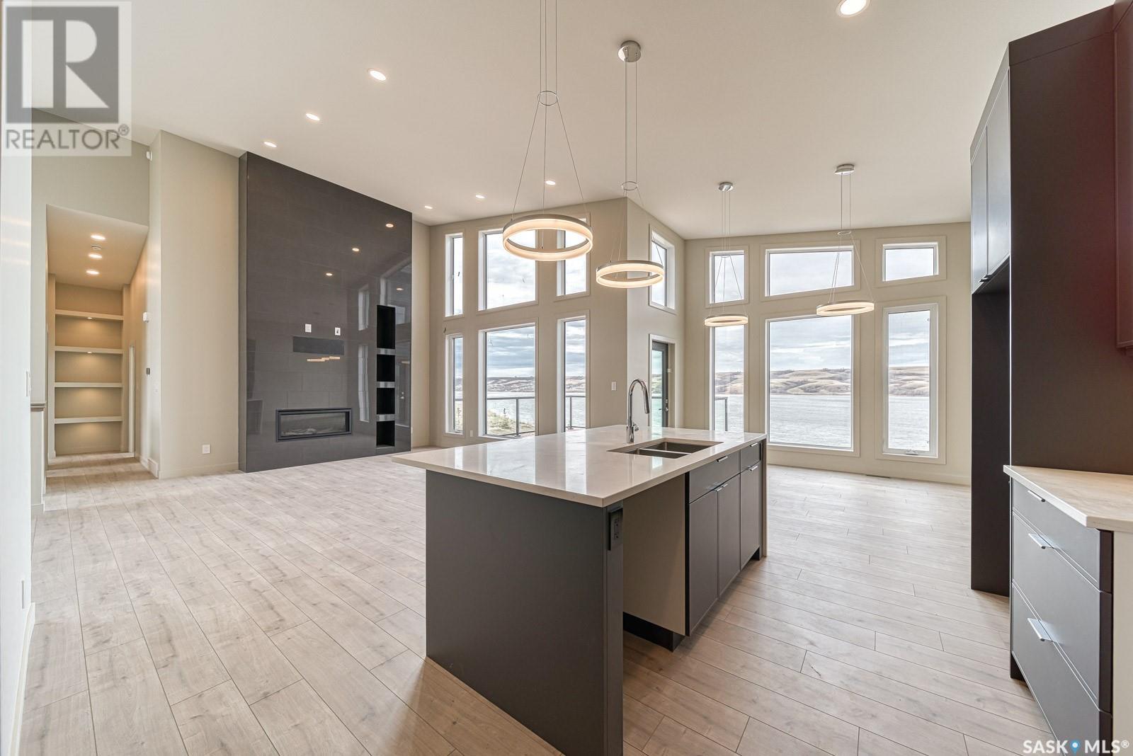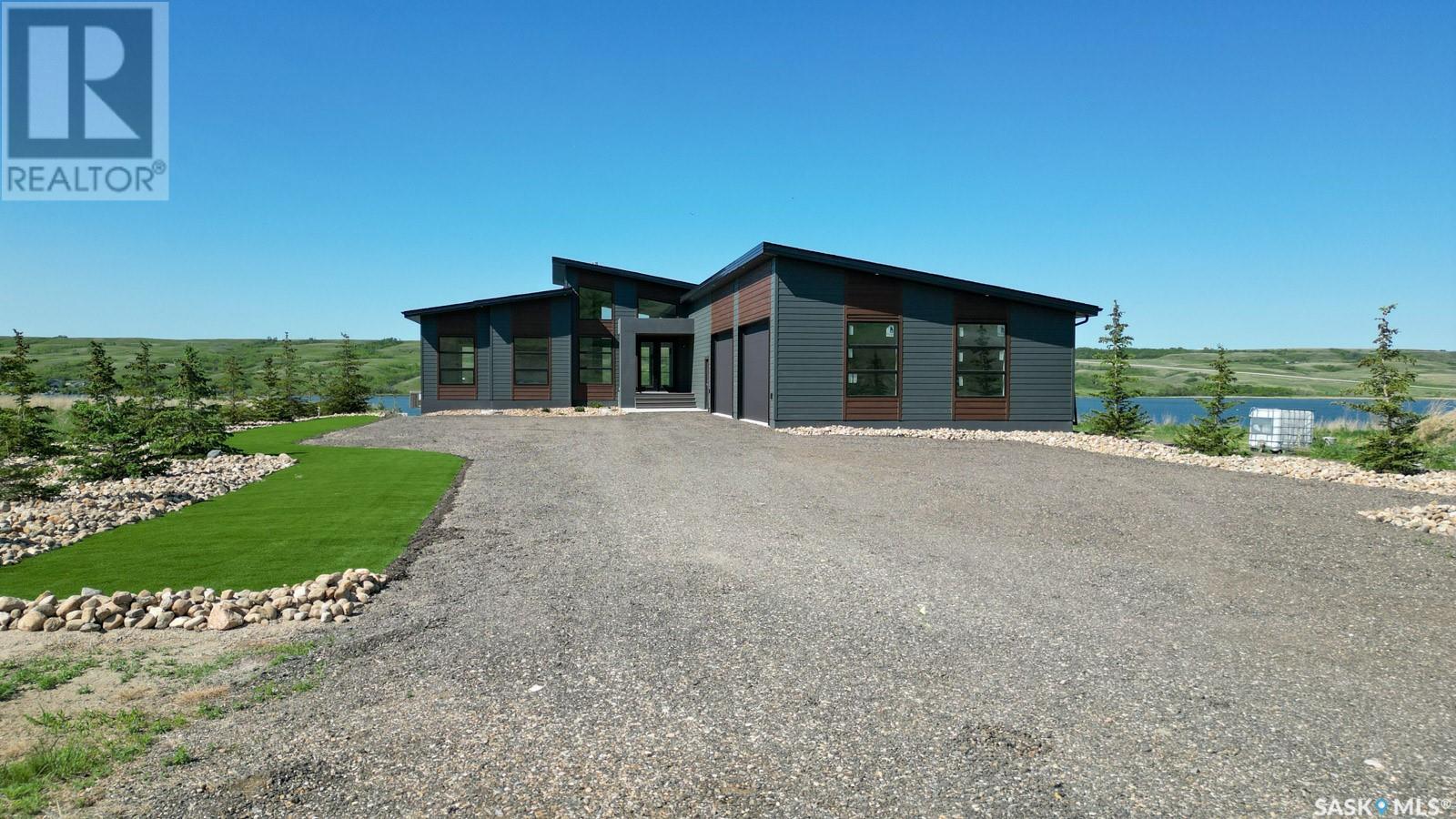 Words fail to describe this exceptional lakefront home! 12 Sunset Boulevard in the Resort Village of North Grove defines a legacy lifestyle property on Buffalo Pound Lake! Stunning contemporary design begins with a 4 car attached garage ushering you into the fabulous bungalow style home (2037 sq/ft on main level),with, of course, a walkout lower level specifically designed to surround you with panoramic lake views! Open concept design with vaulted ceilings, perfect kitchen design with central island, separate pantry room, dining area that steps onto a spacious deck overlooking the lake and of course the gas fireplace provides a wonderful family centric home! The main floor flows from the entry area to a full bath, a bedroom or office space, and then to the amazing primary suite with a lovely bath,...dual sinks, soaking tub, walk-in shower, leading to an amazing dressing room! When you enter from the garage (45'X28'), you find a perfect space that has outdoor access for a games room, fitness centre, home office, studio,....amazing! Yes, there is also a mudroom space before entering! The lower level steps into a fantastic family room with a wet bar area, Opti-mist fireplace, plus access to the covered, & screened patio,....WOW!! Of course there is a media room, 2 bedrooms, a full bath, laundry room, and utility/storage area! Now, step outside to relax with nature that has trees, retaining walls, firepit area,....views that you will never tire of! This newly constructed and never lived in home is a one of a kind opportunity! If desired, the lot #13, west of the property can be purchased separately, MLS# SK010137! Be sure to not miss this amazing place at the lake to call home! Drone shots + 3D scan of the interiors with 360s of the outdoor spaces are available for you! (id:43042)