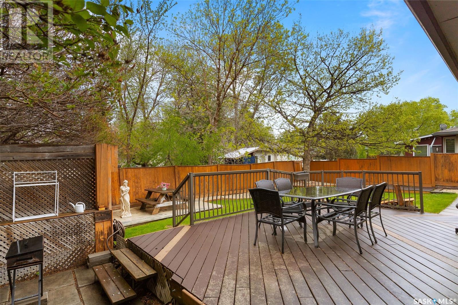 Welcome to 122 Michener Drive, a spacious and well-maintained bungalow in the desirable University Park neighbourhood of Regina. This 1,325 sq ft home offers a functional and family-friendly layout featuring three bedrooms and two bathrooms on the main floor, including a primary bedroom with a convenient 2-piece en suite. The inviting living room is filled with natural light and flows into a bright sunroom, perfect for enjoying morning coffee or a good book. Hardwood flooring adds warmth to the kitchen and dining room, while carpeted bedrooms ensure cozy comfort. A fully developed basement expands your living space with a large recreation room, a den, a 3-piece bathroom, and ample storage. Situated on a generous 6,490 sq ft lot, the outdoor space includes a private fenced yard with mature trees, a deck, patio, and lush lawn front and back—ideal for summer entertaining. The home also features a double attached garage (fully insulated and heated), central air conditioning, underground sprinklers, and updated appliances including a built-in dishwasher and microwave hood fan. Located near parks, walking paths, schools, and all east-end amenities, this home is move-in ready and perfectly positioned for family living. (id:43042)