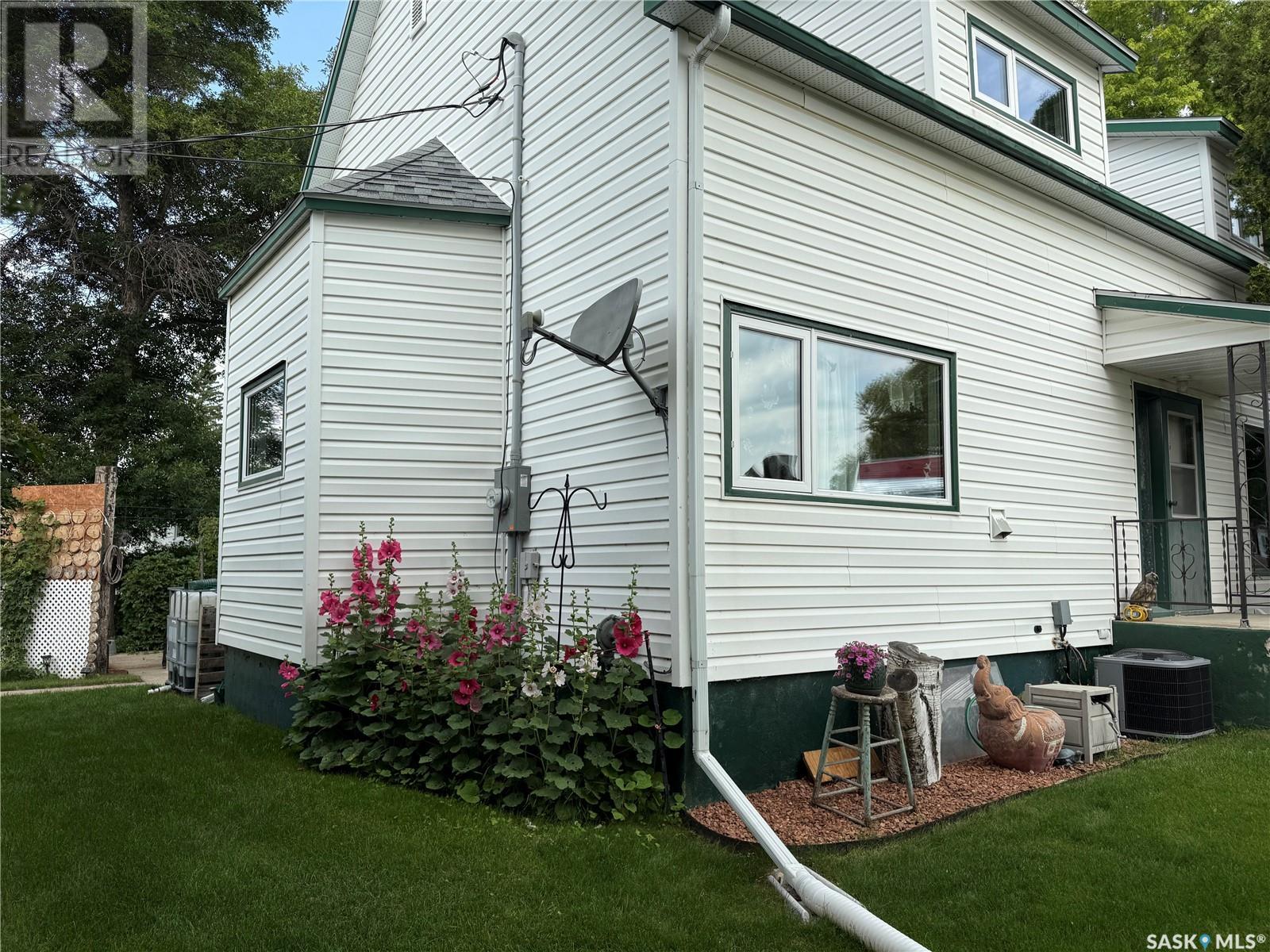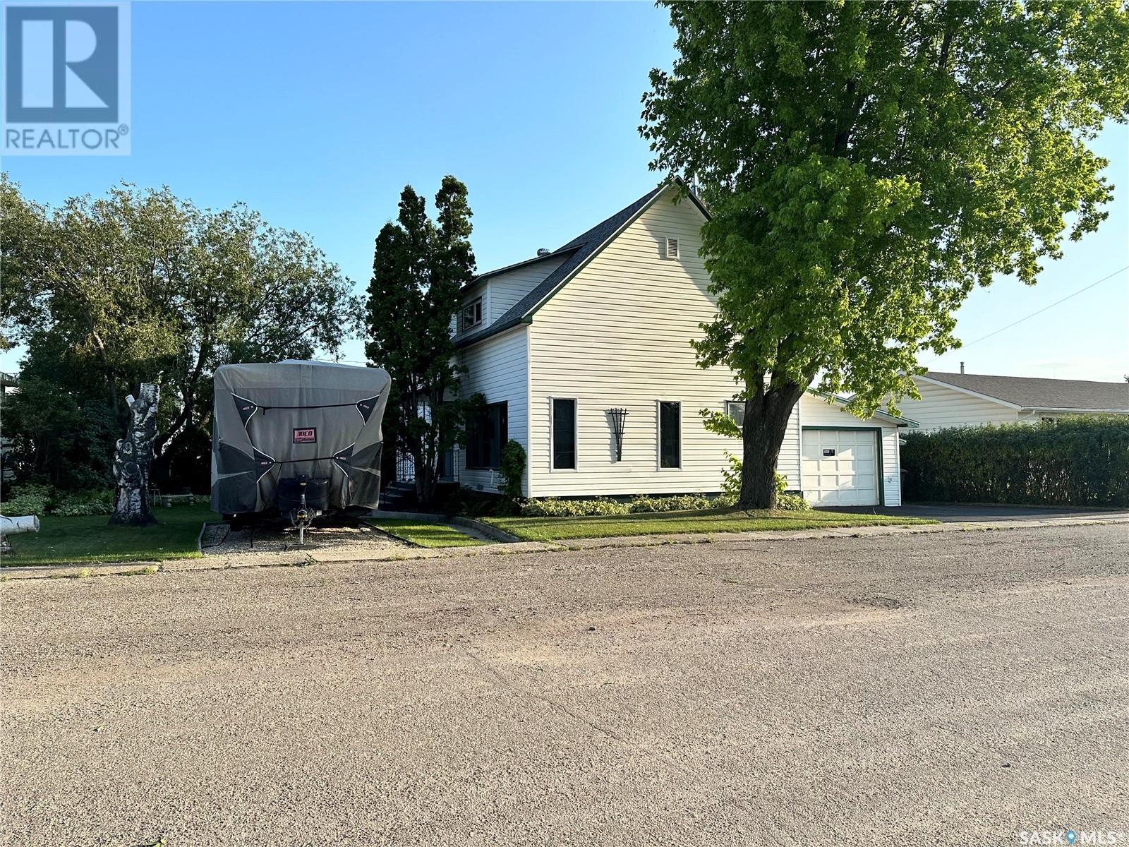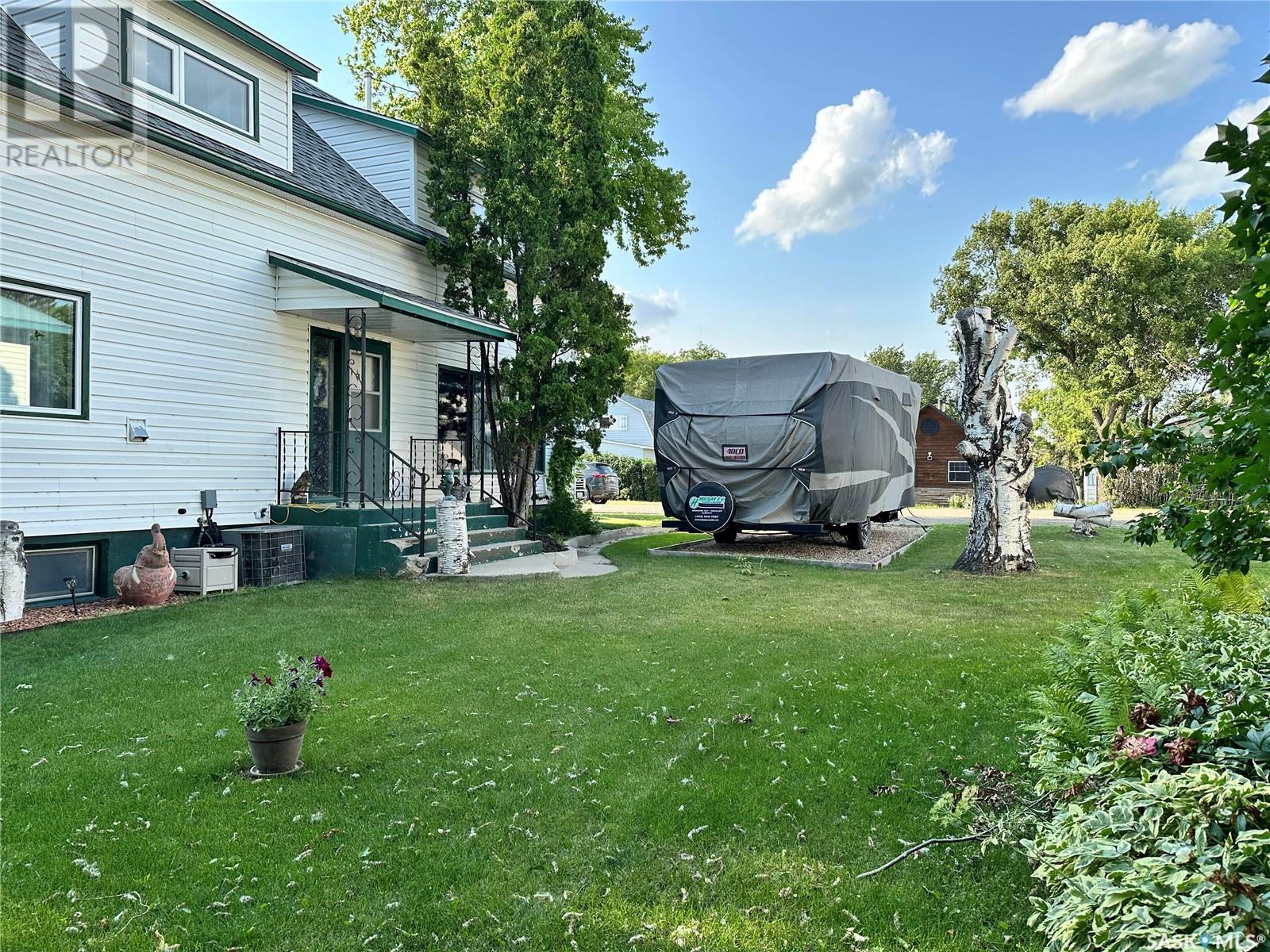 Stunning 4-Bedroom, 2-Bathroom Home in Drake, SK This beautifully updated 1 1/2 story home in Drake, SK, features 4 bedrooms and 2 bathrooms. Recent upgrades since 2021 include: water heater Feb 2025, an upgraded 200 amp electrical panel, 10 newer light fixtures, mostly newer switches and plugins, a 30 amp RV plug and GFI plug installed in the garage and fresh paint in the back entry, hall, kitchen, dining room, main floor bathroom and sewing room, 8 windows have been updated. The main floor shower was replaced in summer 2024, along with bathroom flooring, washer/dryer March 2025, Freshly painted upstairs bathroom 2025, air conditioner being installed summer 2025, carpet added in upstairs bedroom. Additional features include an added RV pad, a newer stove and range hood. The main floor offers direct entry from the garage with access to both main and basement levels. The bright and spacious kitchen is a chef’s dream, adjoining a dining room with a bay window overlooking the backyard and updated flooring. The abundantly sized living room provides access to the yard, and the main floor bathroom features a newly installed shower from summer 2024. Upstairs, there are four generously appointed bedrooms and a 3-piece bath with a tub. The basement includes multiple storage rooms, a den and a laundry/utility room. The exterior boasts a partially fenced backyard with mature trees, two storage sheds, a firepit, a garden, and a patio with a privacy fence. Located approximately 30 minutes from the BHP mine site and close to Drake Elementary School, Drake Community Centre, and various other businesses, this home combines modern upgrades with classic comfort, providing a perfect blend for families or professionals. Enjoy the advantages of a small-town setting while being conveniently close to essential amenities. **Call to view today!** (id:43042)