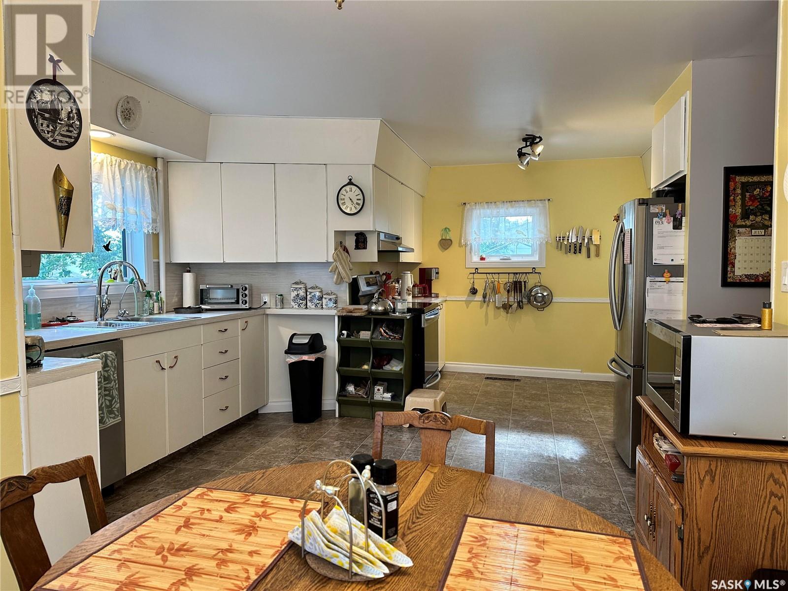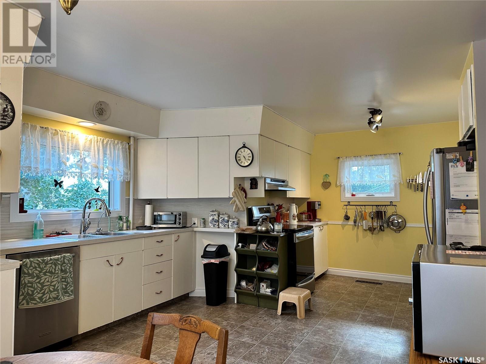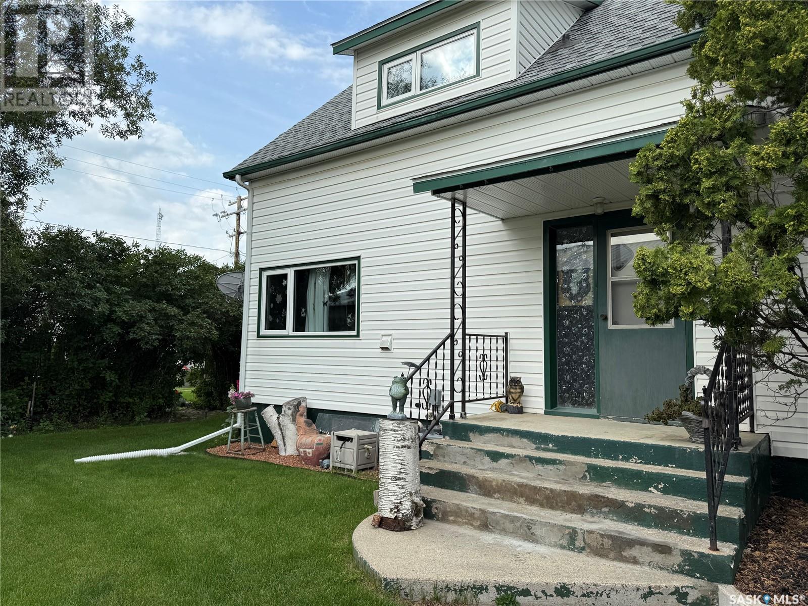 Stunning 4-Bedroom, 2-Bathroom Home in Drake, SK This beautifully updated 1 1/2 story home in Drake, SK, features 4 bedrooms and 2 bathrooms. Recent upgrades since 2021 include: water heater Feb 2025, an upgraded 200 amp electrical panel, 10 newer light fixtures, mostly newer switches and plugins, a 30 amp RV plug and GFI plug installed in the garage and fresh paint in the back entry, hall, kitchen, dining room, main floor bathroom and sewing room, 8 windows have been updated. The main floor shower was replaced in summer 2024, along with bathroom flooring, washer/dryer March 2025, Freshly painted upstairs bathroom 2025, air conditioner being installed summer 2025, carpet added in upstairs bedroom. Additional features include an added RV pad, a newer stove and range hood. The main floor offers direct entry from the garage with access to both main and basement levels. The bright and spacious kitchen is a chef’s dream, adjoining a dining room with a bay window overlooking the backyard and updated flooring. The abundantly sized living room provides access to the yard, and the main floor bathroom features a newly installed shower from summer 2024. Upstairs, there are four generously appointed bedrooms and a 3-piece bath with a tub. The basement includes multiple storage rooms, a den and a laundry/utility room. The exterior boasts a partially fenced backyard with mature trees, two storage sheds, a firepit, a garden, and a patio with a privacy fence. Located approximately 30 minutes from the BHP mine site and close to Drake Elementary School, Drake Community Centre, and various other businesses, this home combines modern upgrades with classic comfort, providing a perfect blend for families or professionals. Enjoy the advantages of a small-town setting while being conveniently close to essential amenities. **Call to view today!** (id:43042)
