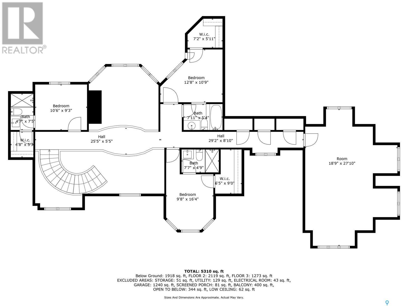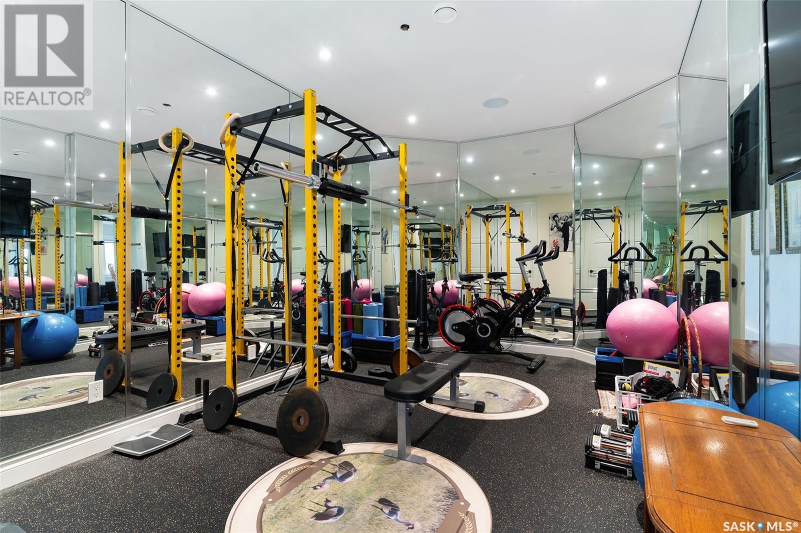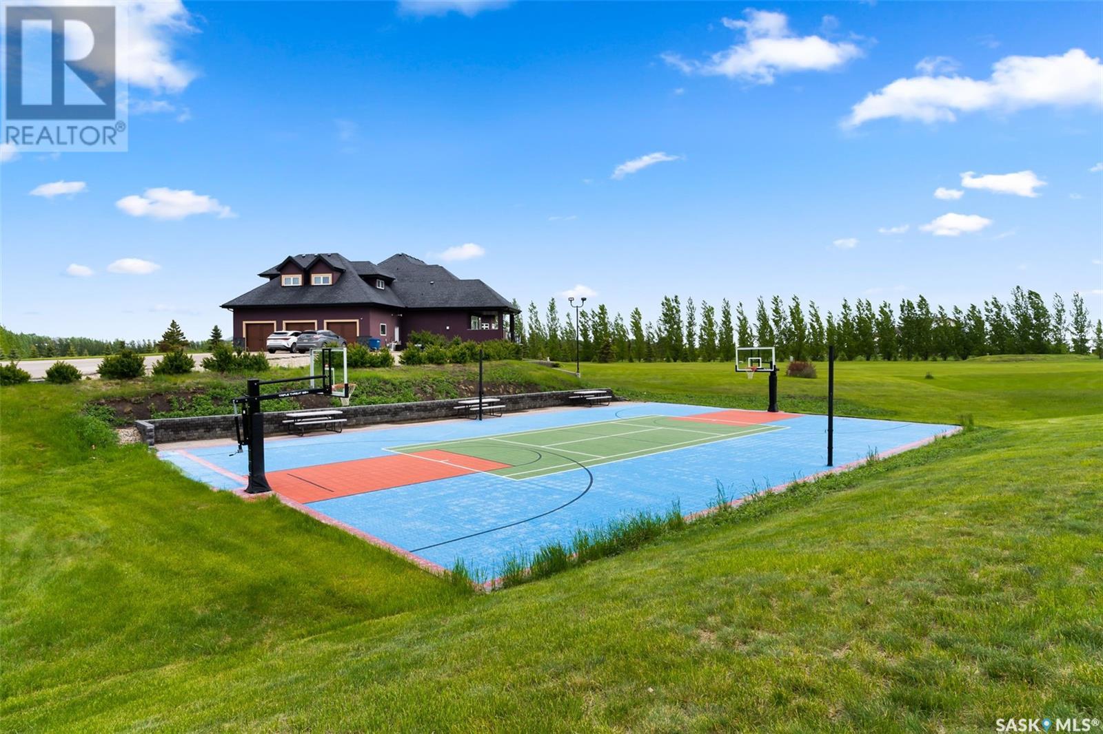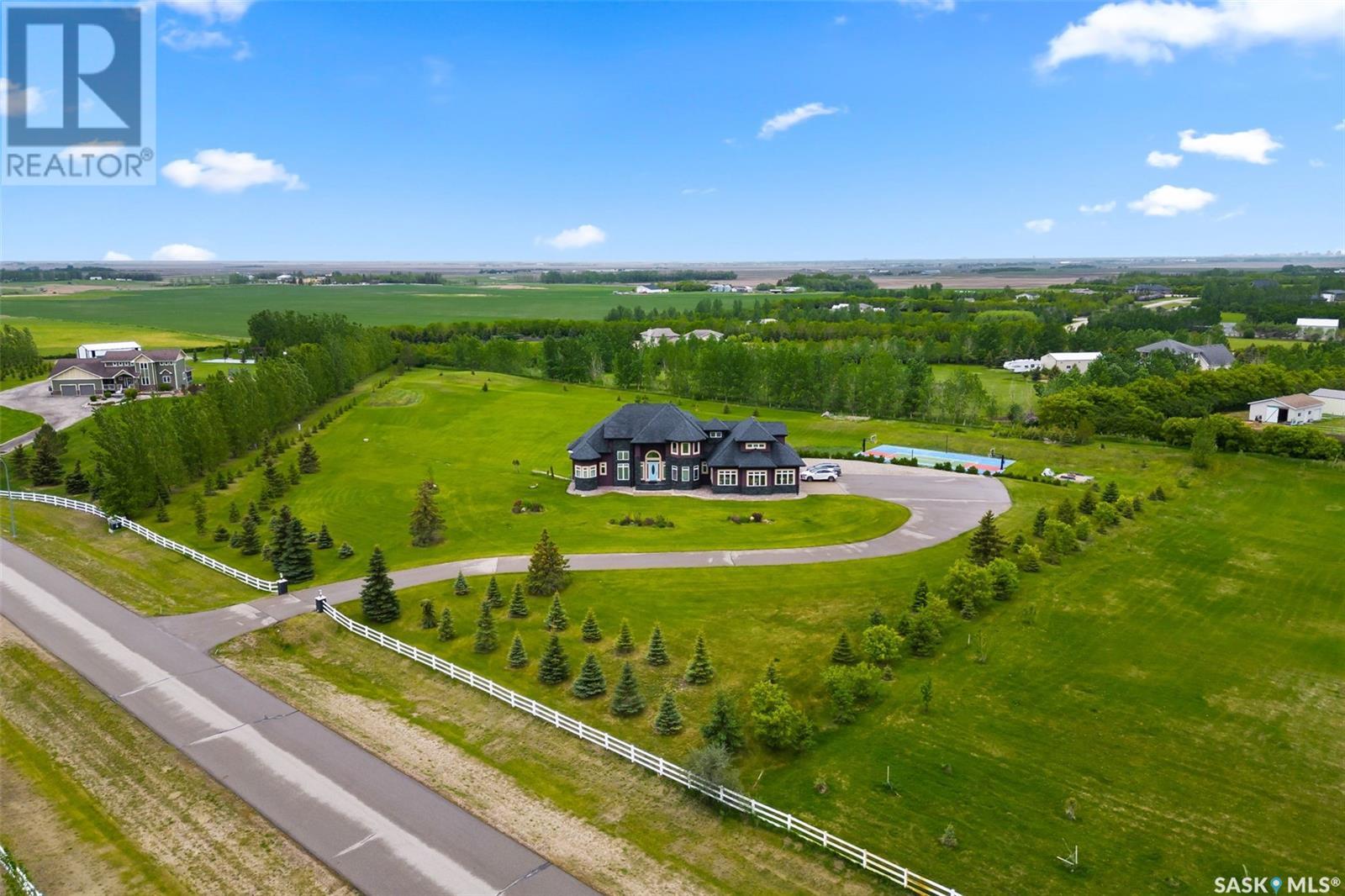 Step into luxury living with this stunning custom-built D&S Home boasting over 4000 sq ft, plus a 2500 sq ft walkout lower level. As you enter through the front door, a grand foyer welcomes you. Spiral staircases lead to both the second floor and the walkout basement. In the living room soaring ceilings and abundant windows create an airy ambiance, complemented by a cozy gas fireplace. African Mahogany hardwood flooring graces much of the main floor. Entertain with ease in the dining area,complete with a wet bar and beverage fridge.The kitchen is a chef's dream with custom cabinets and high-end appliances.The laundry and mudroom include a sizable pantry and provides access to the 5-car garage. Step outside onto the expansive deck with a built-in BBQ.The main floor also hosts a music room,half bath,and an office with access to a three-season sunroom.The primary bedroom exudes luxury with his and her walk-in closets and an ensuite featuring heated tile floors,a heated and lighted soaker tub,and a built-in TV within the vanity mirror.The primary bedroom also allows access to the sunroom.Ascend to the second floor with three bedrooms and three bathrooms providing comfort and privacy.Two of the bedrooms feature their own three-piece baths, while the third bedroom has access to a shared full bathroom.A spacious bonus room offers an additional versatile living space.The lower level features a library/office space,family room with a wet bar,wine room,and a dedicated exercise room. There are also two additional bedrooms,each with walk-in closets and patio access. Completing the lower level is a half bath,3-piece bath,and ample storage.Most of the lower level has in-floor heating and there is also garage access. Outside, enjoy recreation on the multi-purpose sports court with lighting. A private well conveniently provides irrigation to all the grass and trees on the expansive property. This home blends sophistication with convenience for an unparalleled living experience. (id:43042)