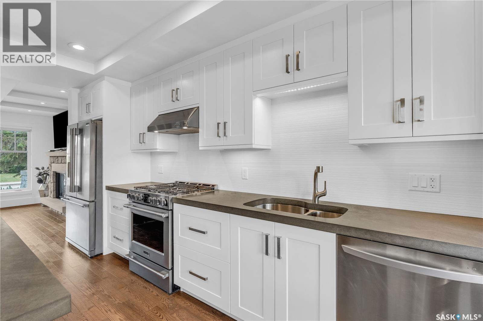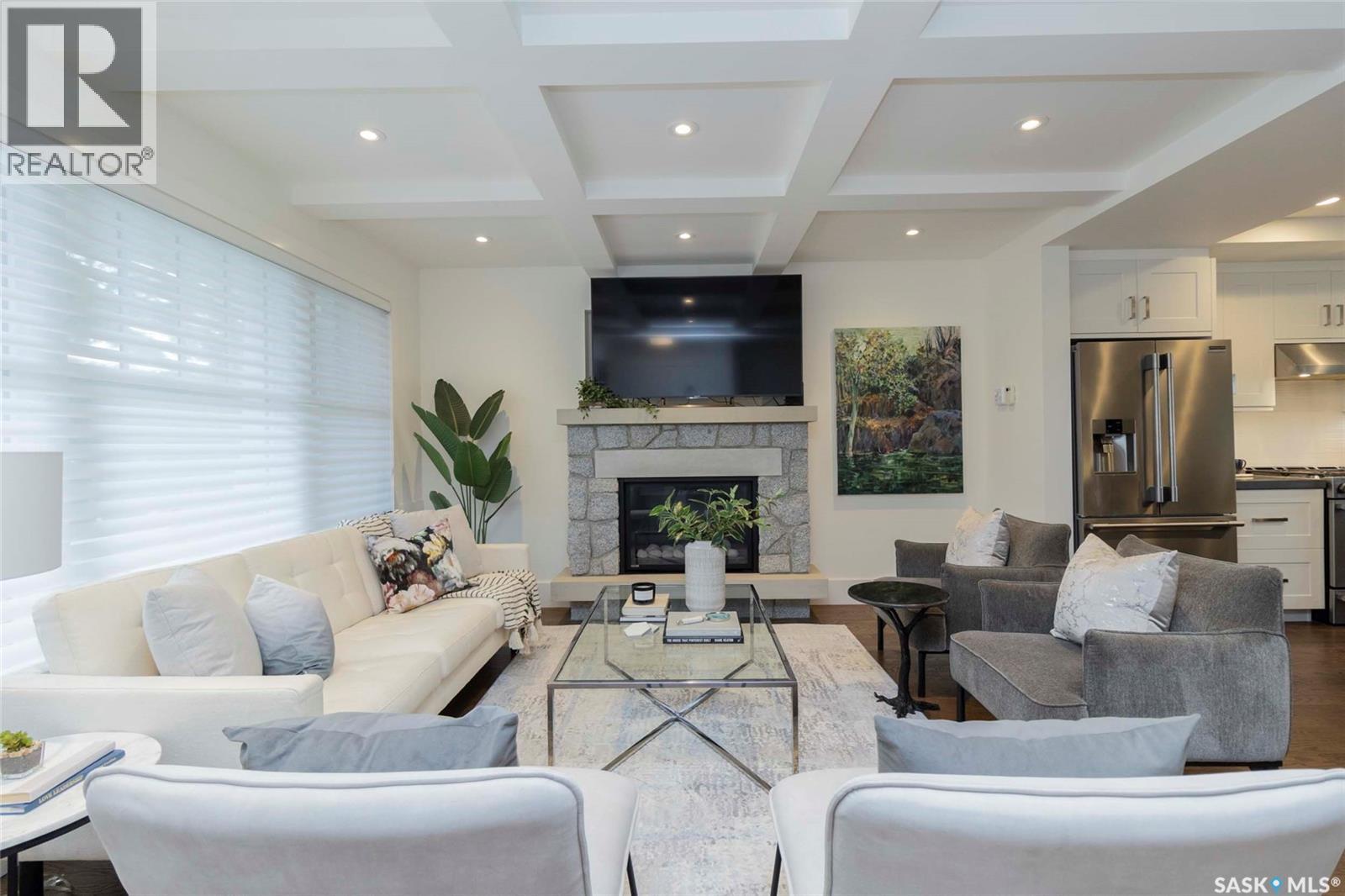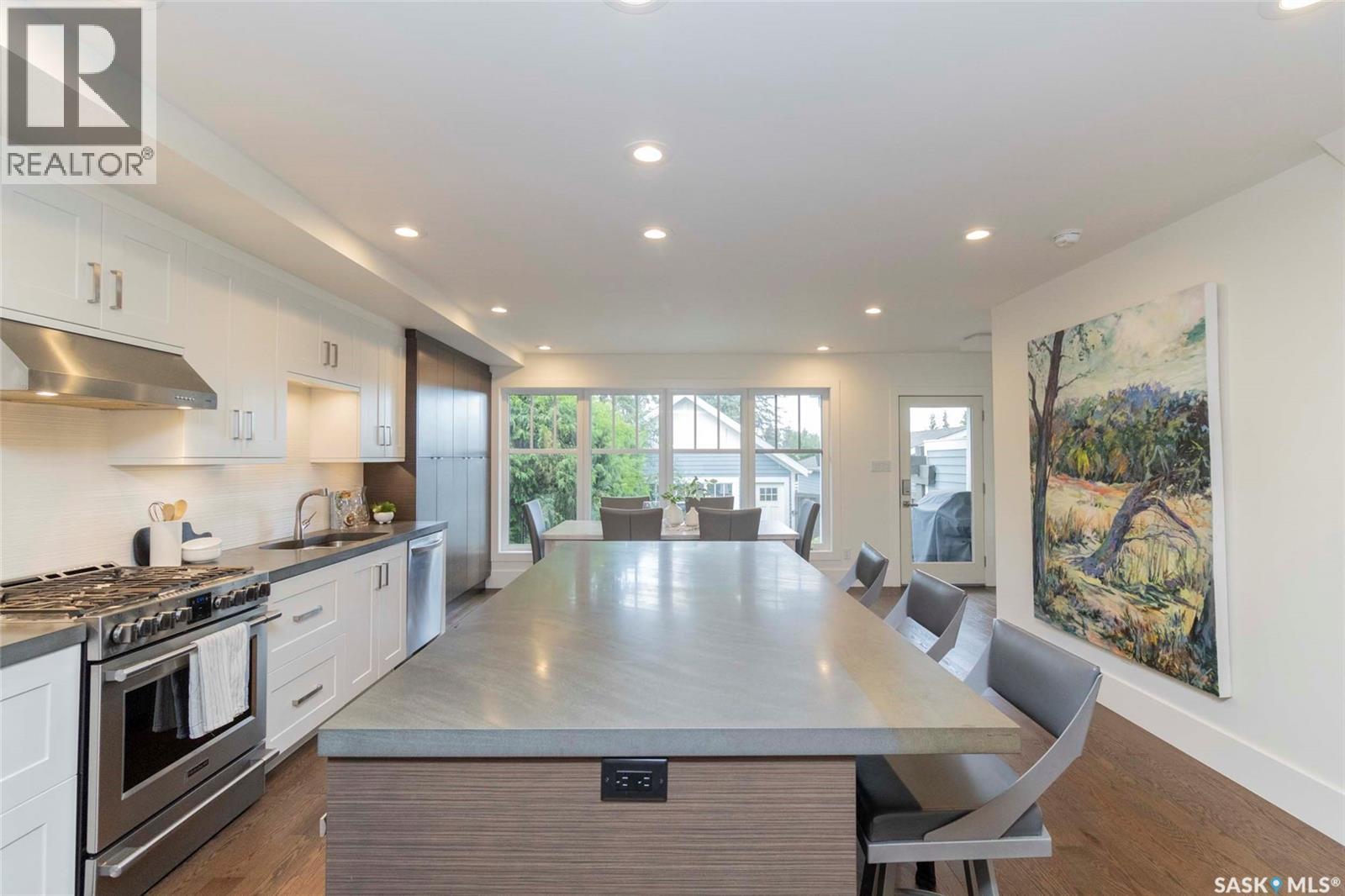 Welcome to 1315A 11th St E, a thoughtfully designed Craftsman-style home that blends timeless elegance with modern energy efficiency. Every detail in this home was crafted for comfort, sustainability, and style. The main floor boasts a chef’s kitchen with custom cabinetry, a large island topped with 2" bluestone, and premium appliances including a gas range, and Miele speed and steam ovens. The bright living room features coffered ceilings, a gas fireplace with masonry surround, and large south-facing windows. Upstairs, the primary suite includes vaulted ceilings, skylights, and a spa-inspired ensuite with a walk-in tile shower. The bathrooms feature floating bluestone vanities, with a jet tub in the main bath. The spacious secondary bedrooms offer ample storage with built-in shelving and in-closet lighting. The basement is filled with natural light thanks to oversized windows and timber-framed window wells, and includes a home office, family room, and generous storage. Oriented to maximize passive solar gain, the home features natural materials, radiant in-floor heating on all levels, dual insulation (spray foam and reflective), and an offset stud wall system to eliminate thermal bridging. The professionally landscaped yard is finished with bluestone tile, LED lighting, and low-maintenance micro-drip irrigation. A heated, insulated double garage provides space for two vehicles, plus an additional driveway in front and parking behind the garage. A rare blend of beauty, efficiency, and craftsmanship in a prime location! (id:43042)