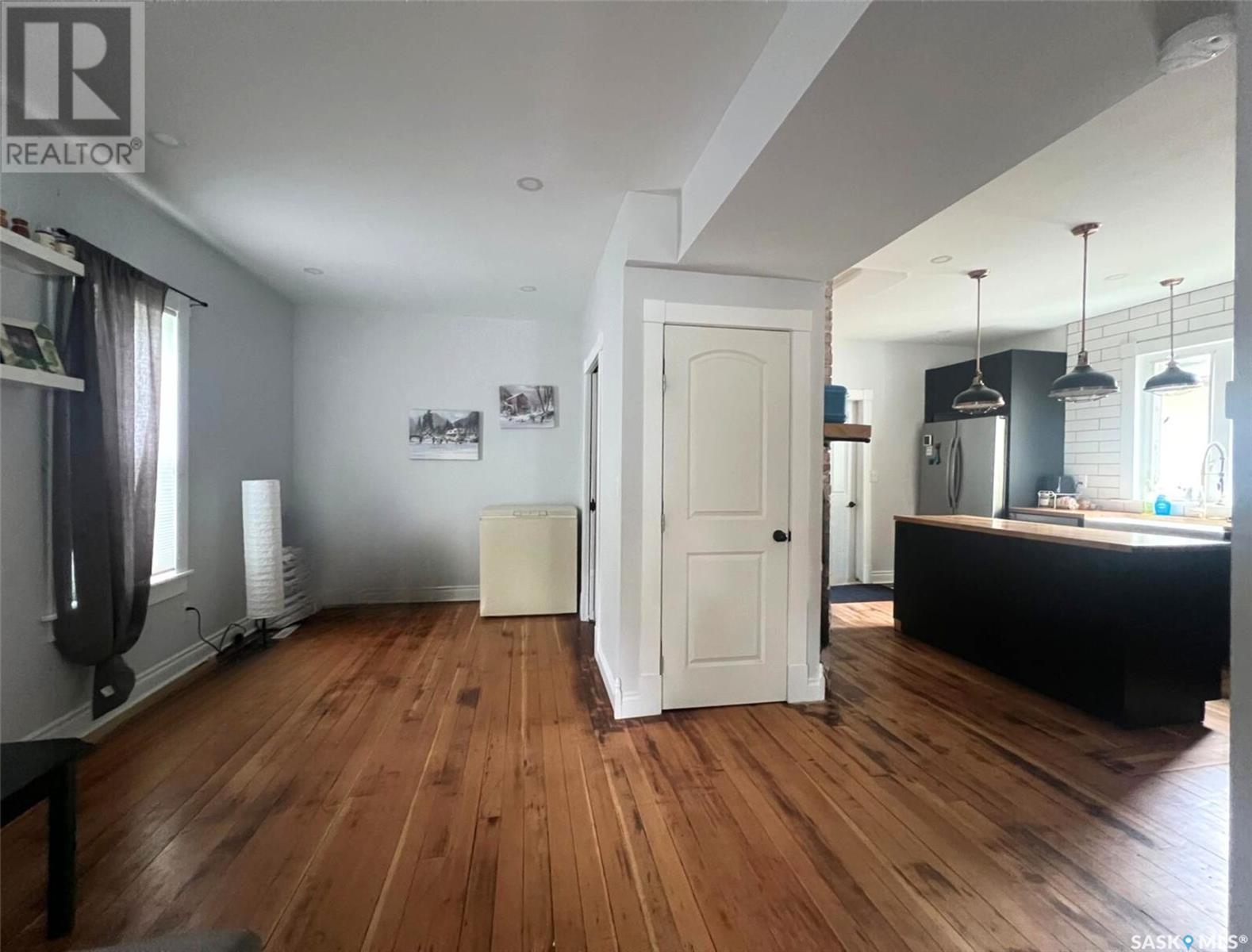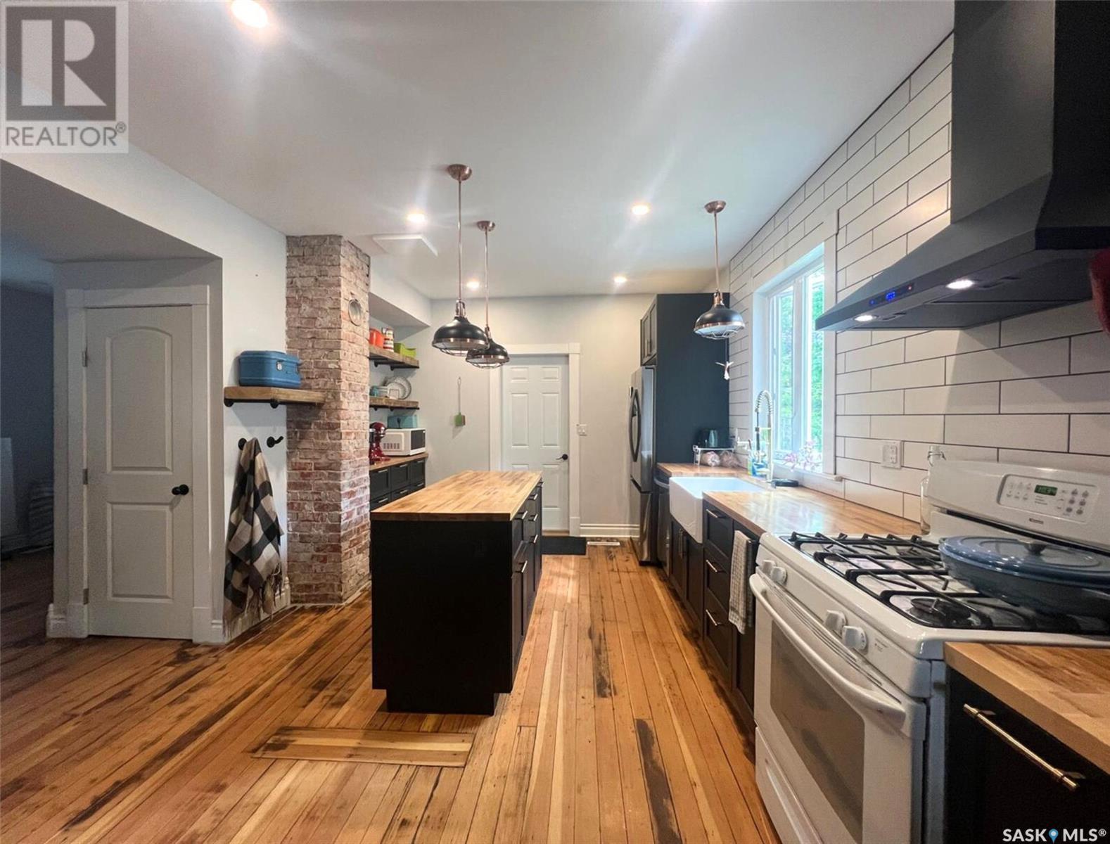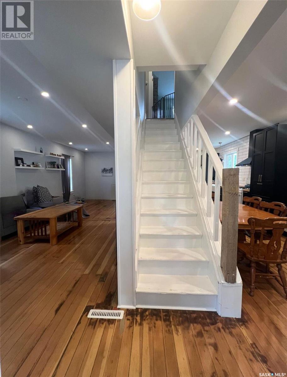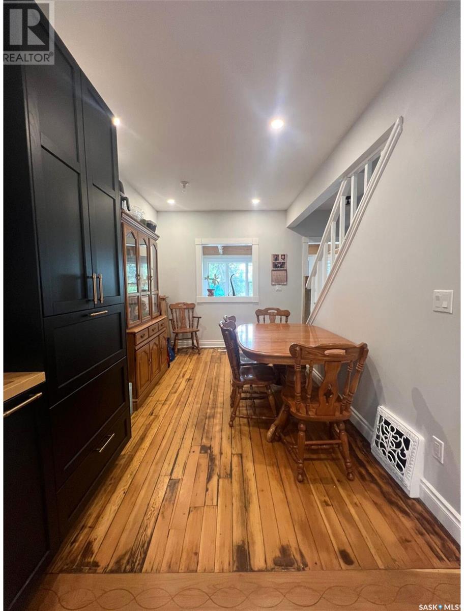 This updated 1905 home is located within walking distance to the amenities of downtown Swift Current as well as Central K-8 School and Westside Park. It showcases a lovely mix of preserved features as well as modern upgrades and touches. The front door opens to an inviting, heated porch area which has a high ceiling with exposed beams and great storage space for outdoor gear to stay organized, as well as a neat area for sunny seating if desired. The main level flows comfortably around the stairwell. To the right of the stairway is the connected kitchen and dining room where original meets contemporary in a lovely combination; the new kitchen features black cabinetry, an apron-front sink, industrial light fixtures in addition to pot lights, open shelving, butcher block countertops, and this combined with the brick chimney accent and rich-toned original hardwood floors create a timeless space in the heart of the home. The other side of the house hosts the expansive, elongated living room, this level also has a new 2-piece bath, and also a mudroom complete with shiplap walls, a reclaimed wood ceiling, and hexagon tile inspired flooring. On the upper level you will find 3 bedrooms, a large, new 4-piece bathroom with the laundry hiding behind closet doors. The entire level is finished with original doors and hardware plus the addition of new vinyl plank flooring. Outside, the fenced yard is spacious, private & relaxing. It includes a garden shed & features low-maintenance ground clover. Other updates include an HE furnace, new electrical, updated plumbing, drywall, tile, siding and PVC windows. Call for more info or to book your own personal showing! (id:43042)