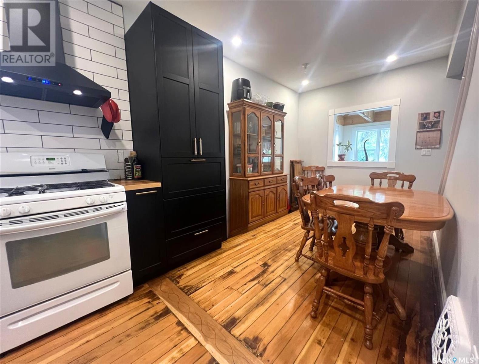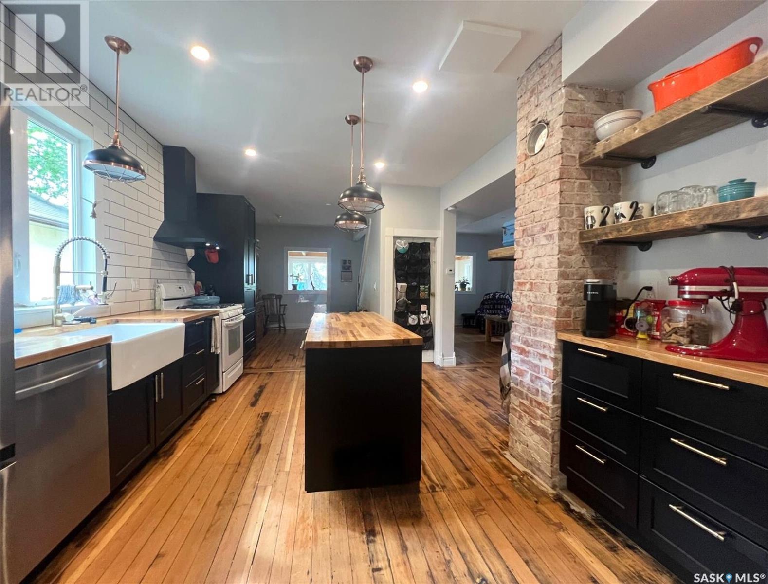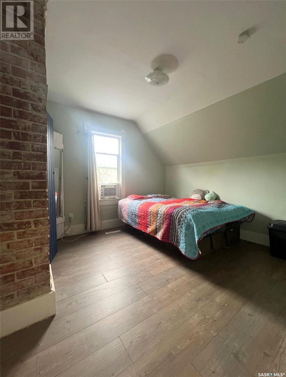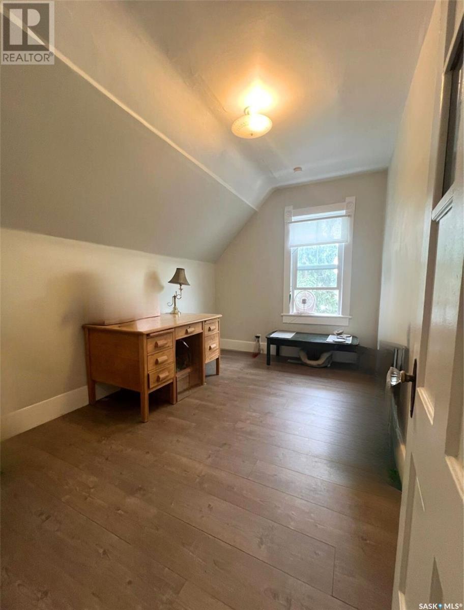 This updated 1905 home is located within walking distance to the amenities of downtown Swift Current as well as Central K-8 School and Westside Park. It showcases a lovely mix of preserved features as well as modern upgrades and touches. The front door opens to an inviting, heated porch area which has a high ceiling with exposed beams and great storage space for outdoor gear to stay organized, as well as a neat area for sunny seating if desired. The main level flows comfortably around the stairwell. To the right of the stairway is the connected kitchen and dining room where original meets contemporary in a lovely combination; the new kitchen features black cabinetry, an apron-front sink, industrial light fixtures in addition to pot lights, open shelving, butcher block countertops, and this combined with the brick chimney accent and rich-toned original hardwood floors create a timeless space in the heart of the home. The other side of the house hosts the expansive, elongated living room, this level also has a new 2-piece bath, and also a mudroom complete with shiplap walls, a reclaimed wood ceiling, and hexagon tile inspired flooring. On the upper level you will find 3 bedrooms, a large, new 4-piece bathroom with the laundry hiding behind closet doors. The entire level is finished with original doors and hardware plus the addition of new vinyl plank flooring. Outside, the fenced yard is spacious, private & relaxing. It includes a garden shed & features low-maintenance ground clover. Other updates include an HE furnace, new electrical, updated plumbing, drywall, tile, siding and PVC windows. Call for more info or to book your own personal showing! (id:43042)