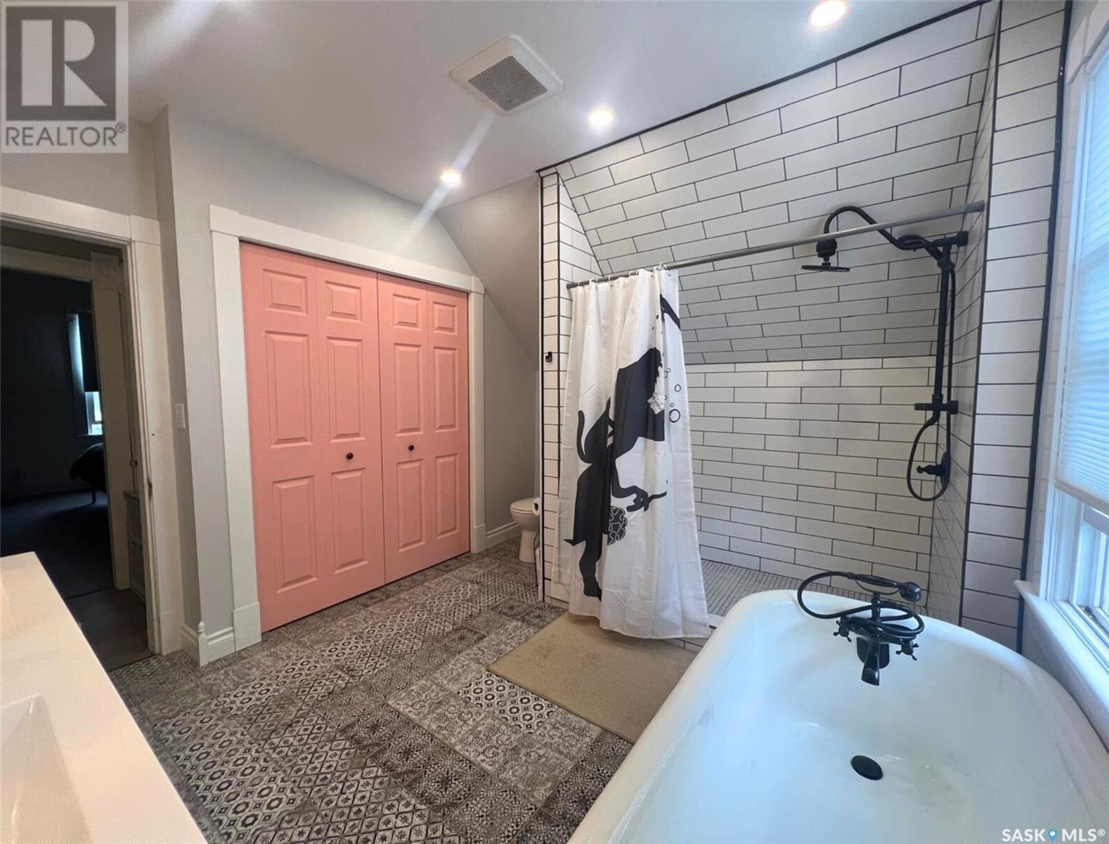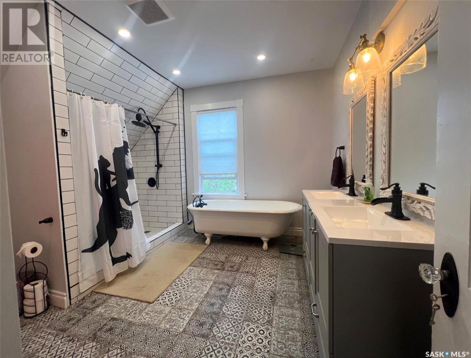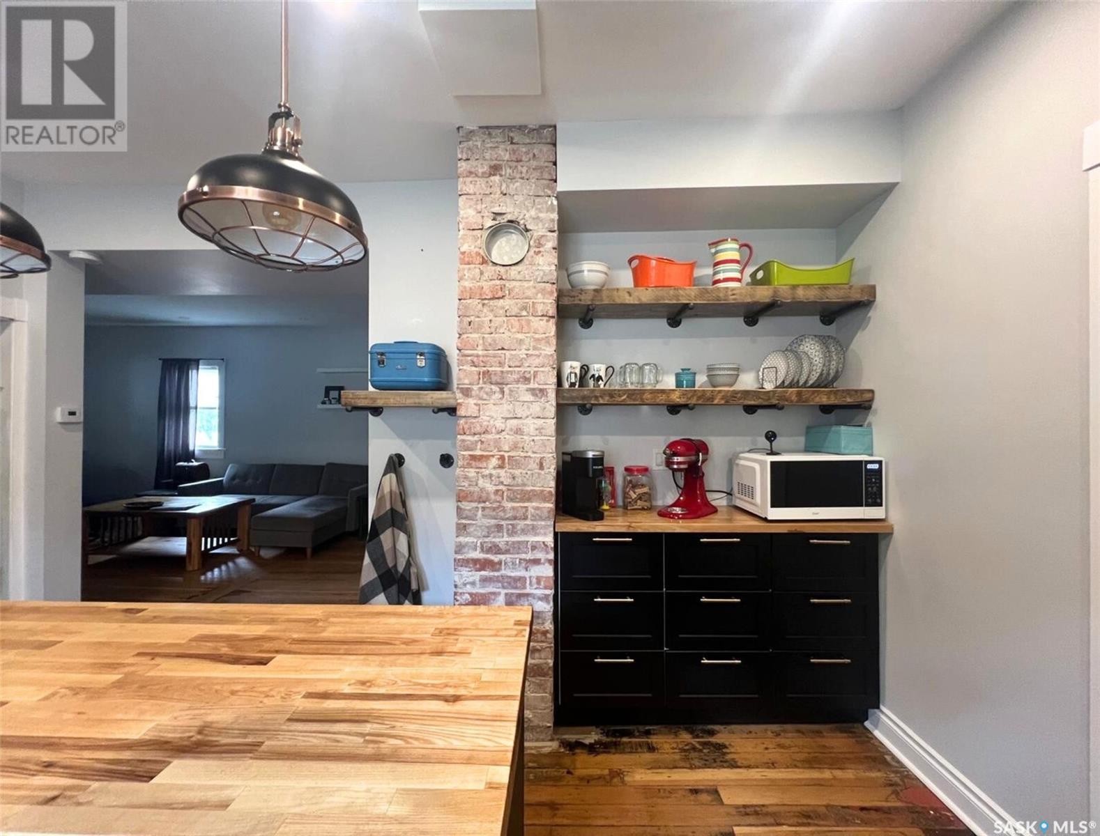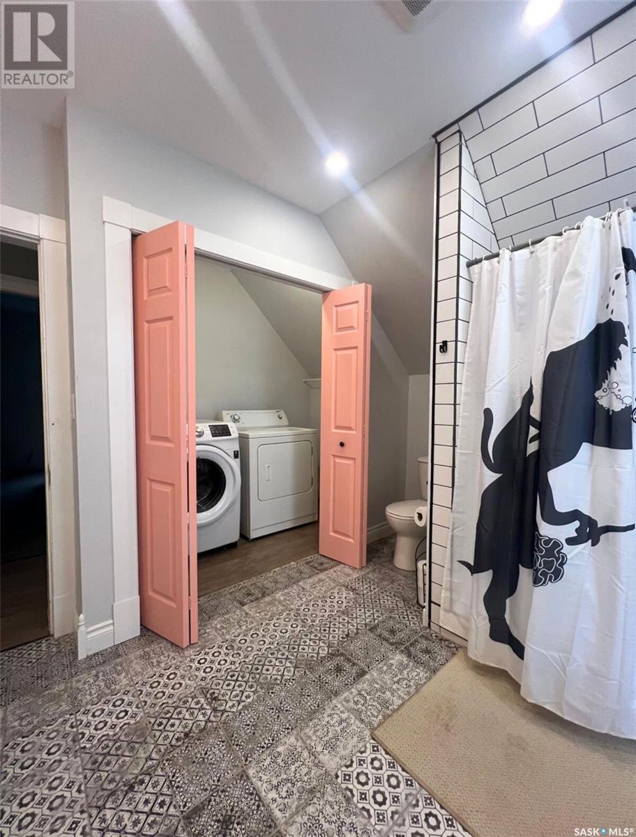 This updated 1905 home is located within walking distance to the amenities of downtown Swift Current as well as Central K-8 School and Westside Park. It showcases a lovely mix of preserved features as well as modern upgrades and touches. The front door opens to an inviting, heated porch area which has a high ceiling with exposed beams and great storage space for outdoor gear to stay organized, as well as a neat area for sunny seating if desired. The main level flows comfortably around the stairwell. To the right of the stairway is the connected kitchen and dining room where original meets contemporary in a lovely combination; the new kitchen features black cabinetry, an apron-front sink, industrial light fixtures in addition to pot lights, open shelving, butcher block countertops, and this combined with the brick chimney accent and rich-toned original hardwood floors create a timeless space in the heart of the home. The other side of the house hosts the expansive, elongated living room, this level also has a new 2-piece bath, and also a mudroom complete with shiplap walls, a reclaimed wood ceiling, and hexagon tile inspired flooring. On the upper level you will find 3 bedrooms, a large, new 4-piece bathroom with the laundry hiding behind closet doors. The entire level is finished with original doors and hardware plus the addition of new vinyl plank flooring. Outside, the fenced yard is spacious, private & relaxing. It includes a garden shed & features low-maintenance ground clover. Other updates include an HE furnace, new electrical, updated plumbing, drywall, tile, siding and PVC windows. Call for more info or to book your own personal showing! (id:43042)