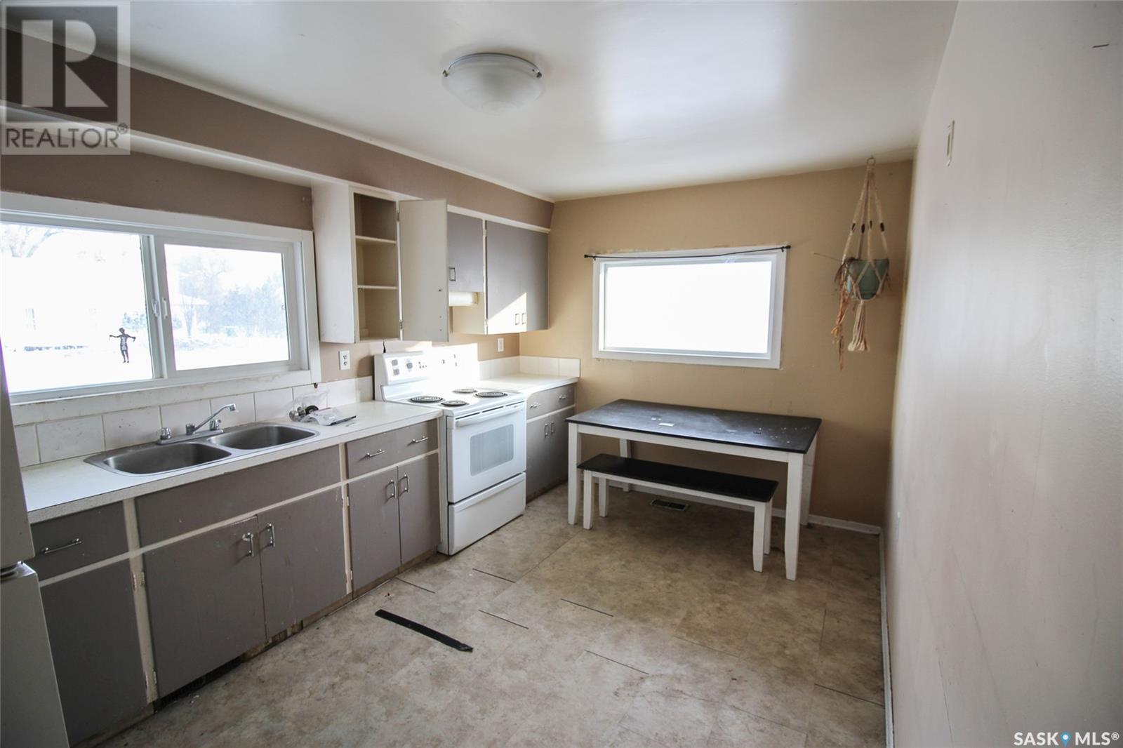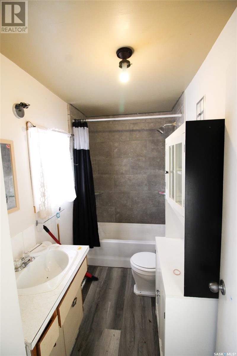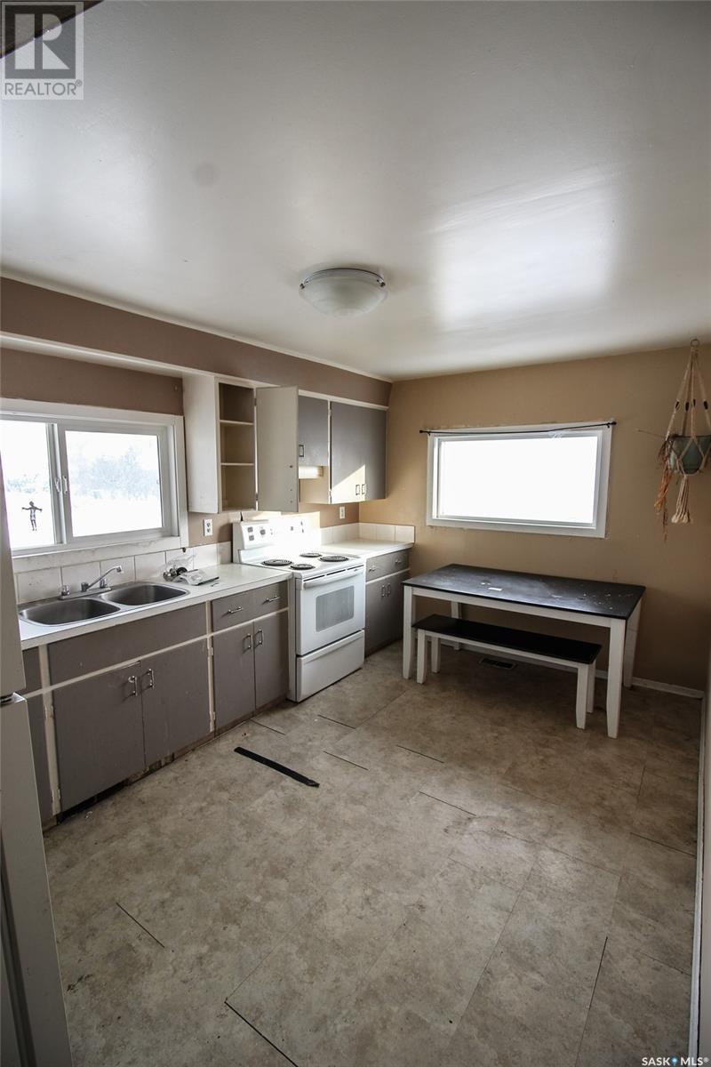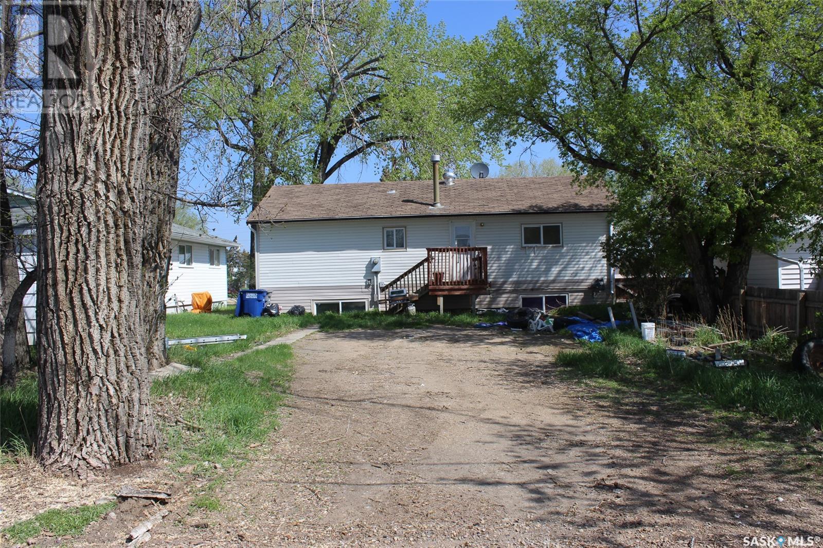 Right on the way into Eastend, SK this beauty is the best bang for your buck! This raised bungalow was set up on a large 50'x120' lot. A three bedroom bungalow, with an un-traditional layout, this home is ready for your family. Through the front door you enter into a large living room with great natural light. The kitchen is a dine-in style with a large bank of cabinets and sunny views. Each of the three bedrooms have loads of closet space and the main floor bath has a deep soaker tub with a ceramic tile surround. The lower level is framed up with bedroom and 2pc bath. The Seller has worked hard to update all the windows to newer PVC style, added an updated electrical pane, pex plumbing, and an EE furnace. Lots of the heavy lifting has been done with drywall hung so the finishing will be quick and easy. The owner has just updated the shingles in July of 2024. Get the space and updates you are looking for at the price you want! (id:43042)