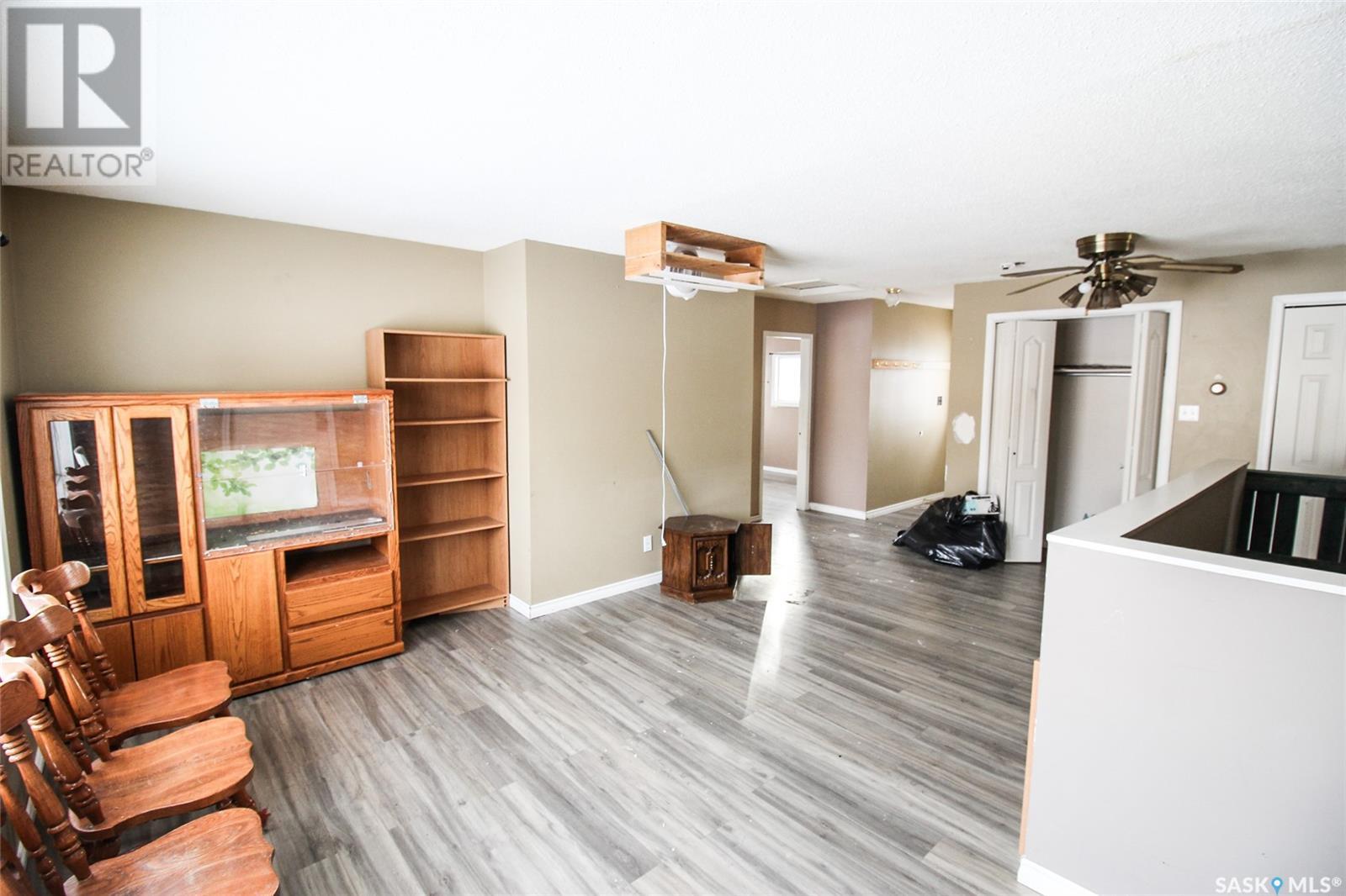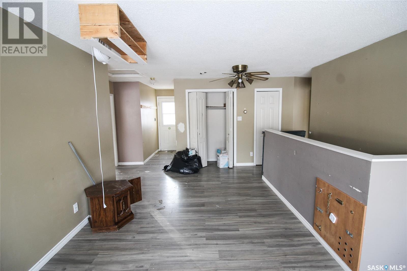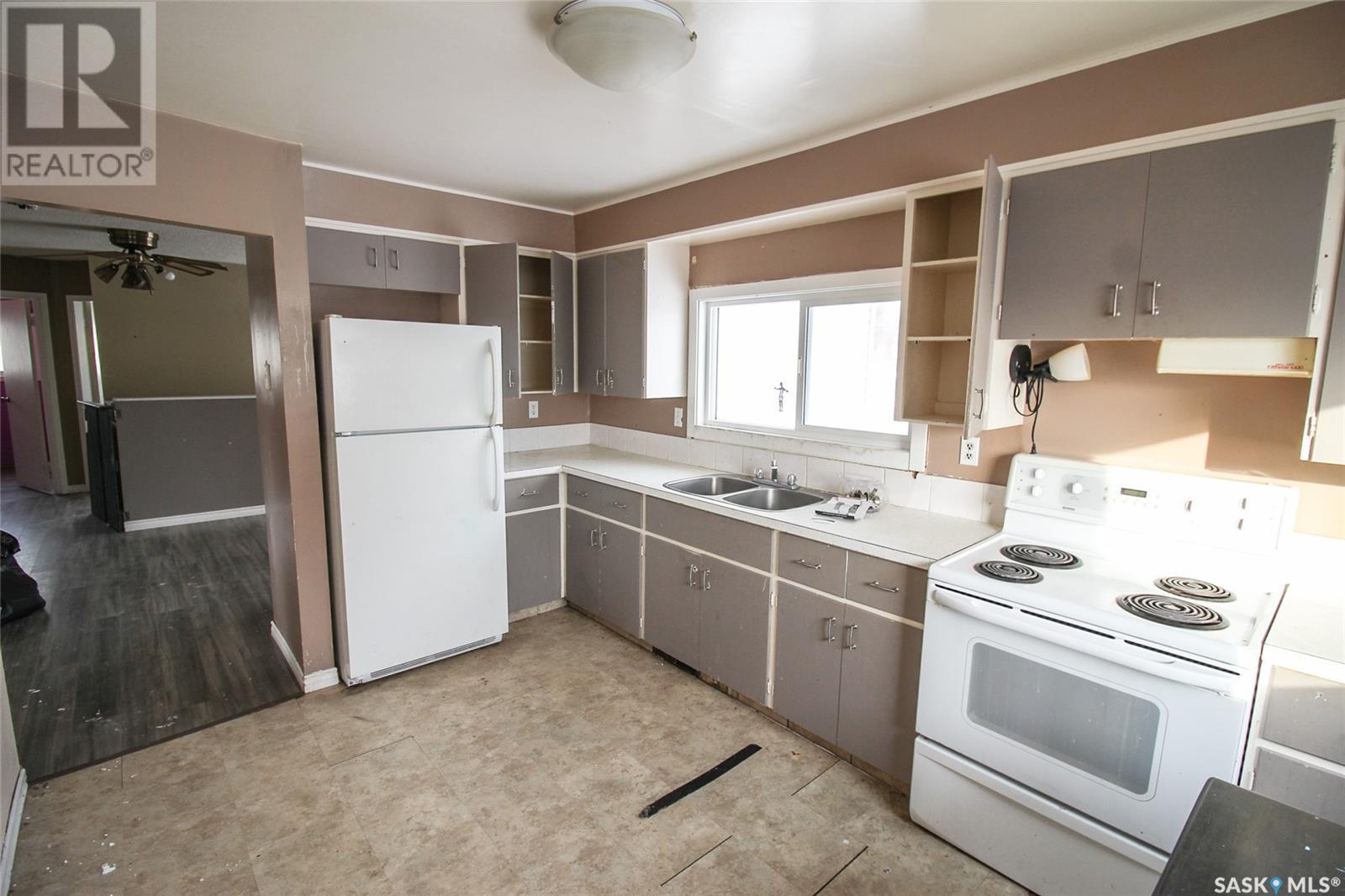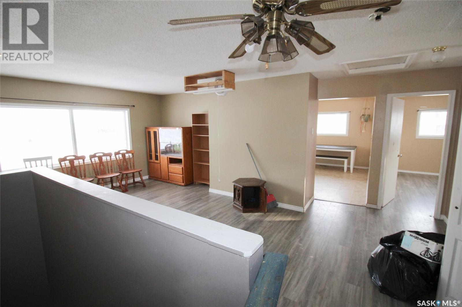Right on the way into Eastend, SK this beauty is the best bang for your buck! This raised bungalow was set up on a large 50'x120' lot. A three bedroom bungalow, with an un-traditional layout, this home is ready for your family. Through the front door you enter into a large living room with great natural light. The kitchen is a dine-in style with a large bank of cabinets and sunny views. Each of the three bedrooms have loads of closet space and the main floor bath has a deep soaker tub with a ceramic tile surround. The lower level is framed up with bedroom and 2pc bath. The Seller has worked hard to update all the windows to newer PVC style, added an updated electrical pane, pex plumbing, and an EE furnace. Lots of the heavy lifting has been done with drywall hung so the finishing will be quick and easy. The owner has just updated the shingles in July of 2024. Get the space and updates you are looking for at the price you want! (id:43042)