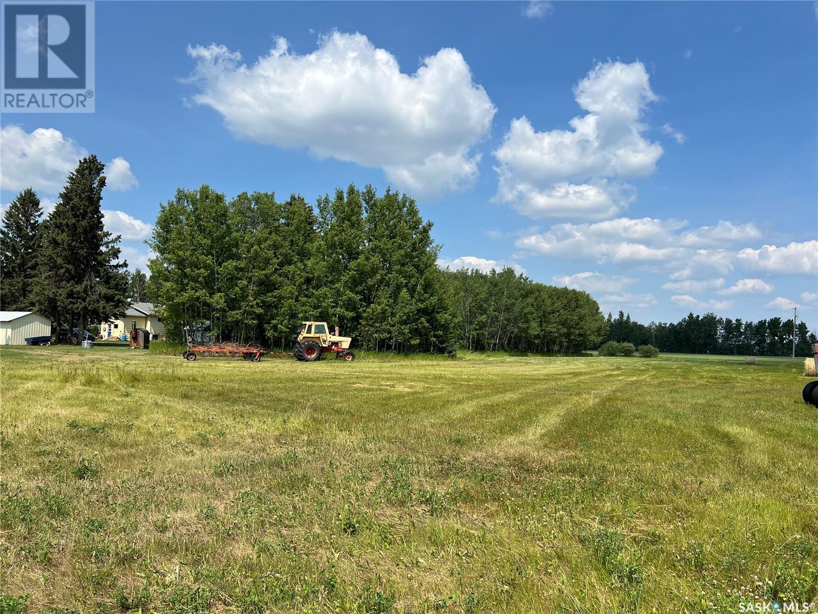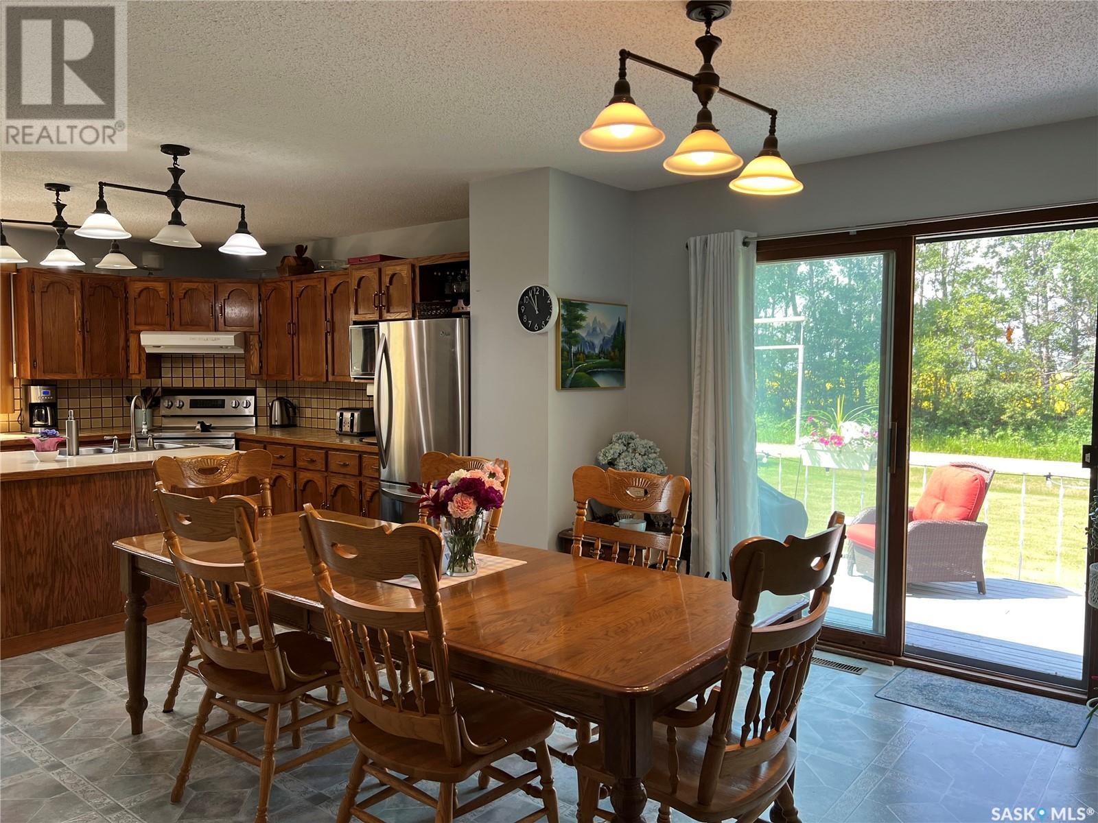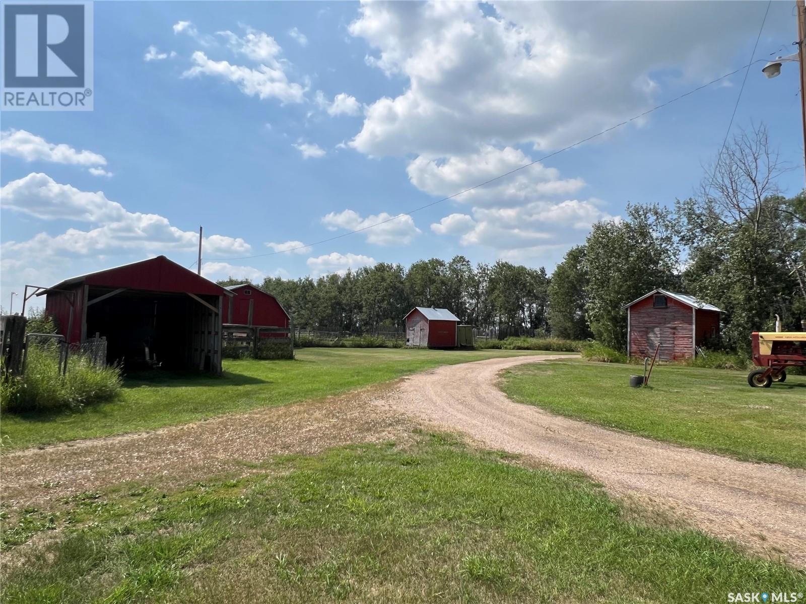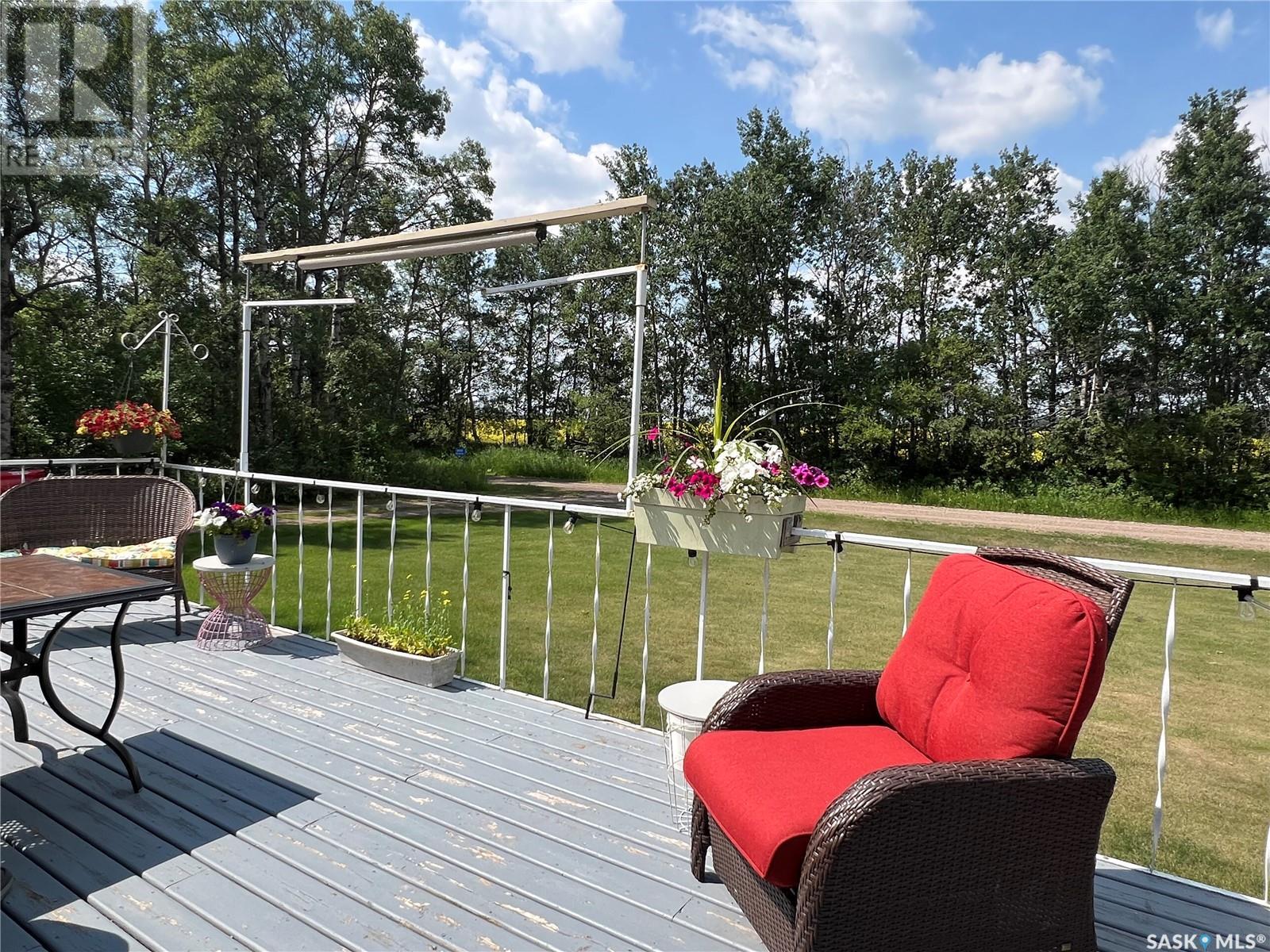 This well maintained acreage could be what you're looking for! Located 13kms East of Meadow Lake and only a few minutes from the Pulp Mill. Situated on 153 acres, this 1578 sq foot bungalow has 3 bedrooms, 2 bathrooms with a partially developed lower level. Recent upgrades include shingles 2023, Central A/C in 2024 and new interior paint 2024. Open concept kitchen, dining and living room with lots of natural light throughout. Dining room has patio doors leading to a beautiful west facing deck which is great for barbecuing. Nice sized entry with plenty of room for storage. Main floor laundry. Yard is well manicured with mature trees, garden, flower beds, barn, corrals, 2 watering bowls, 5 steel grain bins, wooden grain bin, 50 ft lean to for machinery/storage plus numerous sheds. This property needs to be seen to be fully appreciated. Dehumidifier and freezer in basement included. Satellite dish is Shaw and internet is Xplornet. One dugout located in SW Corner of Property. (id:43042)