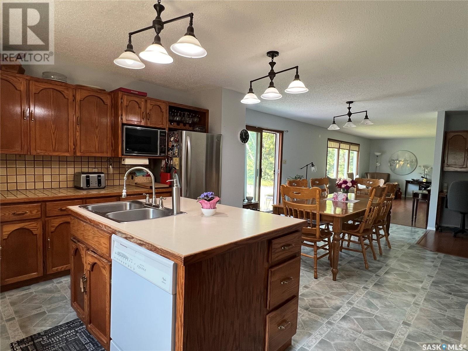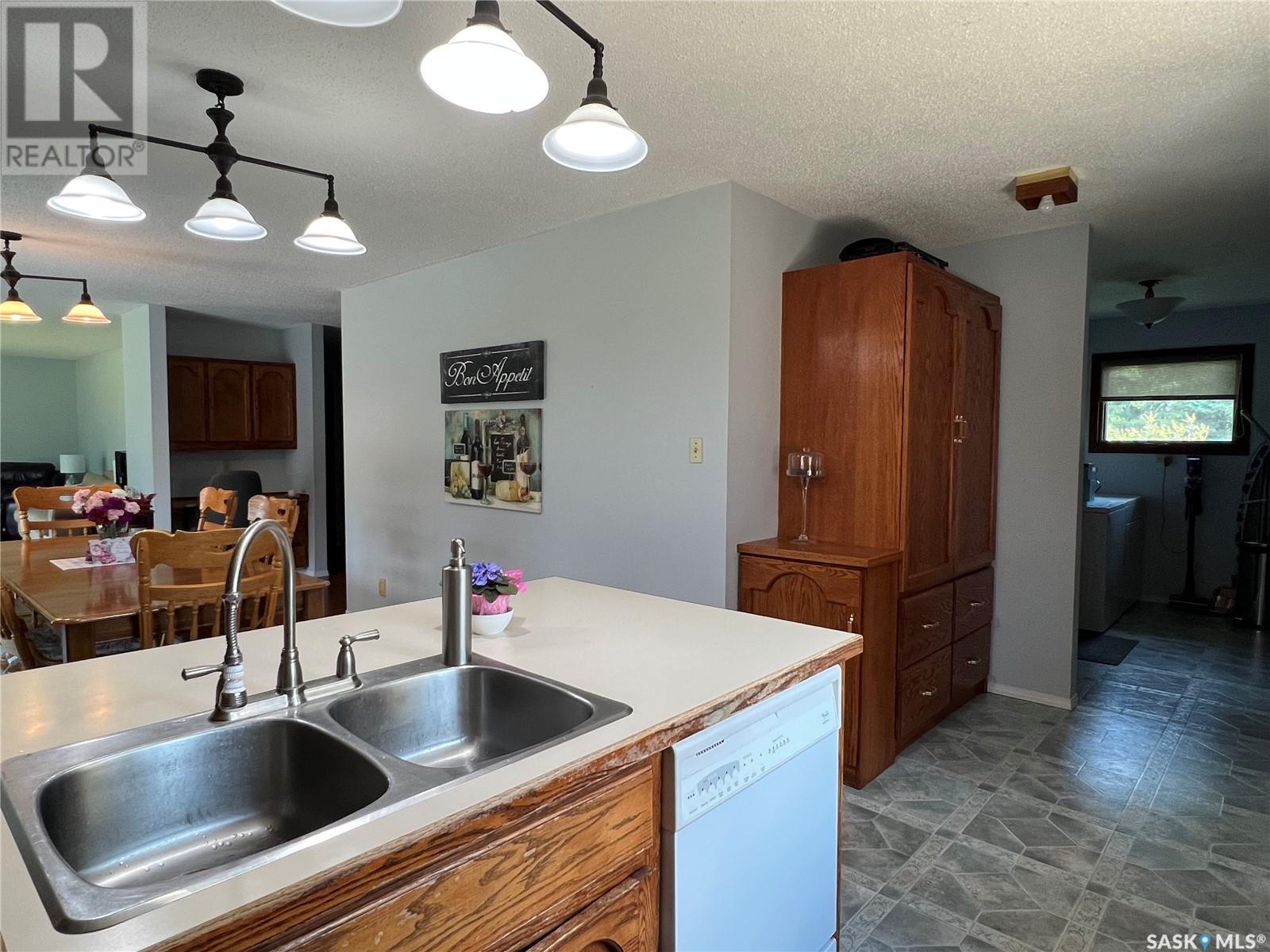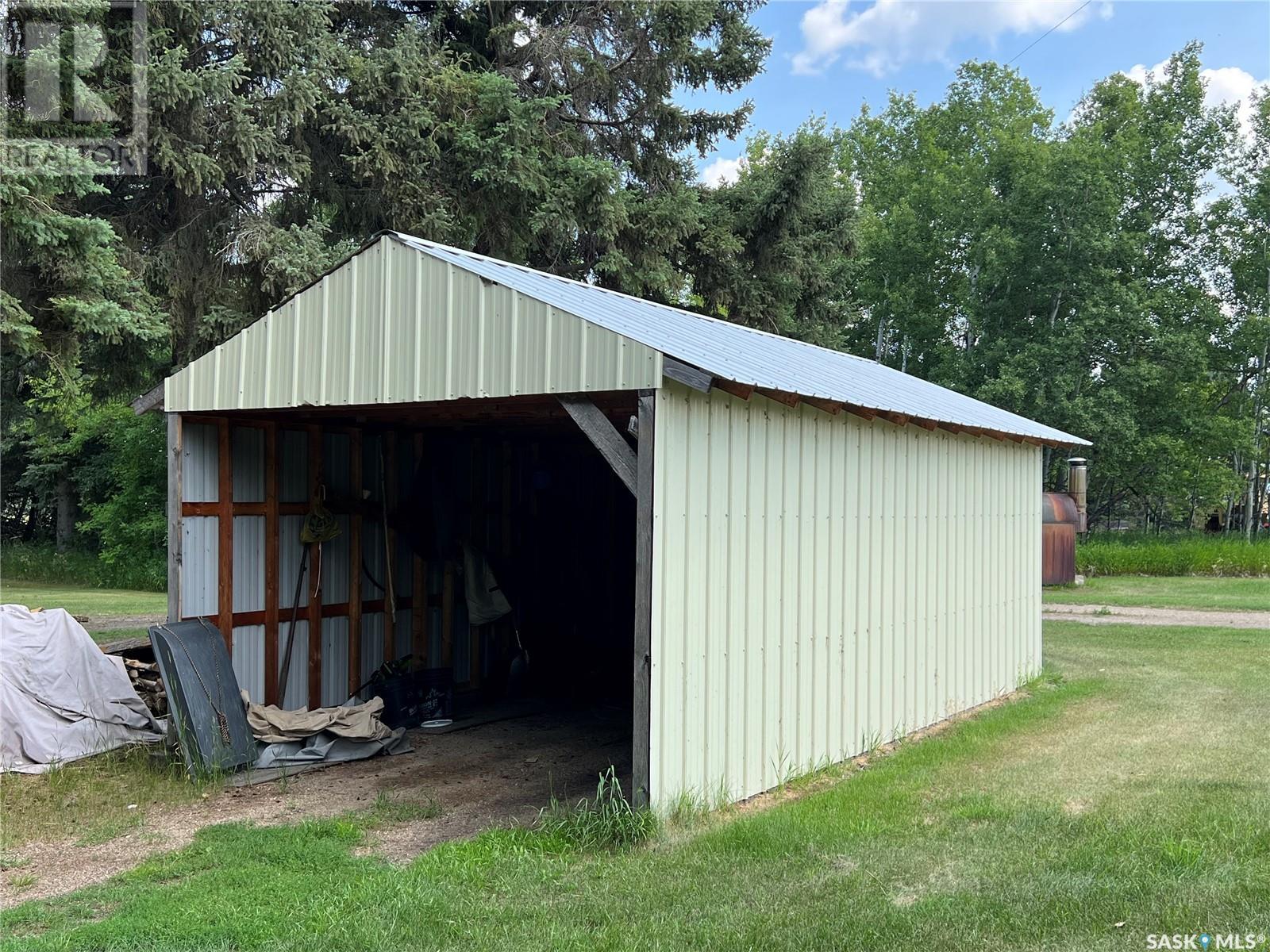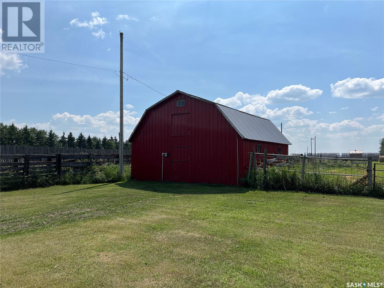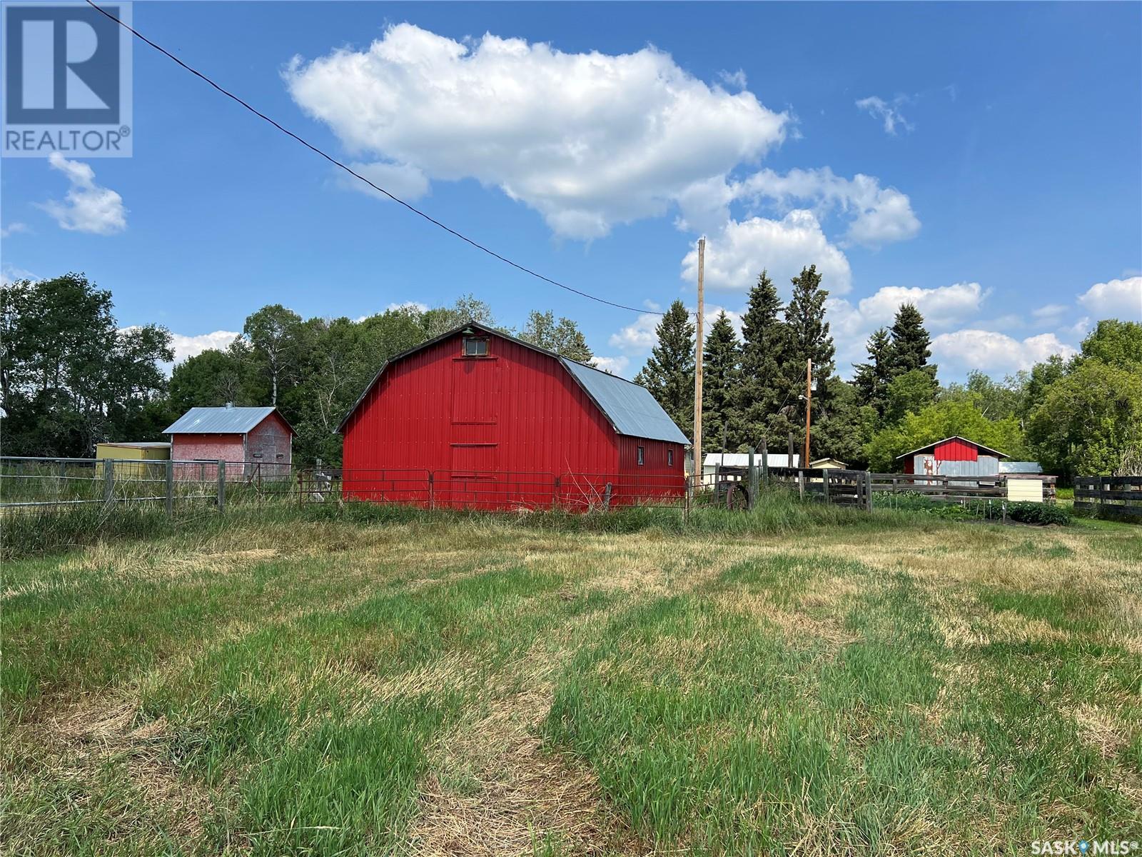 This well maintained acreage could be what you're looking for! Located 13kms East of Meadow Lake and only a few minutes from the Pulp Mill. Situated on 153 acres, this 1578 sq foot bungalow has 3 bedrooms, 2 bathrooms with a partially developed lower level. Recent upgrades include shingles 2023, Central A/C in 2024 and new interior paint 2024. Open concept kitchen, dining and living room with lots of natural light throughout. Dining room has patio doors leading to a beautiful west facing deck which is great for barbecuing. Nice sized entry with plenty of room for storage. Main floor laundry. Yard is well manicured with mature trees, garden, flower beds, barn, corrals, 2 watering bowls, 5 steel grain bins, wooden grain bin, 50 ft lean to for machinery/storage plus numerous sheds. This property needs to be seen to be fully appreciated. Dehumidifier and freezer in basement included. Satellite dish is Shaw and internet is Xplornet. One dugout located in SW Corner of Property. (id:43042)