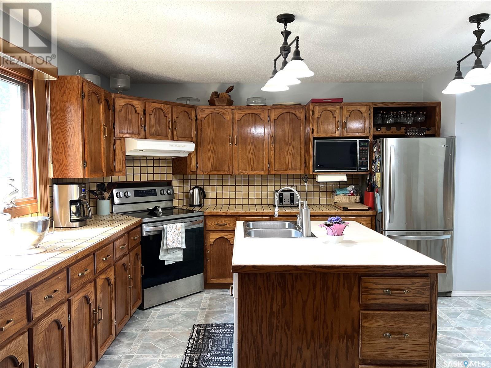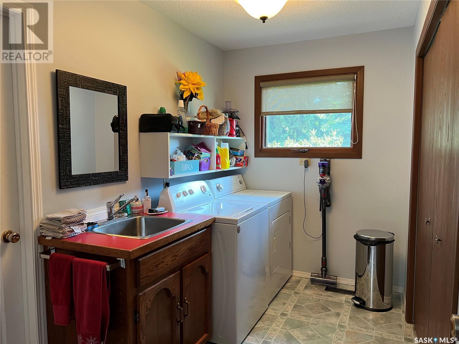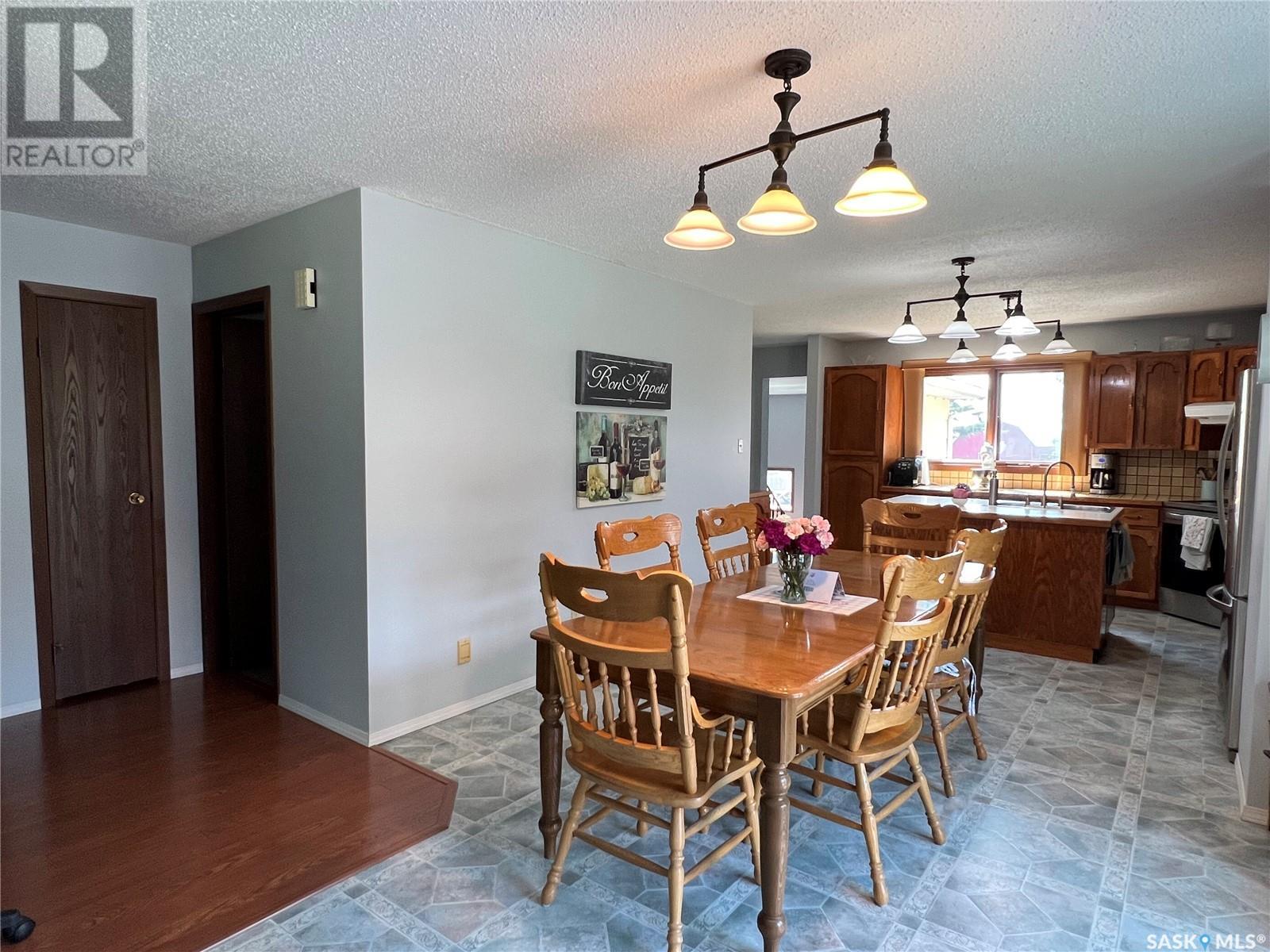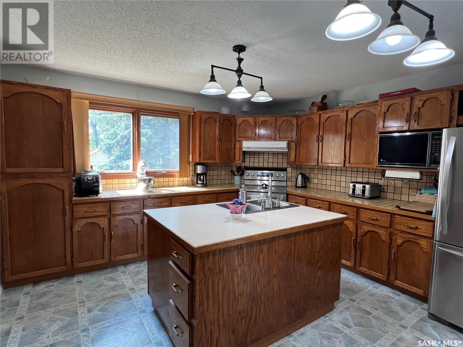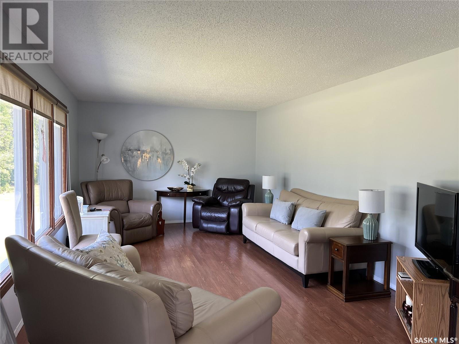 This well maintained acreage could be what you're looking for! Located 13kms East of Meadow Lake and only a few minutes from the Pulp Mill. Situated on 153 acres, this 1578 sq foot bungalow has 3 bedrooms, 2 bathrooms with a partially developed lower level. Recent upgrades include shingles 2023, Central A/C in 2024 and new interior paint 2024. Open concept kitchen, dining and living room with lots of natural light throughout. Dining room has patio doors leading to a beautiful west facing deck which is great for barbecuing. Nice sized entry with plenty of room for storage. Main floor laundry. Yard is well manicured with mature trees, garden, flower beds, barn, corrals, 2 watering bowls, 5 steel grain bins, wooden grain bin, 50 ft lean to for machinery/storage plus numerous sheds. This property needs to be seen to be fully appreciated. Dehumidifier and freezer in basement included. Satellite dish is Shaw and internet is Xplornet. One dugout located in SW Corner of Property. (id:43042)