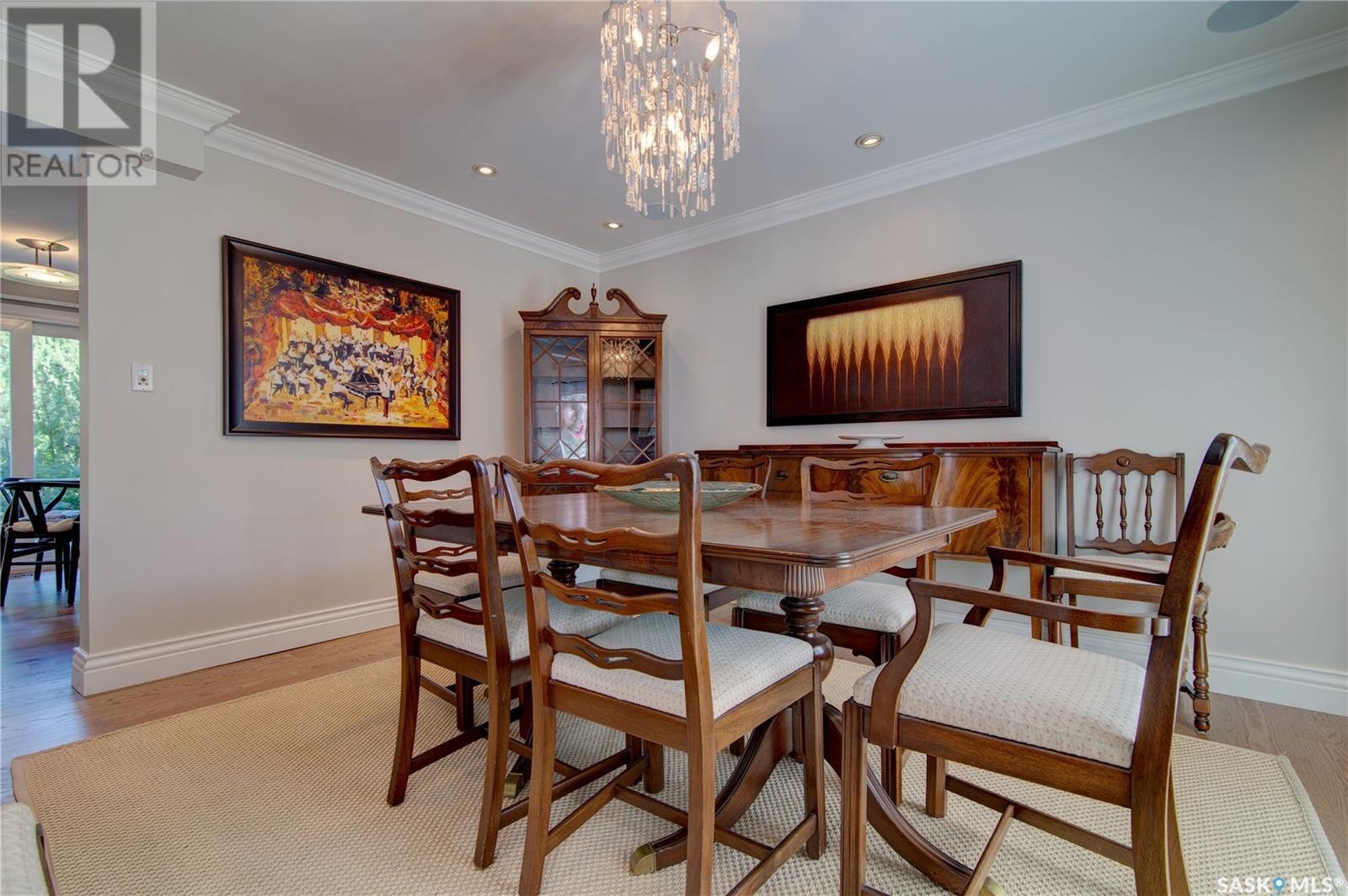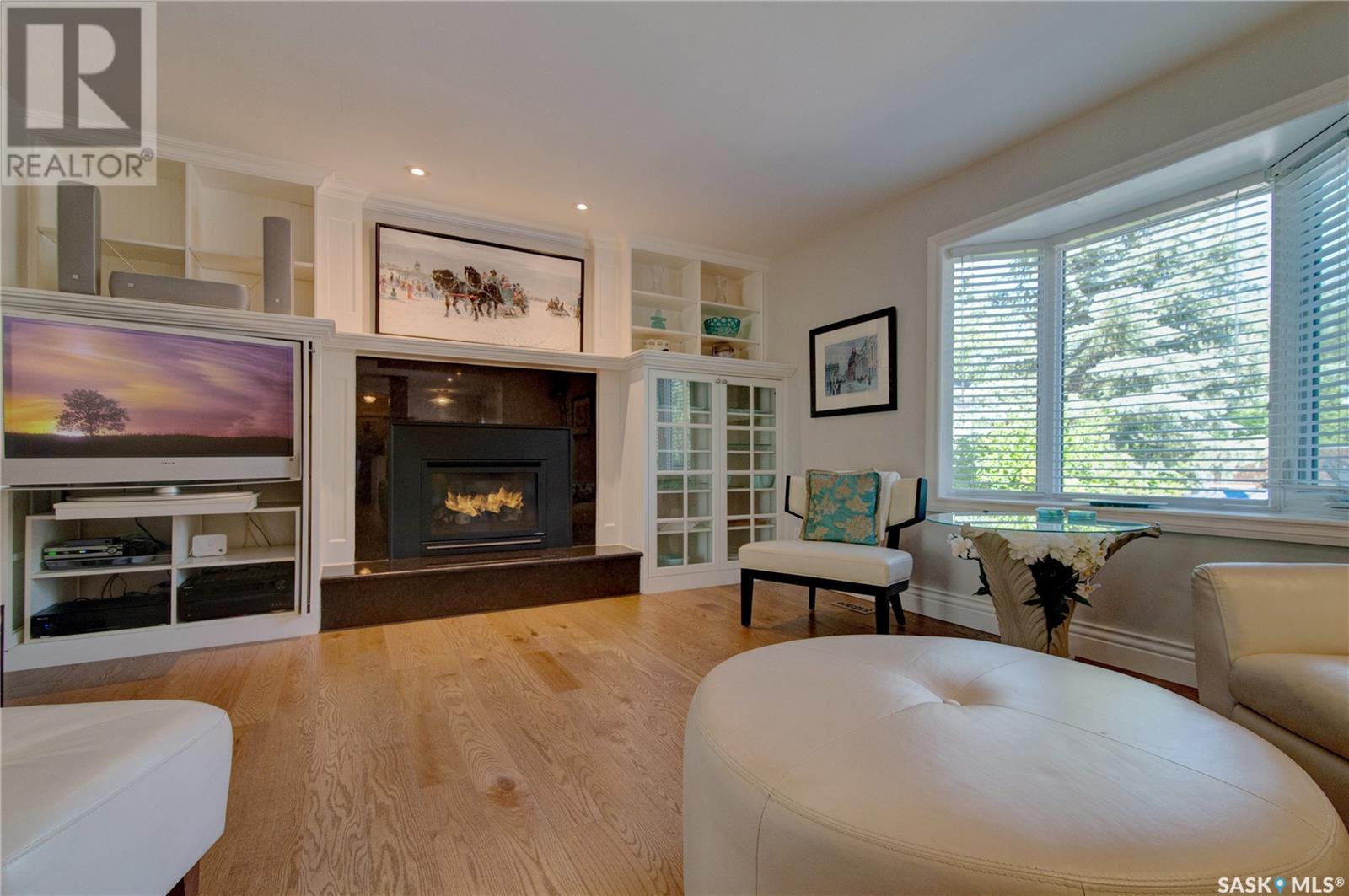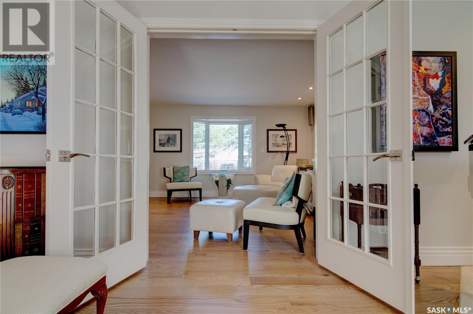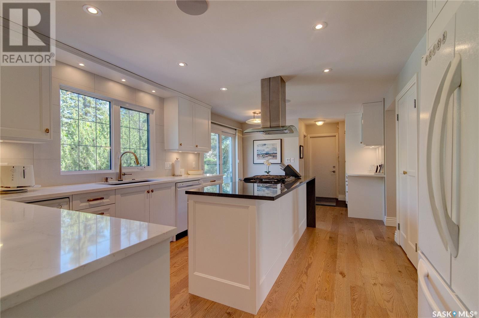 Don't miss the opportunity to own one of the most iconic homes in Regina, located on a quiet prestigious cul-de-sac in Albert Park. This classic executive two storey home with Mansard style roof and brick front has fabulous curb appeal. Main floor offers a large formal dining room, spacious living room, and lovely family room with gas fireplace and built-in bar, wine storage and custom cabinets. The recently renovated kitchen must be seen to be appreciated. Beautiful custom cabinetry, quartz and quartzite counter tops, imported ceramic tile backsplashes, a true gourmet's delight. A two piece bathroom with porcelain tile flooring complete the main level. Hardwood flooring throughout the main floor, sound system throughout the main floor and outdoor patio. Second floor offers primary bedroom with amazing walk-in closet and luxurious spa ensuite with electric fireplace, soaker tub and steam shower. Two additional bedrooms with large windows plus 5 piece bathroom complete the second floor. Basement features spacious recreation room with gas fireplace and large wall mounted TV, den, 3 piece bathroom, laundry room (fridge & freezer included), utility room with 2 high efficient furnaces with 2 AC units. Double attached garage, drywalled and heated, with a second central vacuum and lots of storage. Direct entry into the house and ample extra parking on the stamped concrete driveway. Park like back yard professionally landscaped with mature trees and perennials. 36 ft. in ground pool and pool house. This house must be seen to be truly appreciated. NOTE: Supplement includes the history of the house and all the main floor and basement renovations in 2022. (id:43042)