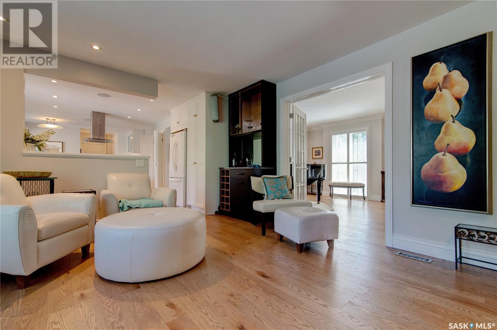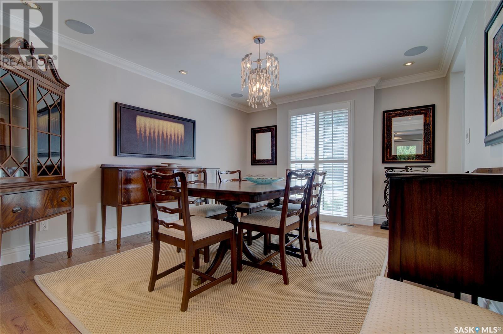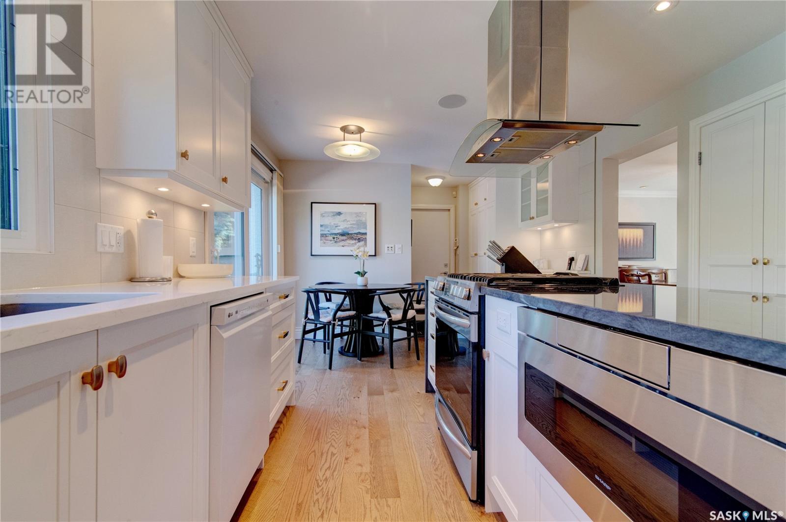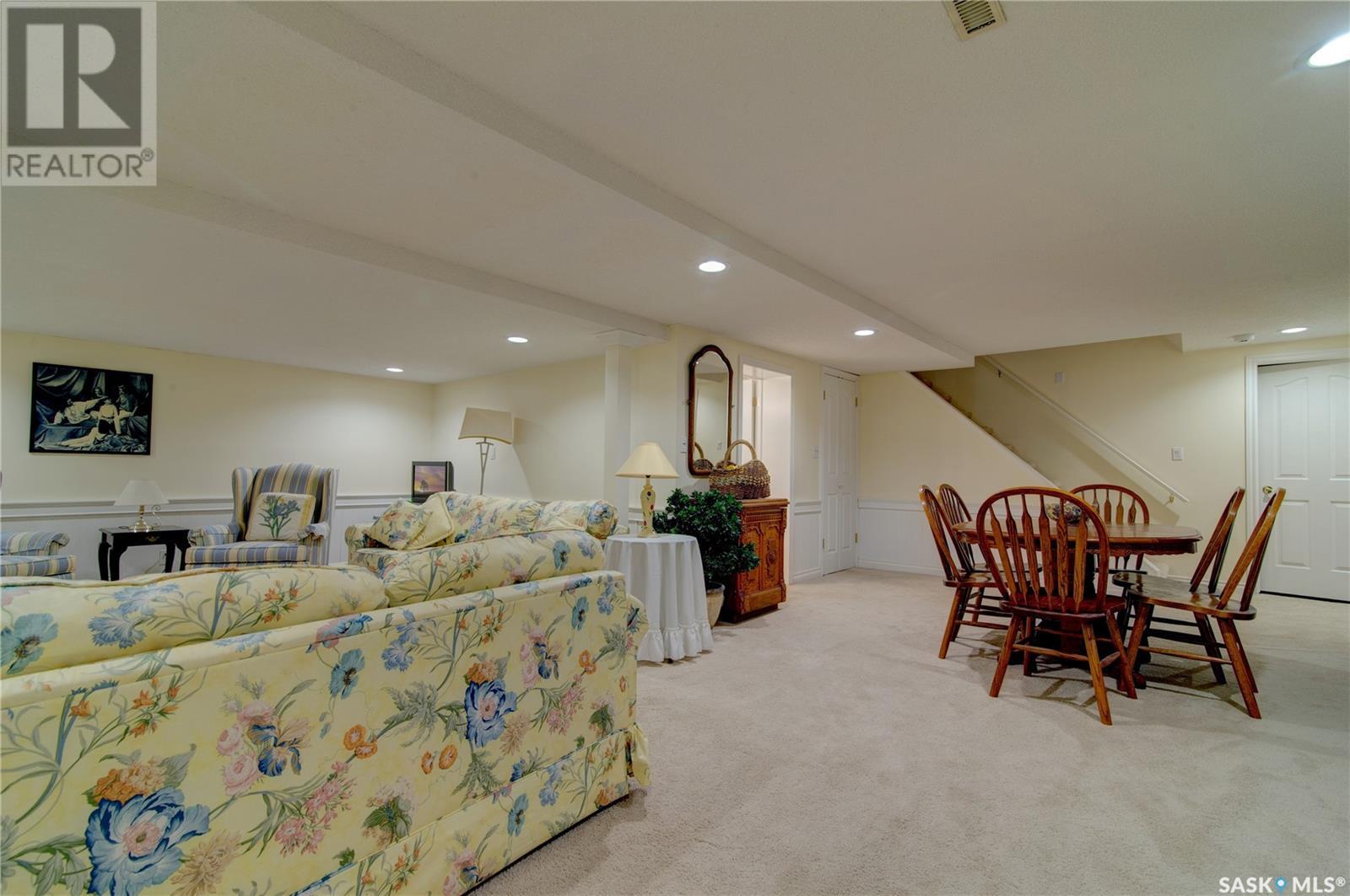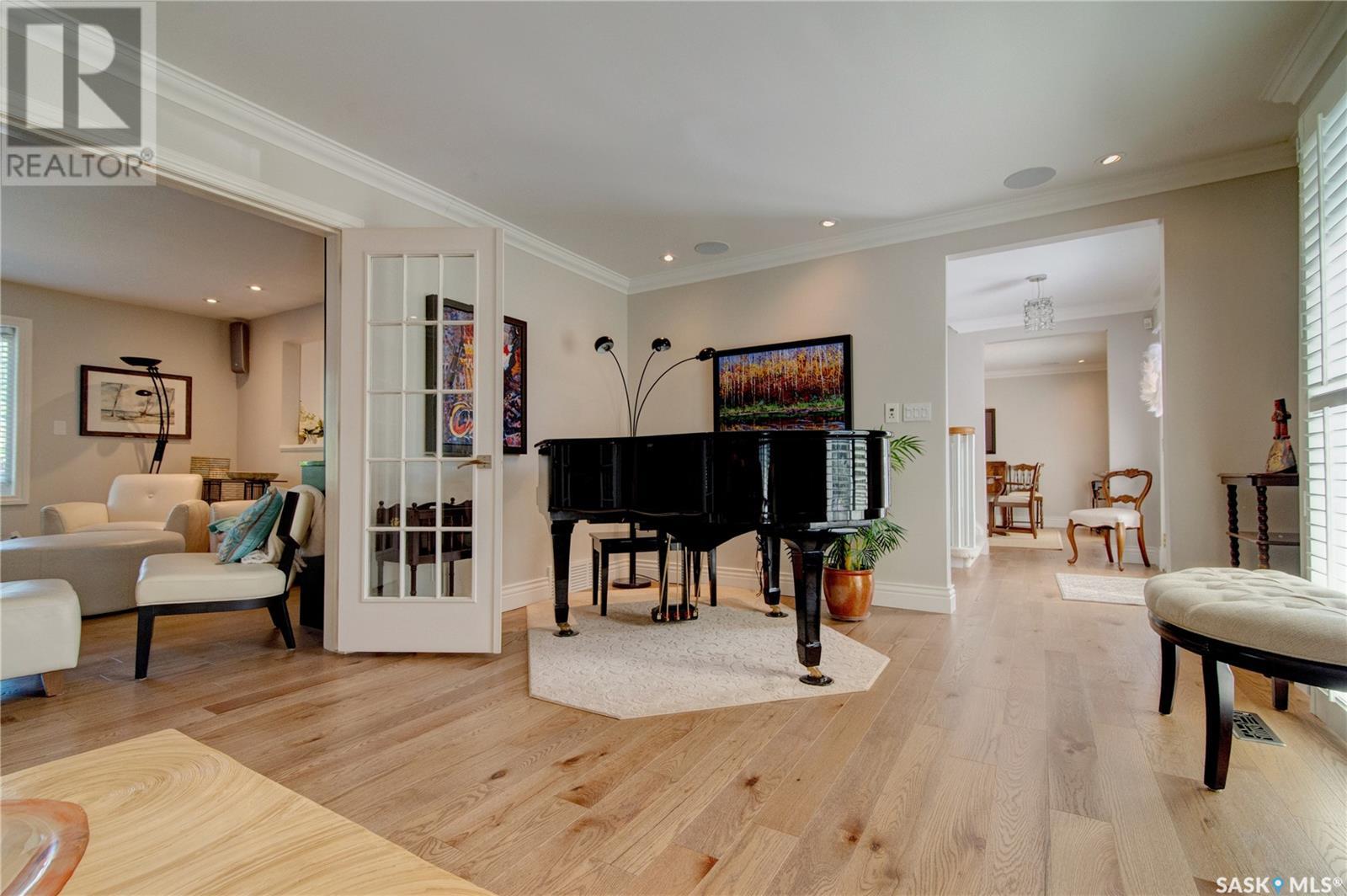 Don't miss the opportunity to own one of the most iconic homes in Regina, located on a quiet prestigious cul-de-sac in Albert Park. This classic executive two storey home with Mansard style roof and brick front has fabulous curb appeal. Main floor offers a large formal dining room, spacious living room, and lovely family room with gas fireplace and built-in bar, wine storage and custom cabinets. The recently renovated kitchen must be seen to be appreciated. Beautiful custom cabinetry, quartz and quartzite counter tops, imported ceramic tile backsplashes, a true gourmet's delight. A two piece bathroom with porcelain tile flooring complete the main level. Hardwood flooring throughout the main floor, sound system throughout the main floor and outdoor patio. Second floor offers primary bedroom with amazing walk-in closet and luxurious spa ensuite with electric fireplace, soaker tub and steam shower. Two additional bedrooms with large windows plus 5 piece bathroom complete the second floor. Basement features spacious recreation room with gas fireplace and large wall mounted TV, den, 3 piece bathroom, laundry room (fridge & freezer included), utility room with 2 high efficient furnaces with 2 AC units. Double attached garage, drywalled and heated, with a second central vacuum and lots of storage. Direct entry into the house and ample extra parking on the stamped concrete driveway. Park like back yard professionally landscaped with mature trees and perennials. 36 ft. in ground pool and pool house. This house must be seen to be truly appreciated. NOTE: Supplement includes the history of the house and all the main floor and basement renovations in 2022. (id:43042)