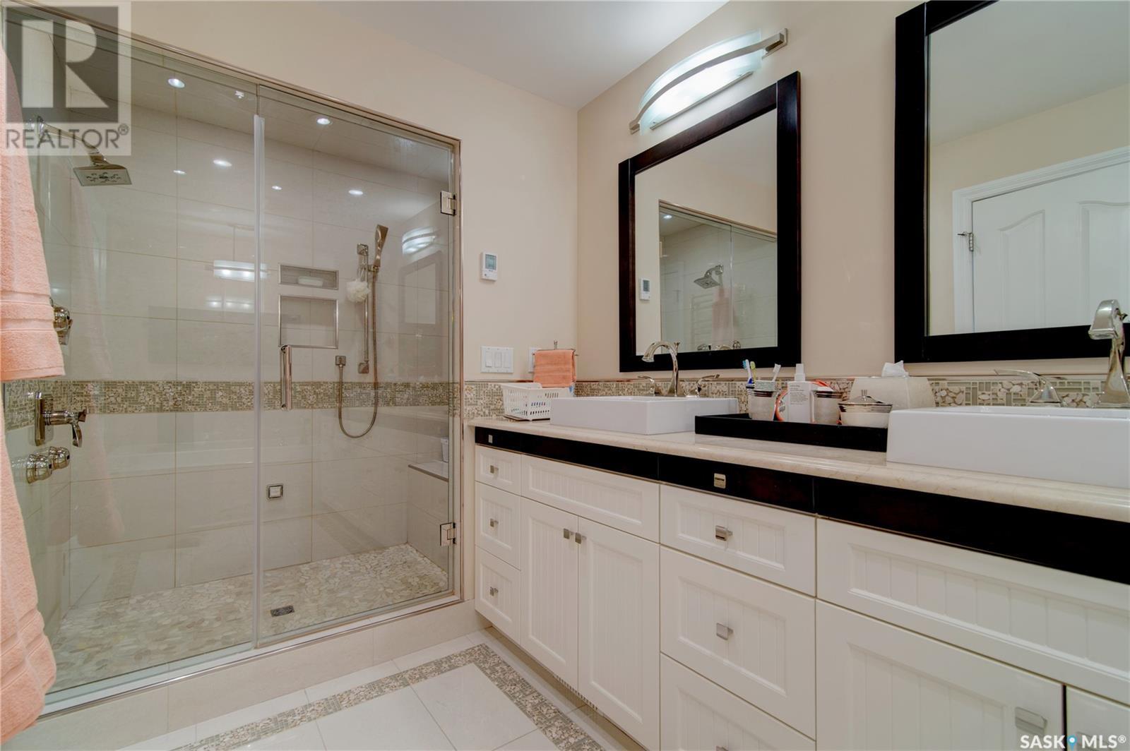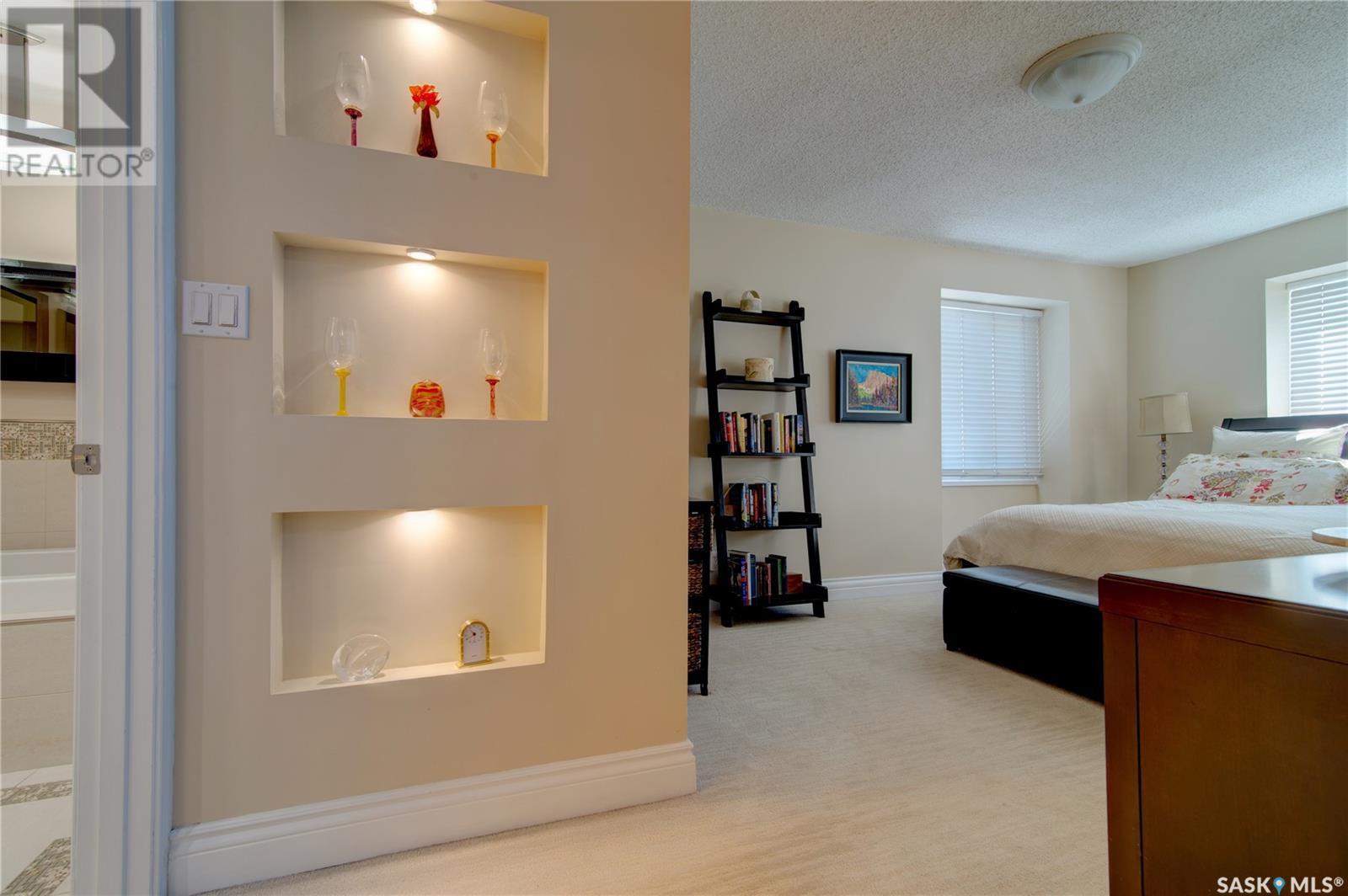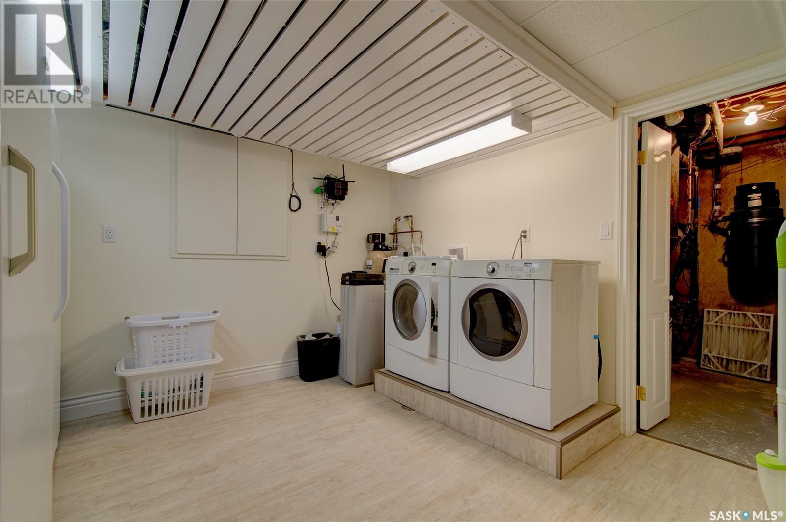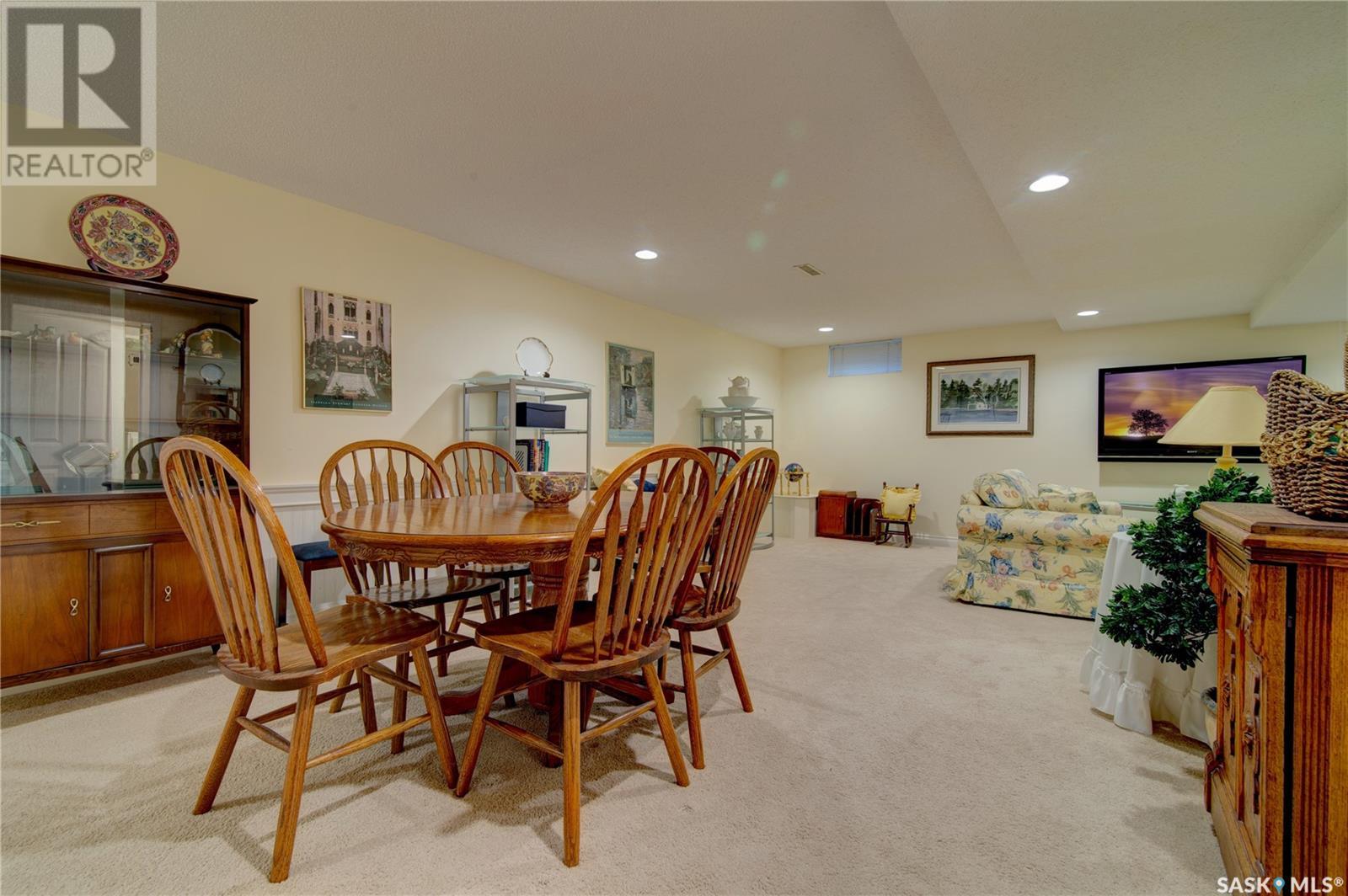 Don't miss the opportunity to own one of the most iconic homes in Regina, located on a quiet prestigious cul-de-sac in Albert Park. This classic executive two storey home with Mansard style roof and brick front has fabulous curb appeal. Main floor offers a large formal dining room, spacious living room, and lovely family room with gas fireplace and built-in bar, wine storage and custom cabinets. The recently renovated kitchen must be seen to be appreciated. Beautiful custom cabinetry, quartz and quartzite counter tops, imported ceramic tile backsplashes, a true gourmet's delight. A two piece bathroom with porcelain tile flooring complete the main level. Hardwood flooring throughout the main floor, sound system throughout the main floor and outdoor patio. Second floor offers primary bedroom with amazing walk-in closet and luxurious spa ensuite with electric fireplace, soaker tub and steam shower. Two additional bedrooms with large windows plus 5 piece bathroom complete the second floor. Basement features spacious recreation room with gas fireplace and large wall mounted TV, den, 3 piece bathroom, laundry room (fridge & freezer included), utility room with 2 high efficient furnaces with 2 AC units. Double attached garage, drywalled and heated, with a second central vacuum and lots of storage. Direct entry into the house and ample extra parking on the stamped concrete driveway. Park like back yard professionally landscaped with mature trees and perennials. 36 ft. in ground pool and pool house. This house must be seen to be truly appreciated. NOTE: Supplement includes the history of the house and all the main floor and basement renovations in 2022. (id:43042)