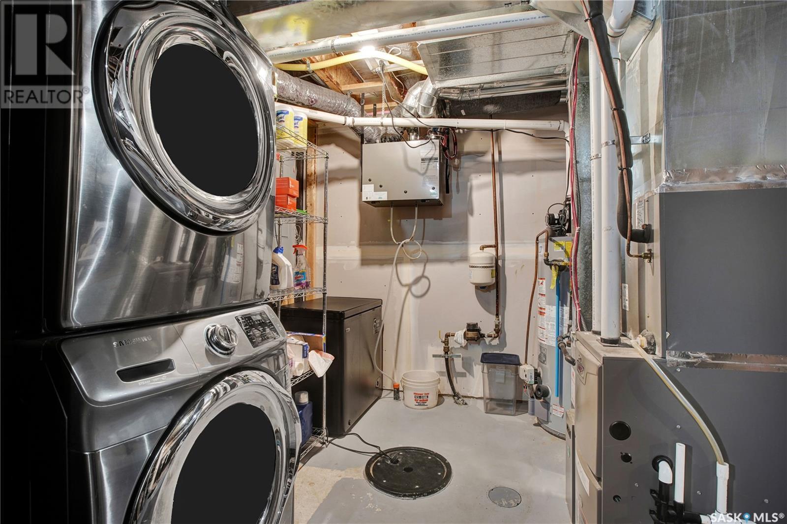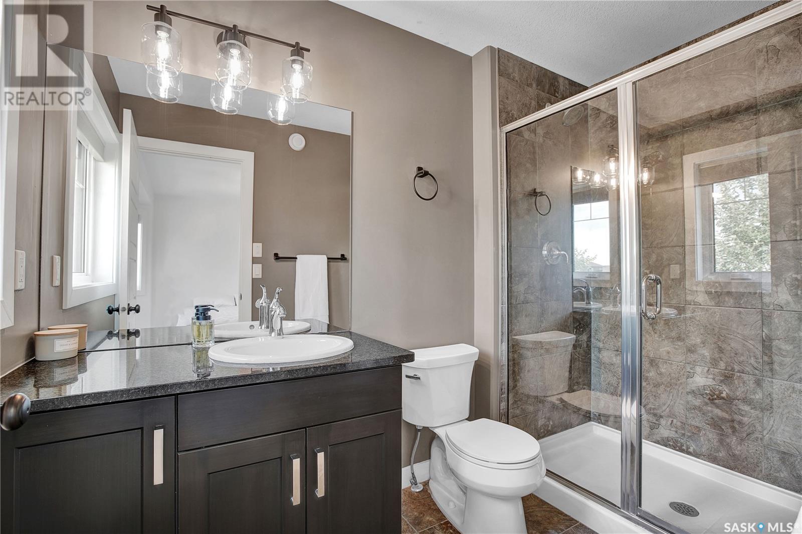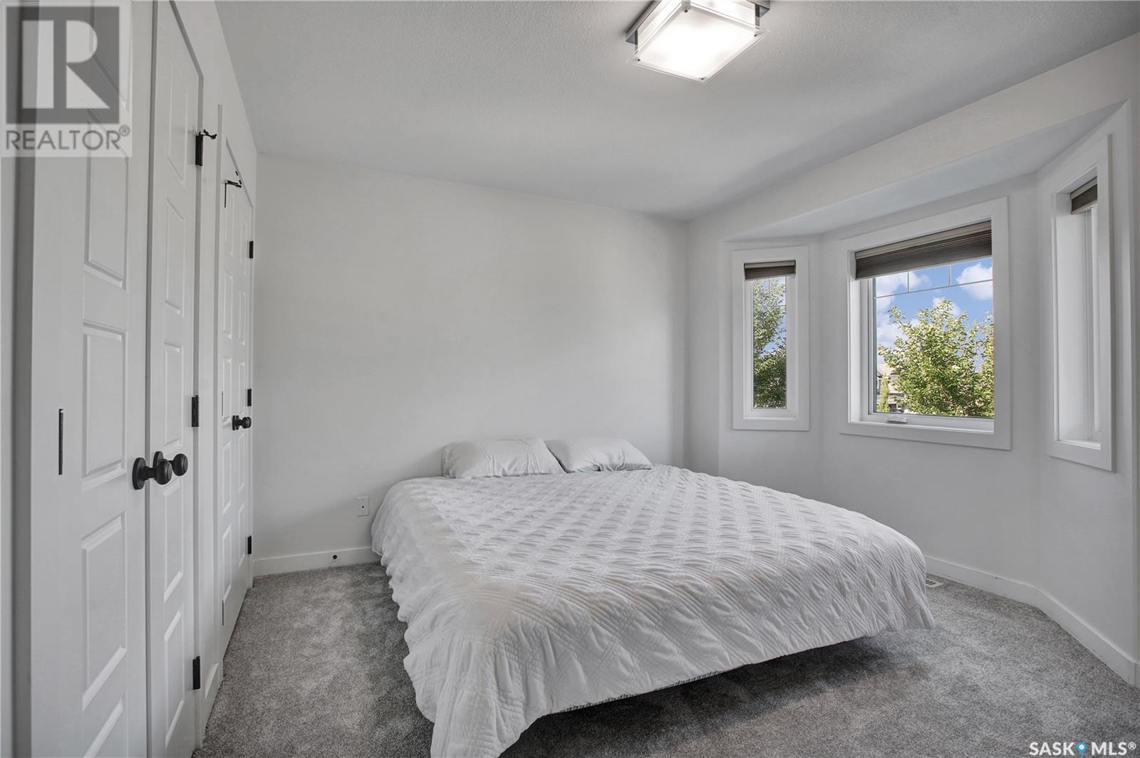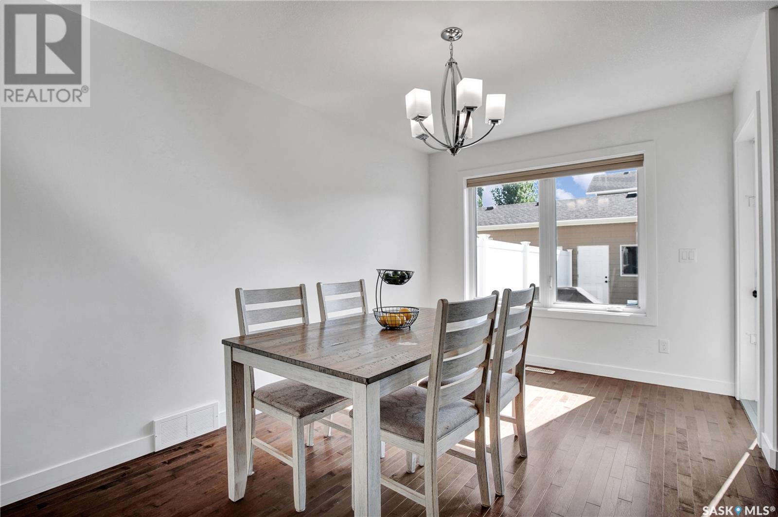 This bright and stylish 2-storey home offers 1,359 sq ft of well-planned space—with absolutely NO condo fees. Built in 2014 and freshly painted throughout, it combines everyday comfort with long-term value in one of Saskatoon’s most sought-after neighbourhoods. Let’s talk solar: a $30K panel system is already installed and currently saving you approximately $150/month in power bills. That’s real, ongoing value—month after month, year after year. The open-concept main floor features hardwood floors, a sunny bay window, and a modern kitchen with granite countertops, stainless steel appliances, and a generous dining area. Upstairs, the spacious primary bedroom includes another bay window and a 3-piece ensuite, plus two more bedrooms and a full bath down the hall. Out back, relax in your almost-new hot tub, or entertain on the deck in your private, fenced yard. You’ll also love the 18 x 20 insulated garage (with a gas line ready for a future heater). The front yard includes a discreet gated enclosure to keep garbage and recycling bins out of sight. Set on a paved alley, just steps from parks, schools, and all the amenities of Stonebridge, this home is the full package: no fees, lower utility bills, and modern updates in a prime location. (id:43042)