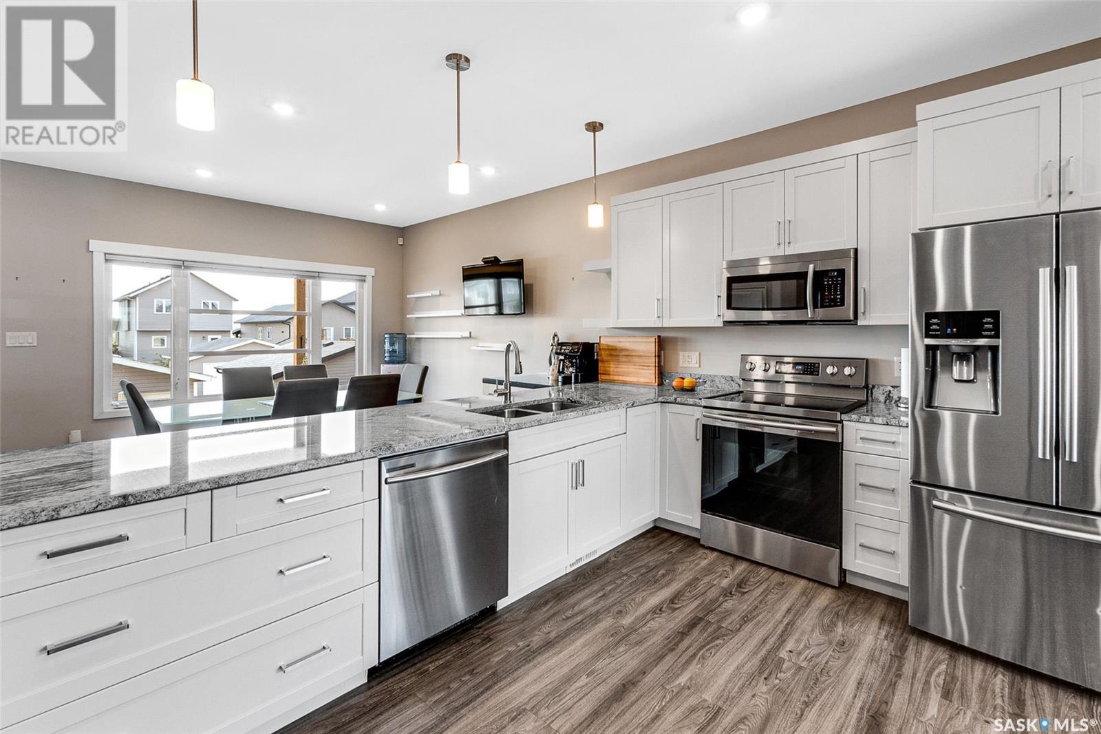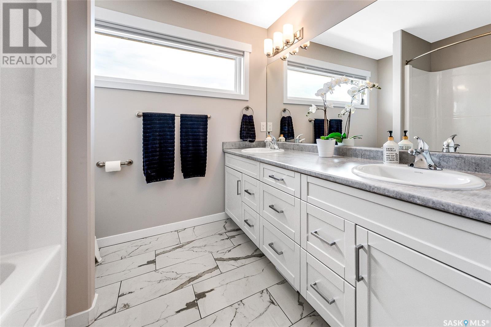 Welcome to 1456 Cassat Drive. This charming 5 bedroom, 4 bathroom two-storey home is located just steps away from two elementary schools - École Holy Mary Catholic School, and Lake Vista Public School – making it the perfect home for a growing family. Large windows invite plenty of natural light into the main floor living room and kitchen. Upstairs, note the rare 4 bedroom layout, complete with a 4-piece bath, and designated laundry room. Not to be outdone, the spacious master bedroom features a walk-in closet, and a gorgeous 5-piece ensuite. As you head downstairs, through double doors into the finished basement, you will find a large family room, hosting an additional bedroom and 4-piece bath. Outside, your two-tier covered deck leads to a firepit area, and double detached garage. Don’t miss your chance to own this exceptional family home in the constantly growing City of Martensville. (id:43042)