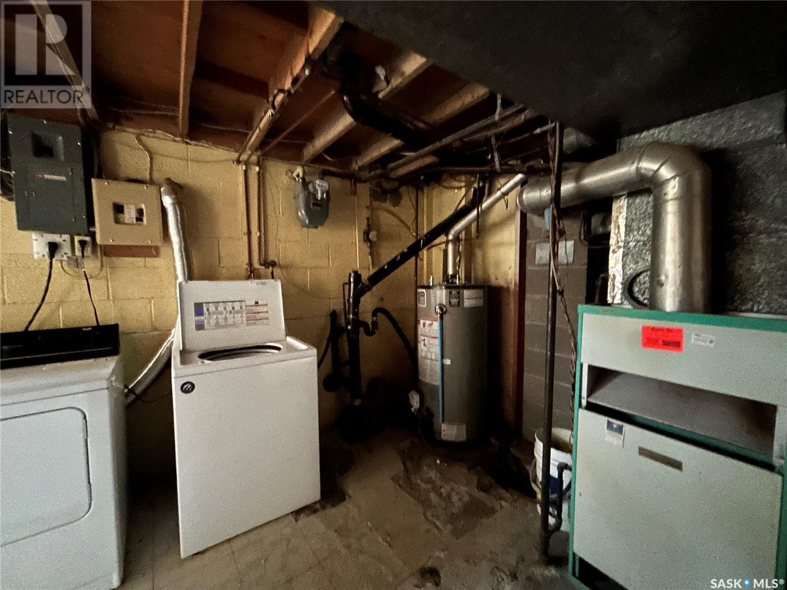 This cute house has been well maintained and seen many updates. Some including most windows upstairs, bathroom update and tin on the house/garage. It has two bedrooms upstairs and one in the basement. The basement is open to develop a family room and there is some plummbing started for a second bathroom. There is a two car garage and large, beautifully treed yard as the property sits on 4 town lots. Wonderful community and close to Stoughton, Estevan and Weyburn. Call for more information. (id:43042)