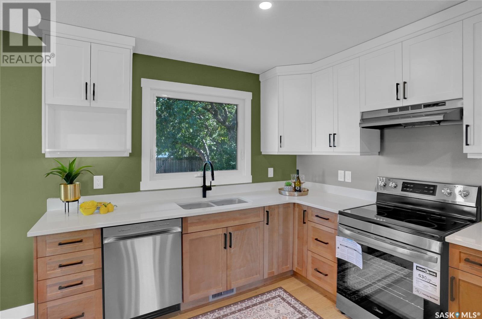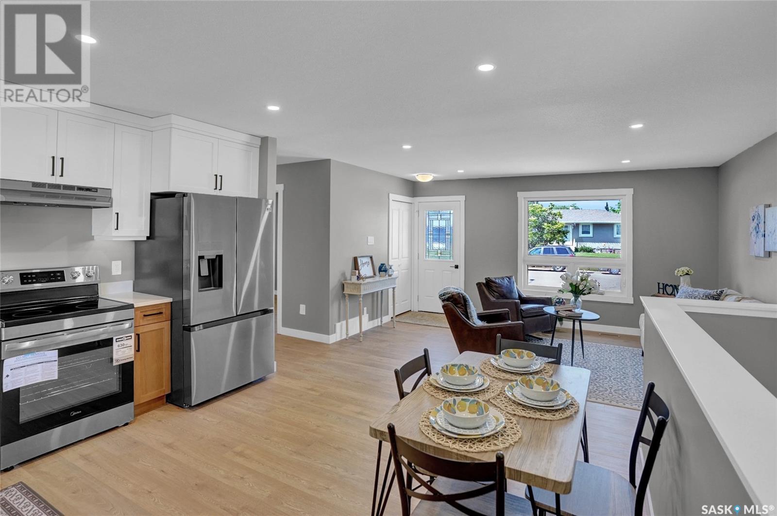 Welcome to your next home, a fully renovated home that invites you to live life more beautifully. This home has modern design & updated features. Inside, the open concept design ensures a seamless flow throughout the main living areas, for easy entertaining and family gatherings. The home boasts a new exterior finish and windows, which not only enhance its curb appeal but also improve energy efficiency. Throughout the main floor, high-quality vinyl plank flooring offers both durability and style. The updated kitchen is a delight, featuring quartz countertops, new cabinetry with soft-close features, and new appliances included. The main floor includes modernized 4pc. bath featuring an elegant tile surround, while the lower level offers a 3pc. bath with a full tile surround. With 5 bedrooms, there is ample space for family, guests, or even a home office. As you approach the house, a double concrete drive welcomes you. Step into the foyer, which opens into the bright and airy main living space, flooded with natural light. The living room connects effortlessly to the kitchen and dining area, creating a warm and inviting atmosphere. The lower level is equally impressive, with its new flooring, trims, doors, and windows. It features a versatile family/game area, perfect for relaxation or recreation, along with 2 additional bedrooms, a 3-piece bath, a laundry area, and ample storage. Outside, the south-facing, fully fenced yard is full of sun. It includes two patios, offering plenty of room for family gatherings and outdoor relaxation. There is also ample space to build your future garage, adding even more convenience. Situated in a fantastic neighborhood, this home is not only move-in ready but also offers a vibrant community atmosphere. Make your next move the best move by choosing this beautifully renovated home. Welcome to your next home! Note: Virtual Staged – Primary bed, family room and patio. CLICK ON MULTIMEDIA LINK FOR A FULL VISUAL TOUR. (id:43042)