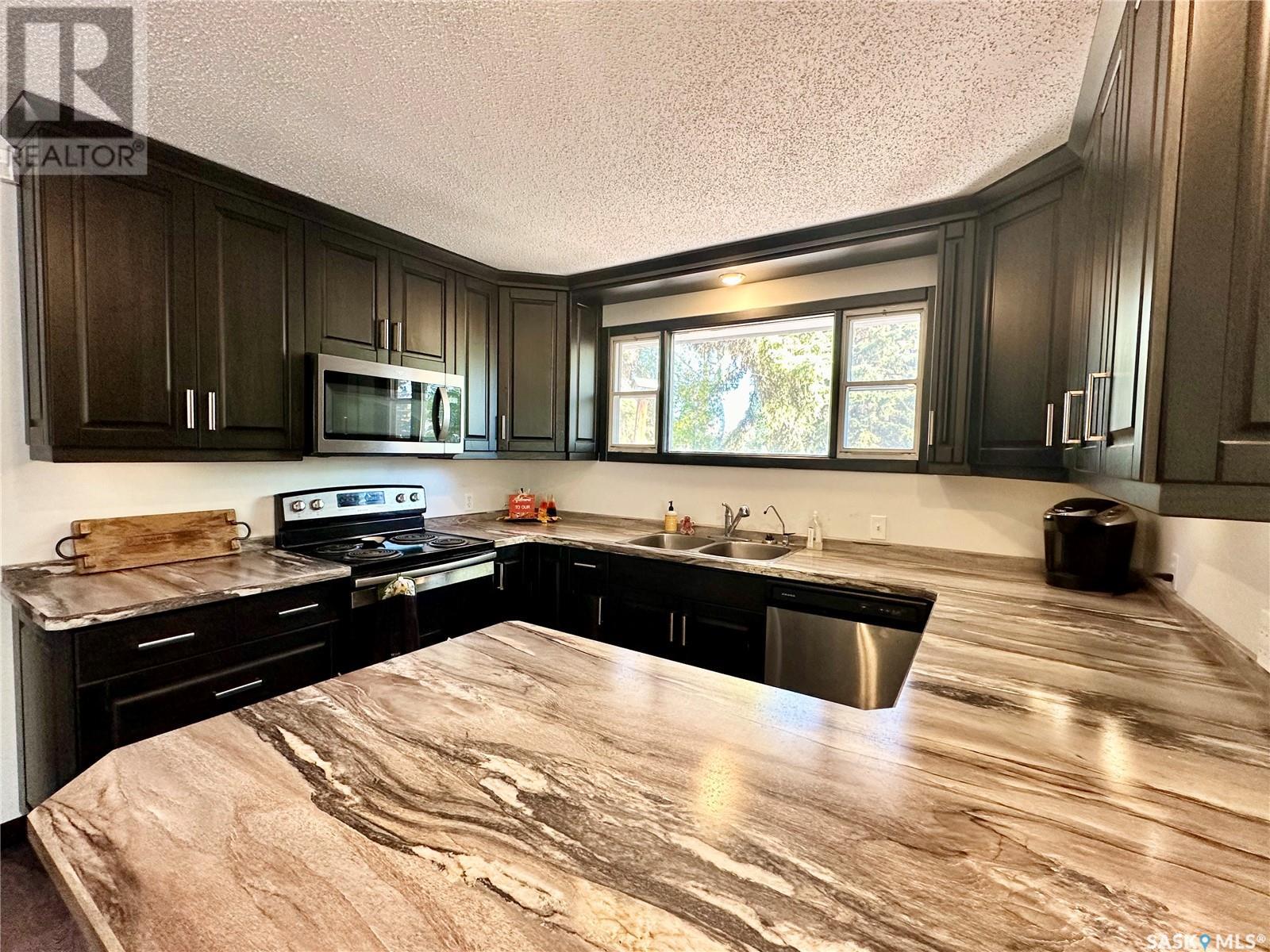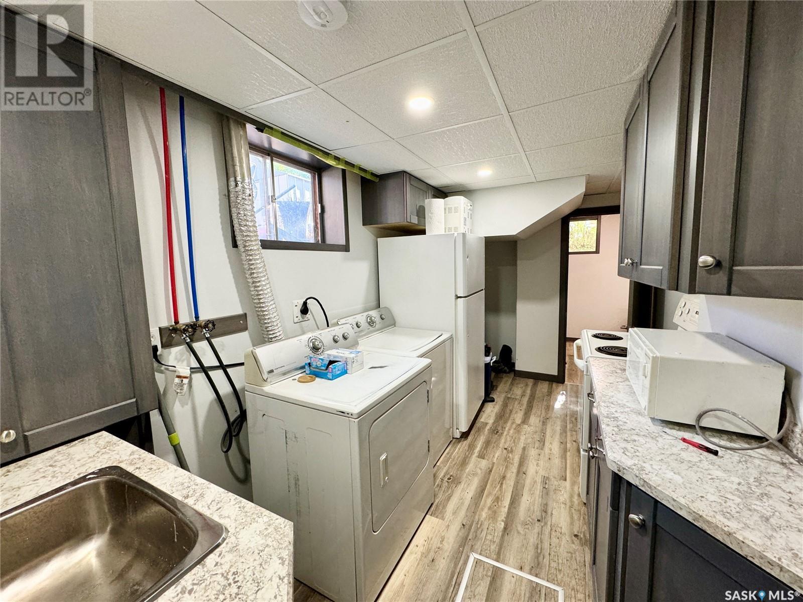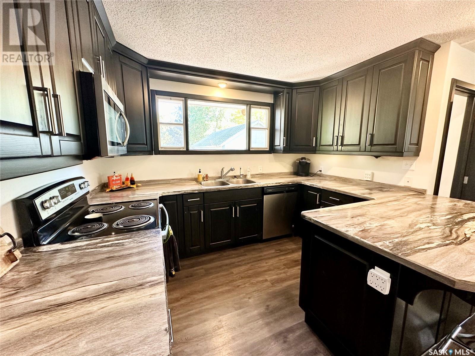 This renovated bungalow has been thoughtfully updated from top to bottom. The spacious main living area features an open floor plan that seamlessly connects the large living room, kitchen, and dining area. The kitchen has been updated with beautiful wood cabinets and modern countertops. All flooring throughout the home has been upgraded to durable, contemporary vinyl planking, and the custom woodwork from the kitchen cabinets carries throughout the home, where you’ll find gorgeous solid wood closet doors and matching wood cabinetry throughout! There are three bedrooms on the main floor, with an additional bedroom located downstairs. Both bathrooms have been remodelled with the same aesthetic as the rest of the home for modern comfort. The lower level also includes a large rec room and a large laundry room with a sink and more custom cabinetry. Additional upgrades and features include a 100 amp electrical panel, central air conditioning, a reverse osmosis system, and a high-efficiency furnace. The shingles were replaced in 2022. The property is fully fenced and has a single detached 13x24 partially insulated garage, accessible through a heavy duty sliding fence gate. You’re not going to want to miss out on this one… (id:43042)