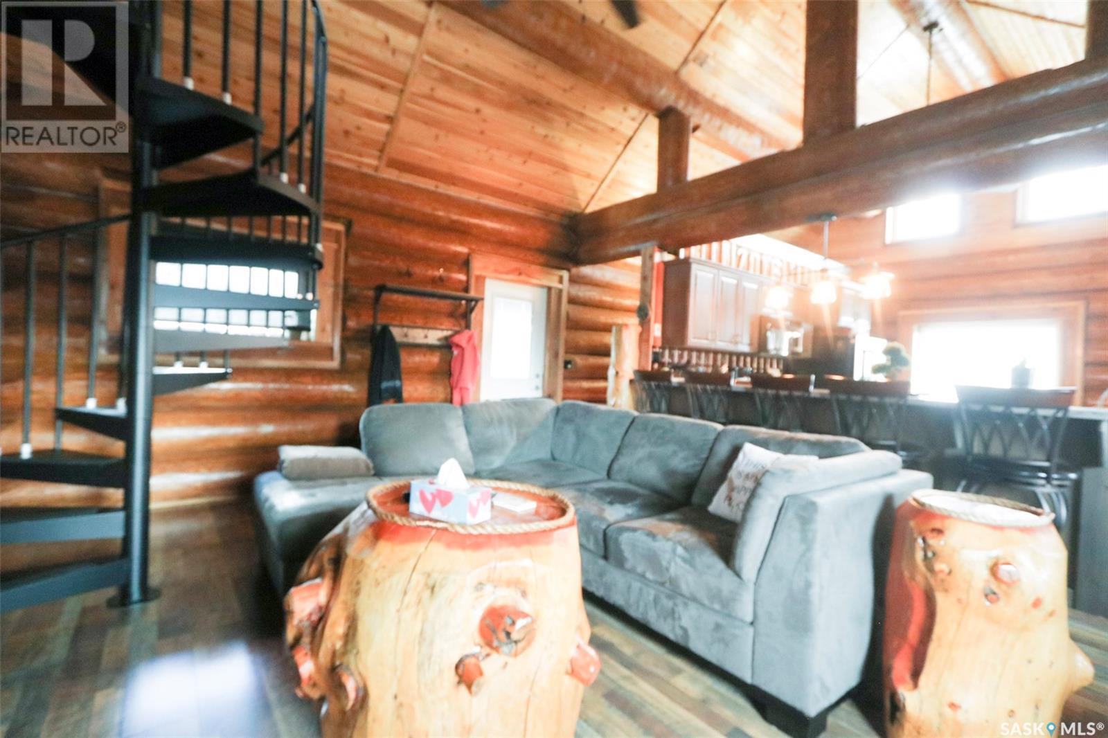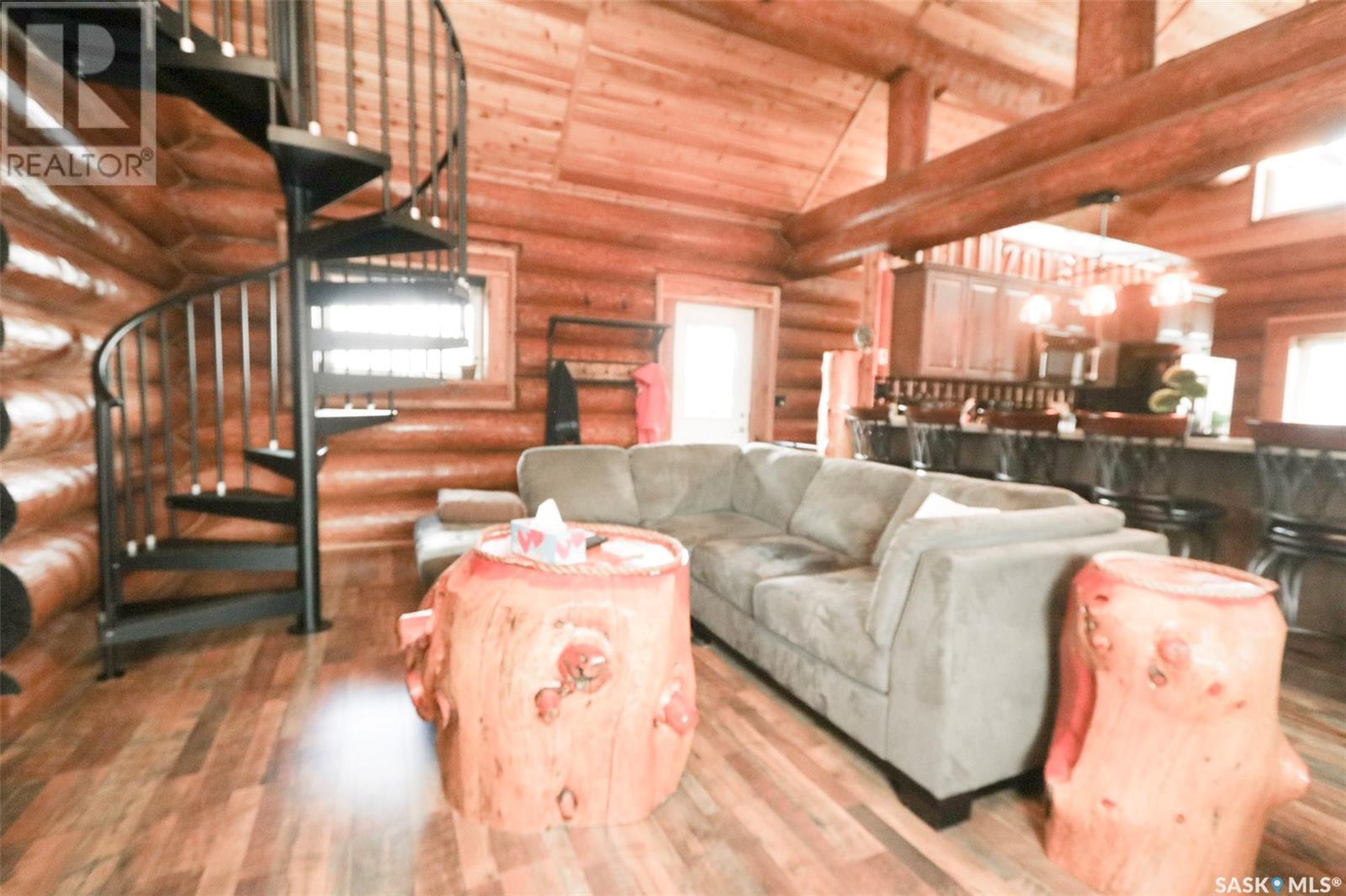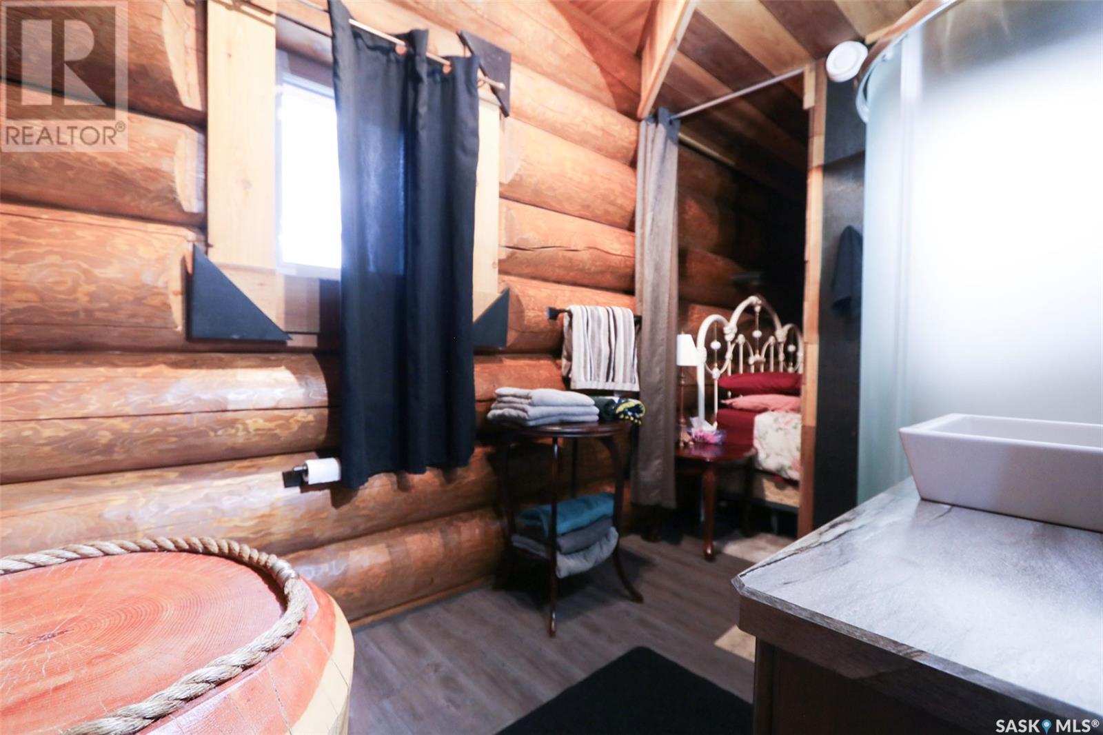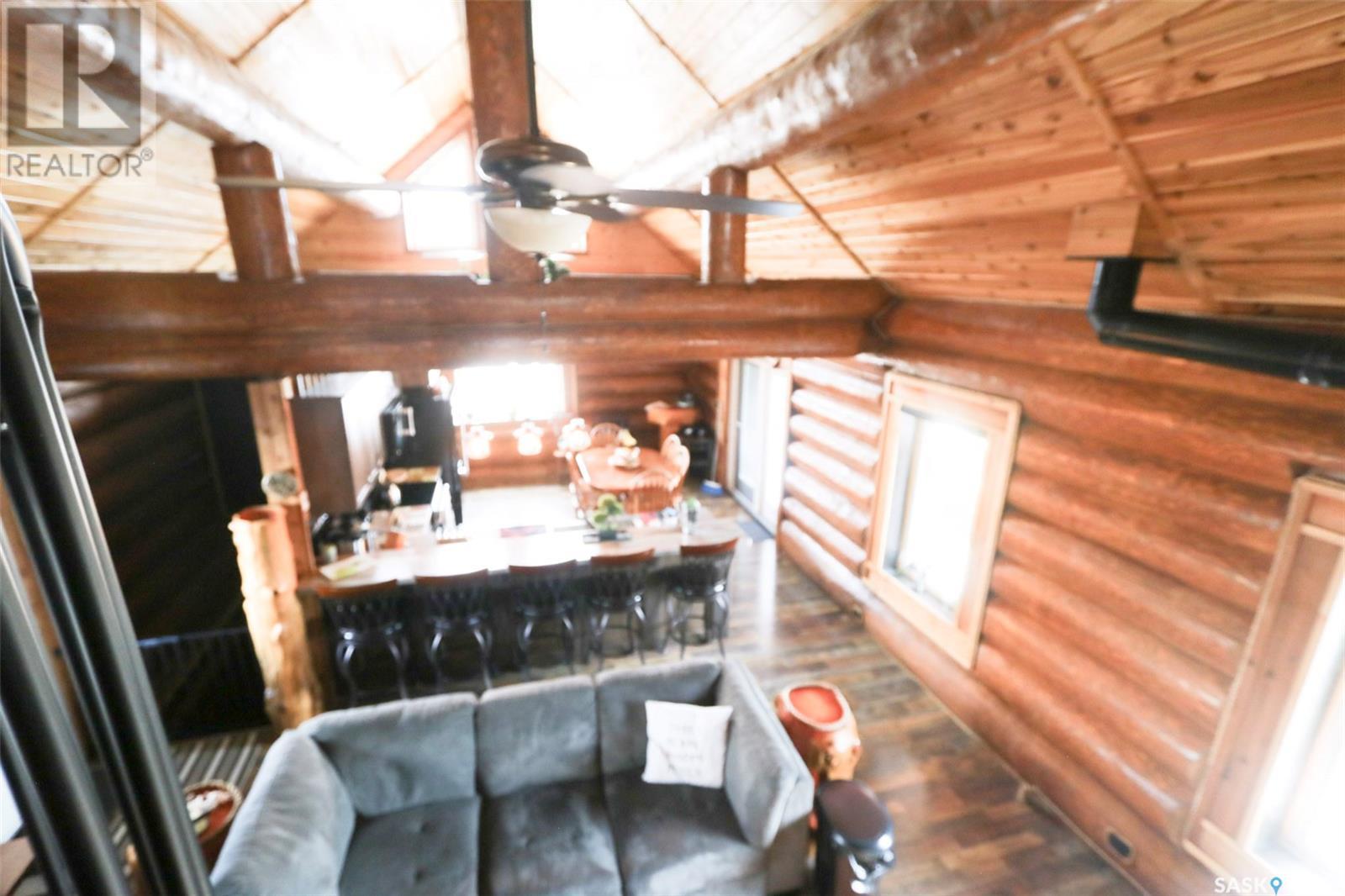 Escape to your private oasis with this stunning custom log home nestled on the south edge of Deerfoot Trail, offering peace and seclusion surrounded by mature trees. Located just 3 minutes from the beach and sand dunes, this home provides quick access to all the outdoor fun your family craves. With ample parking space for your camper, boat, or toys, adventure is always within reach.The property also features a charming guest bunkhouse with a kitchenette and an outhouse for convenience during those cozy fire-lit evenings. Inside the main home, you'll find a spacious family room perfect for games, lounging, and entertaining. Custom side-up counters line both sides of the room, leading to the back door, where you'll find the laundry area and a versatile room that can host two bedrooms, along with a shared 3-piece bath. Large barn-style doors open to a future covered patio, offering additional living space.Upstairs, the craftsmanship continues with beautiful log finishes throughout, creating an inviting and cozy atmosphere with vaulted ceilings. The highlight of this space is the expansive covered concrete balcony, complete with in-floor heating and breathtaking lake views. The custom log table with built-in benches provides the perfect spot for family gatherings and sunset watching. The well-appointed kitchen offers plenty of space for preparing your favorite dishes, while the inviting living room with a fireplace is perfect for those quiet evenings in. The master suite features a luxurious 5-piece bath, a walk-in closet, and stackable laundry for added convenience. A second balcony off the living room is the perfect spot for morning coffee as you take in the sunrise.A custom spiral staircase leads to the loft space, ideal for a bedroom or play area for the kids. Whether you're enjoying nature, spending time with family, or pursuing your hobbies, this home offers a lifestyle that's second to none. (id:43042)
