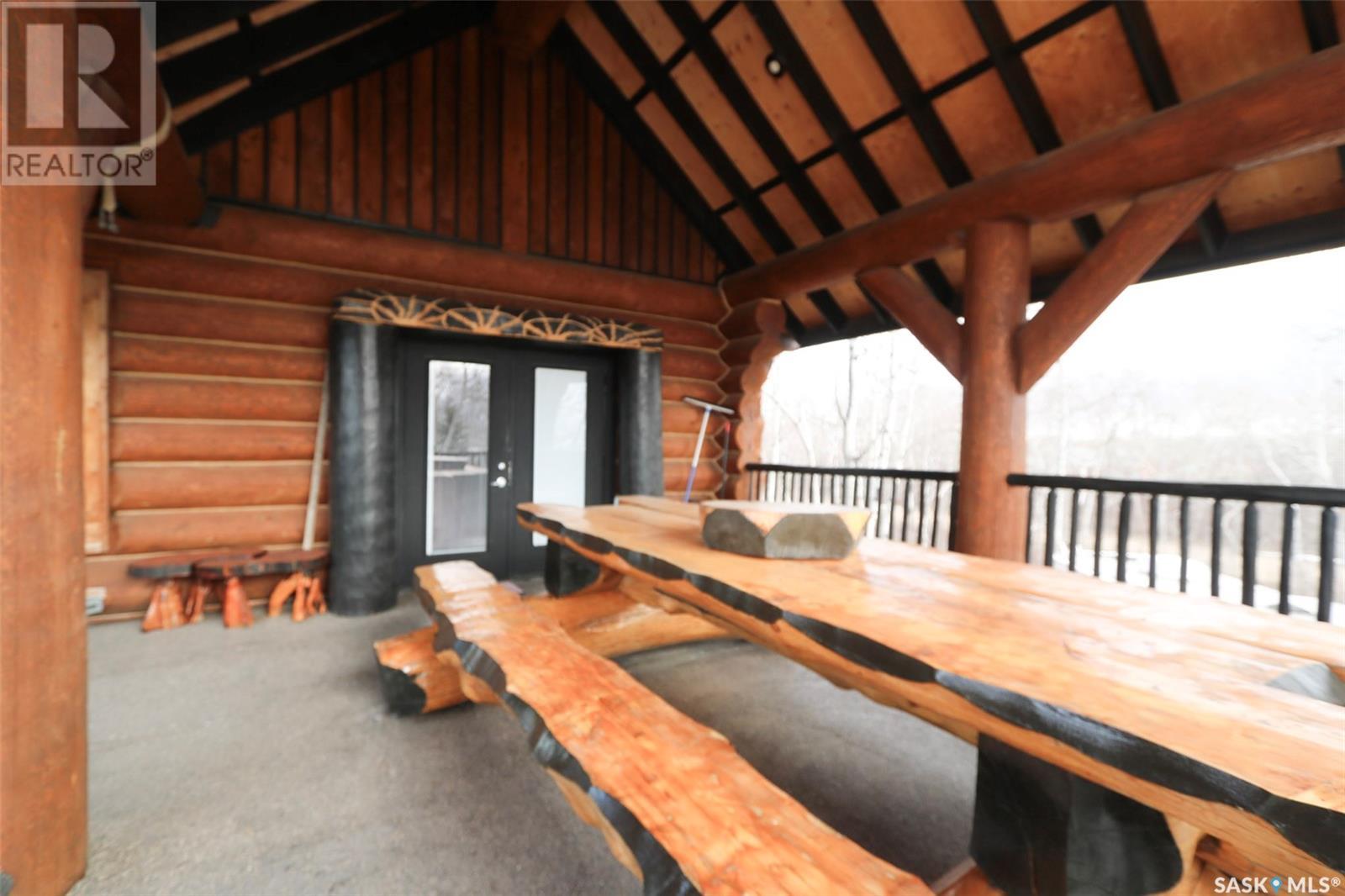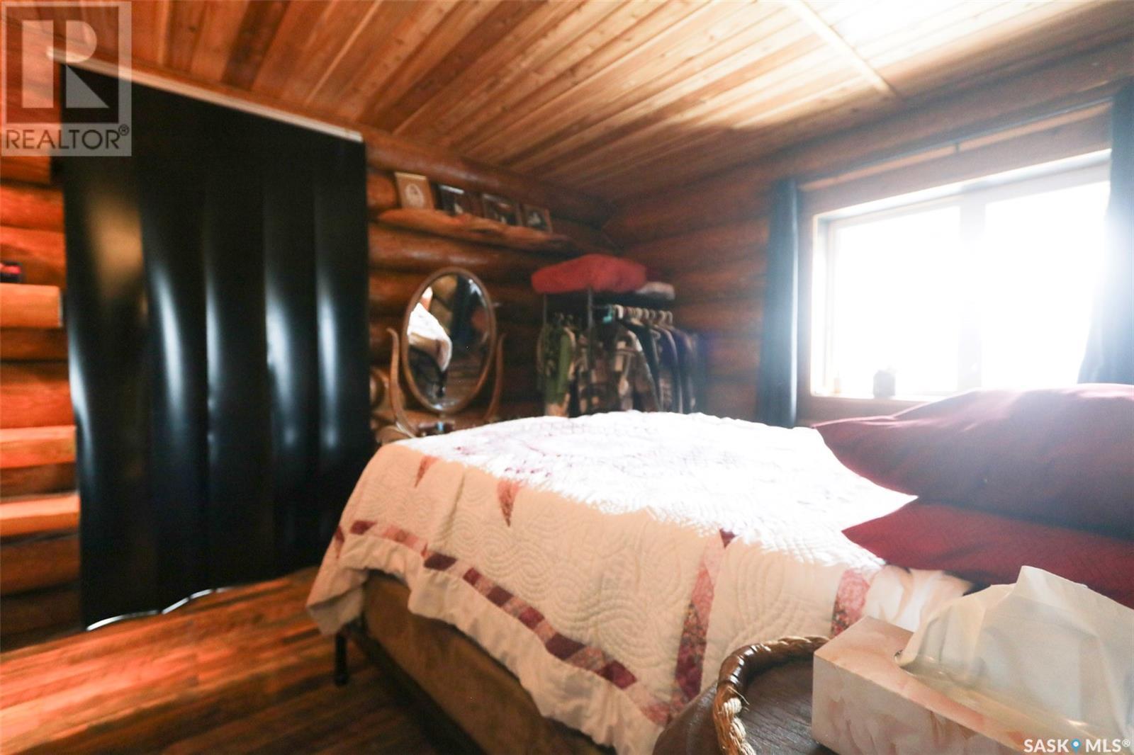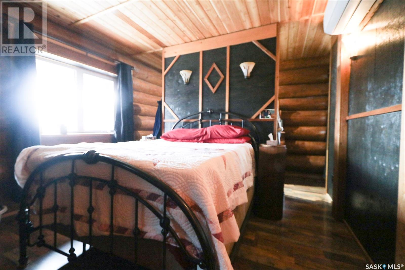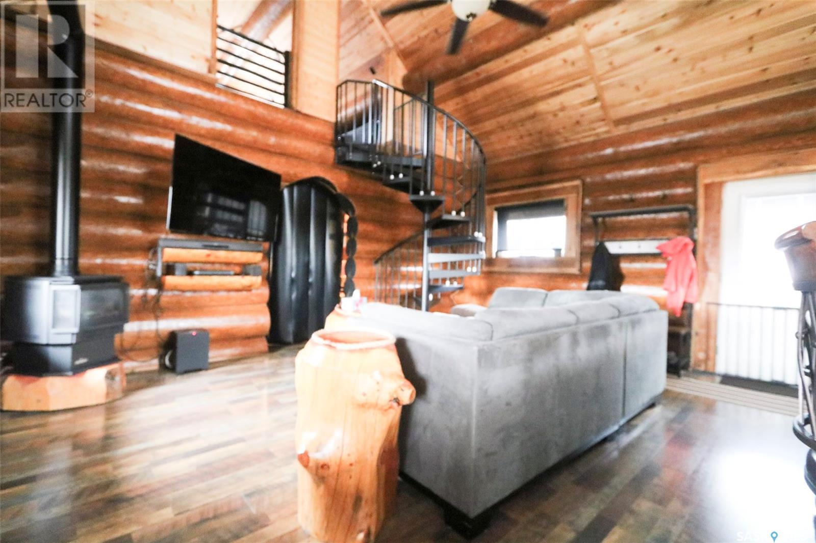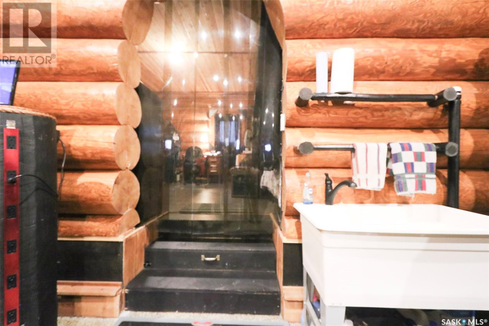 Escape to your private oasis with this stunning custom log home nestled on the south edge of Deerfoot Trail, offering peace and seclusion surrounded by mature trees. Located just 3 minutes from the beach and sand dunes, this home provides quick access to all the outdoor fun your family craves. With ample parking space for your camper, boat, or toys, adventure is always within reach.The property also features a charming guest bunkhouse with a kitchenette and an outhouse for convenience during those cozy fire-lit evenings. Inside the main home, you'll find a spacious family room perfect for games, lounging, and entertaining. Custom side-up counters line both sides of the room, leading to the back door, where you'll find the laundry area and a versatile room that can host two bedrooms, along with a shared 3-piece bath. Large barn-style doors open to a future covered patio, offering additional living space.Upstairs, the craftsmanship continues with beautiful log finishes throughout, creating an inviting and cozy atmosphere with vaulted ceilings. The highlight of this space is the expansive covered concrete balcony, complete with in-floor heating and breathtaking lake views. The custom log table with built-in benches provides the perfect spot for family gatherings and sunset watching. The well-appointed kitchen offers plenty of space for preparing your favorite dishes, while the inviting living room with a fireplace is perfect for those quiet evenings in. The master suite features a luxurious 5-piece bath, a walk-in closet, and stackable laundry for added convenience. A second balcony off the living room is the perfect spot for morning coffee as you take in the sunrise.A custom spiral staircase leads to the loft space, ideal for a bedroom or play area for the kids. Whether you're enjoying nature, spending time with family, or pursuing your hobbies, this home offers a lifestyle that's second to none. (id:43042)