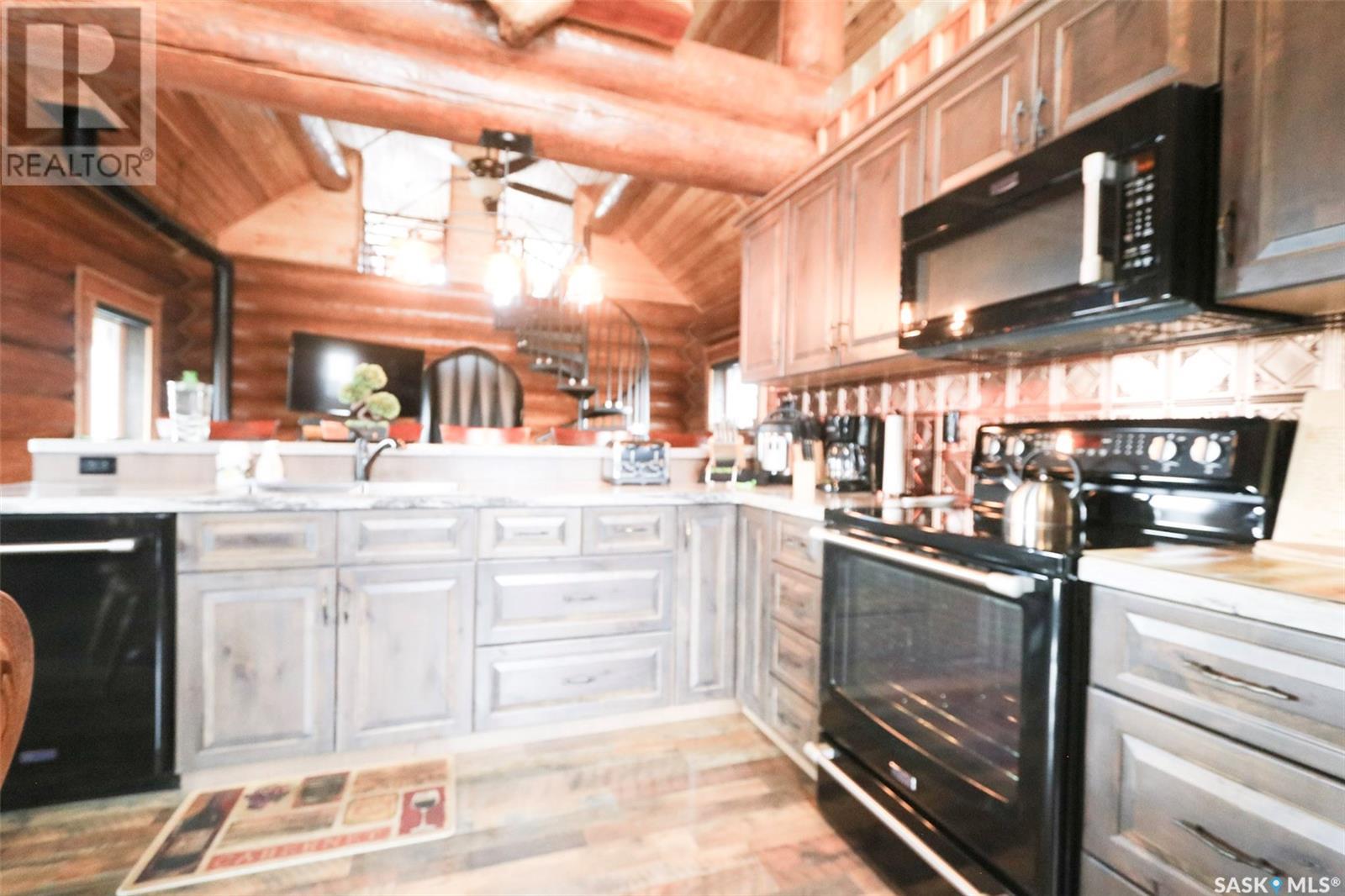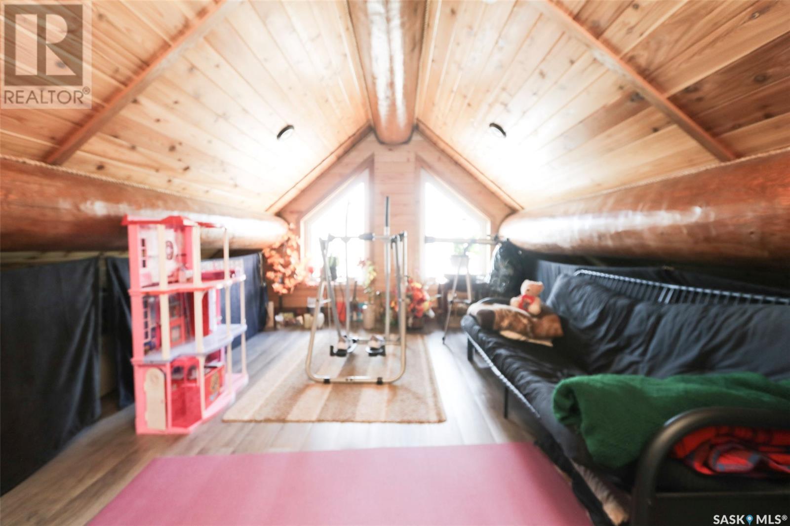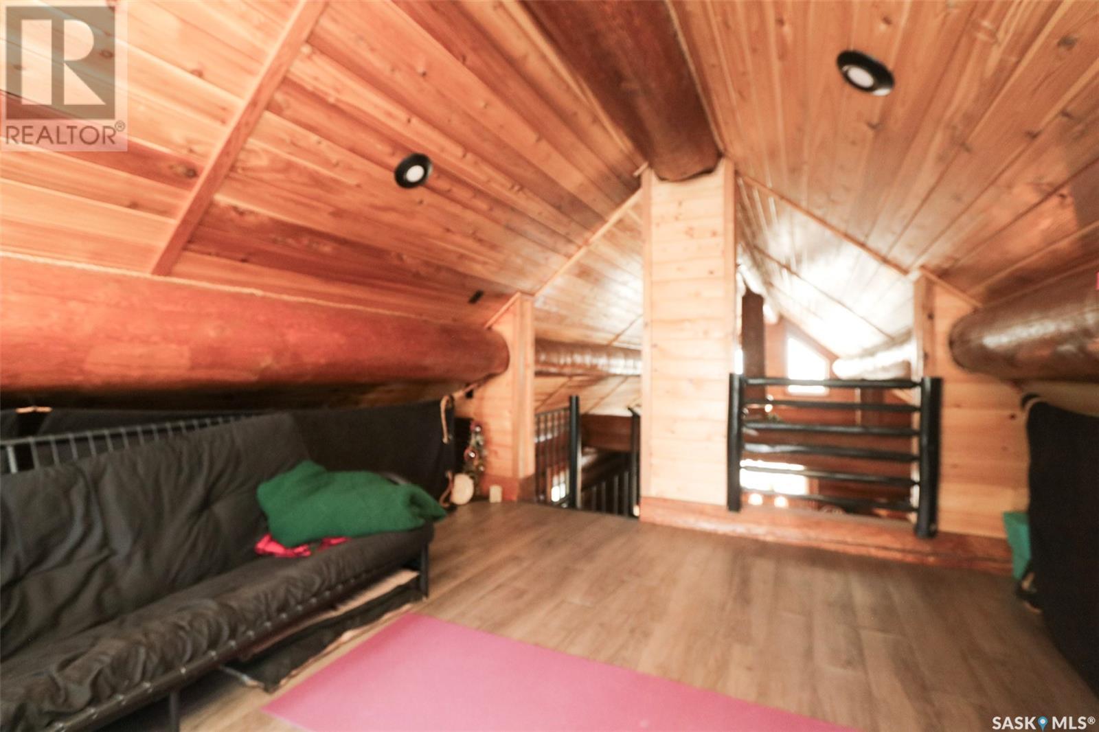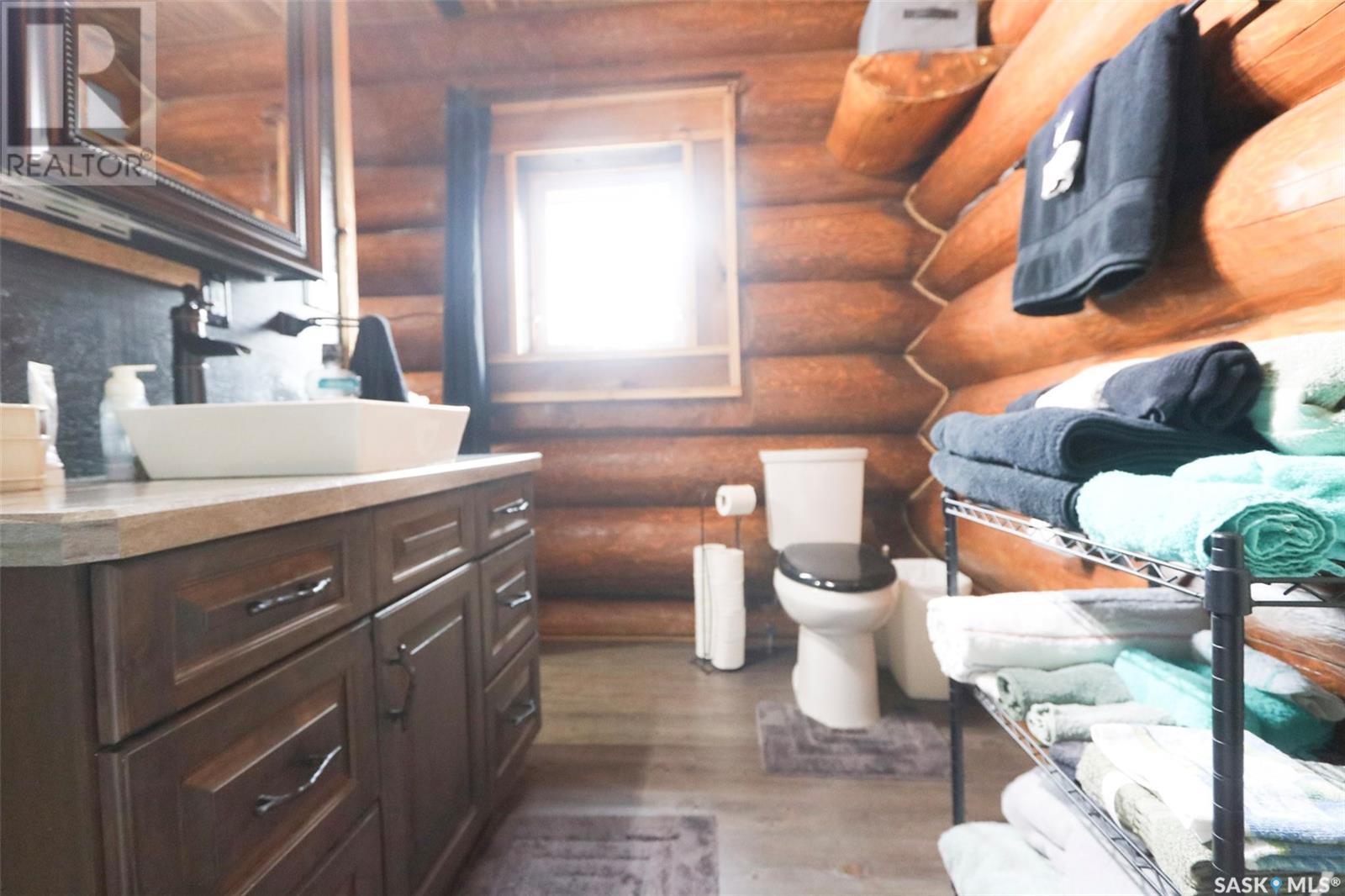 Escape to your private oasis with this stunning custom log home nestled on the south edge of Deerfoot Trail, offering peace and seclusion surrounded by mature trees. Located just 3 minutes from the beach and sand dunes, this home provides quick access to all the outdoor fun your family craves. With ample parking space for your camper, boat, or toys, adventure is always within reach.The property also features a charming guest bunkhouse with a kitchenette and an outhouse for convenience during those cozy fire-lit evenings. Inside the main home, you'll find a spacious family room perfect for games, lounging, and entertaining. Custom side-up counters line both sides of the room, leading to the back door, where you'll find the laundry area and a versatile room that can host two bedrooms, along with a shared 3-piece bath. Large barn-style doors open to a future covered patio, offering additional living space.Upstairs, the craftsmanship continues with beautiful log finishes throughout, creating an inviting and cozy atmosphere with vaulted ceilings. The highlight of this space is the expansive covered concrete balcony, complete with in-floor heating and breathtaking lake views. The custom log table with built-in benches provides the perfect spot for family gatherings and sunset watching. The well-appointed kitchen offers plenty of space for preparing your favorite dishes, while the inviting living room with a fireplace is perfect for those quiet evenings in. The master suite features a luxurious 5-piece bath, a walk-in closet, and stackable laundry for added convenience. A second balcony off the living room is the perfect spot for morning coffee as you take in the sunrise.A custom spiral staircase leads to the loft space, ideal for a bedroom or play area for the kids. Whether you're enjoying nature, spending time with family, or pursuing your hobbies, this home offers a lifestyle that's second to none. (id:43042)