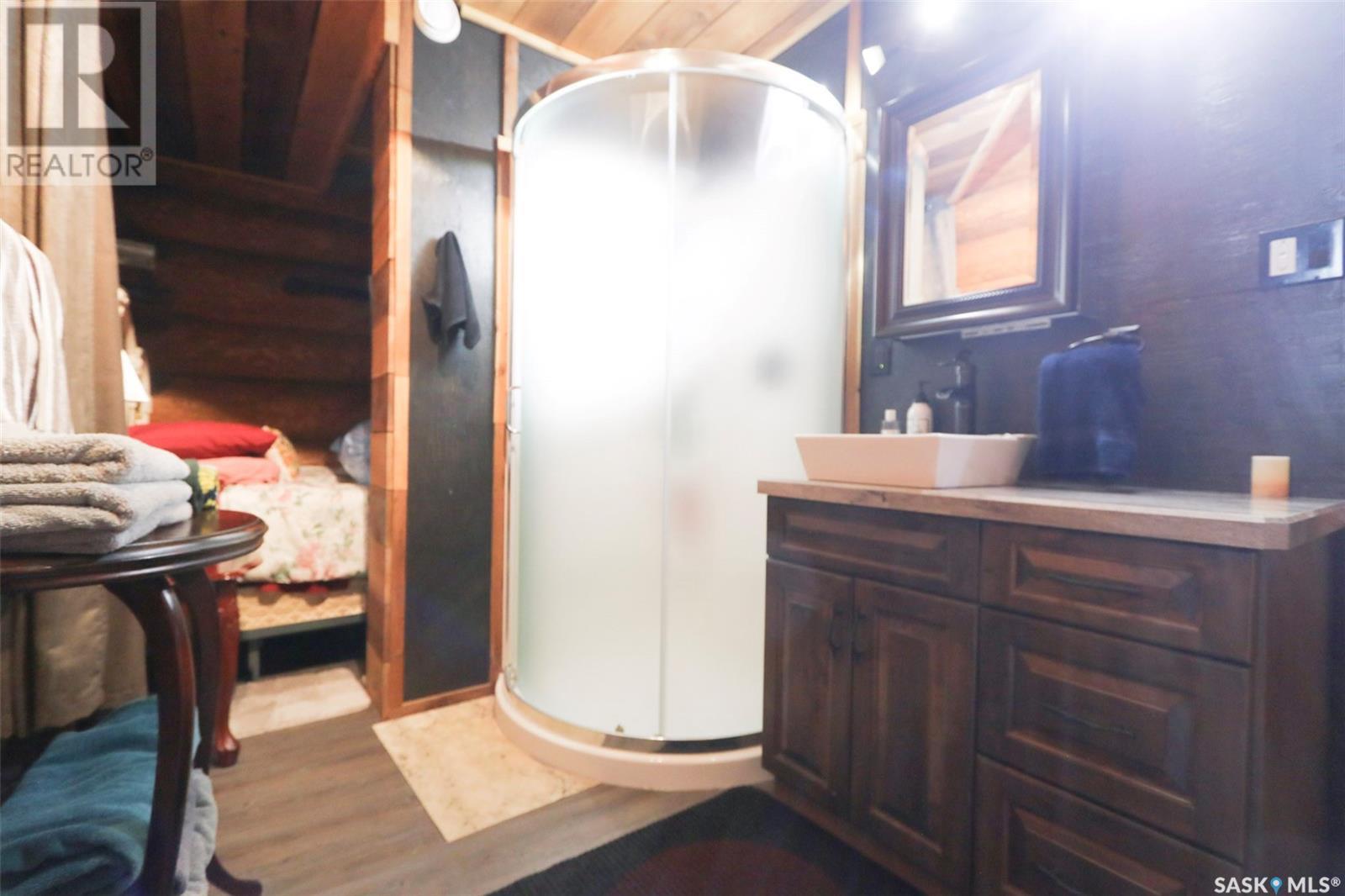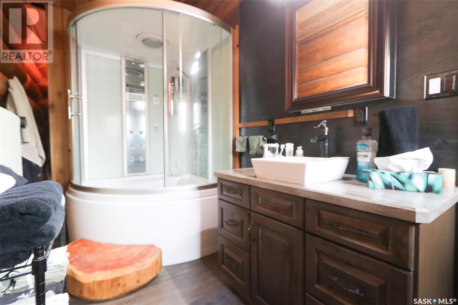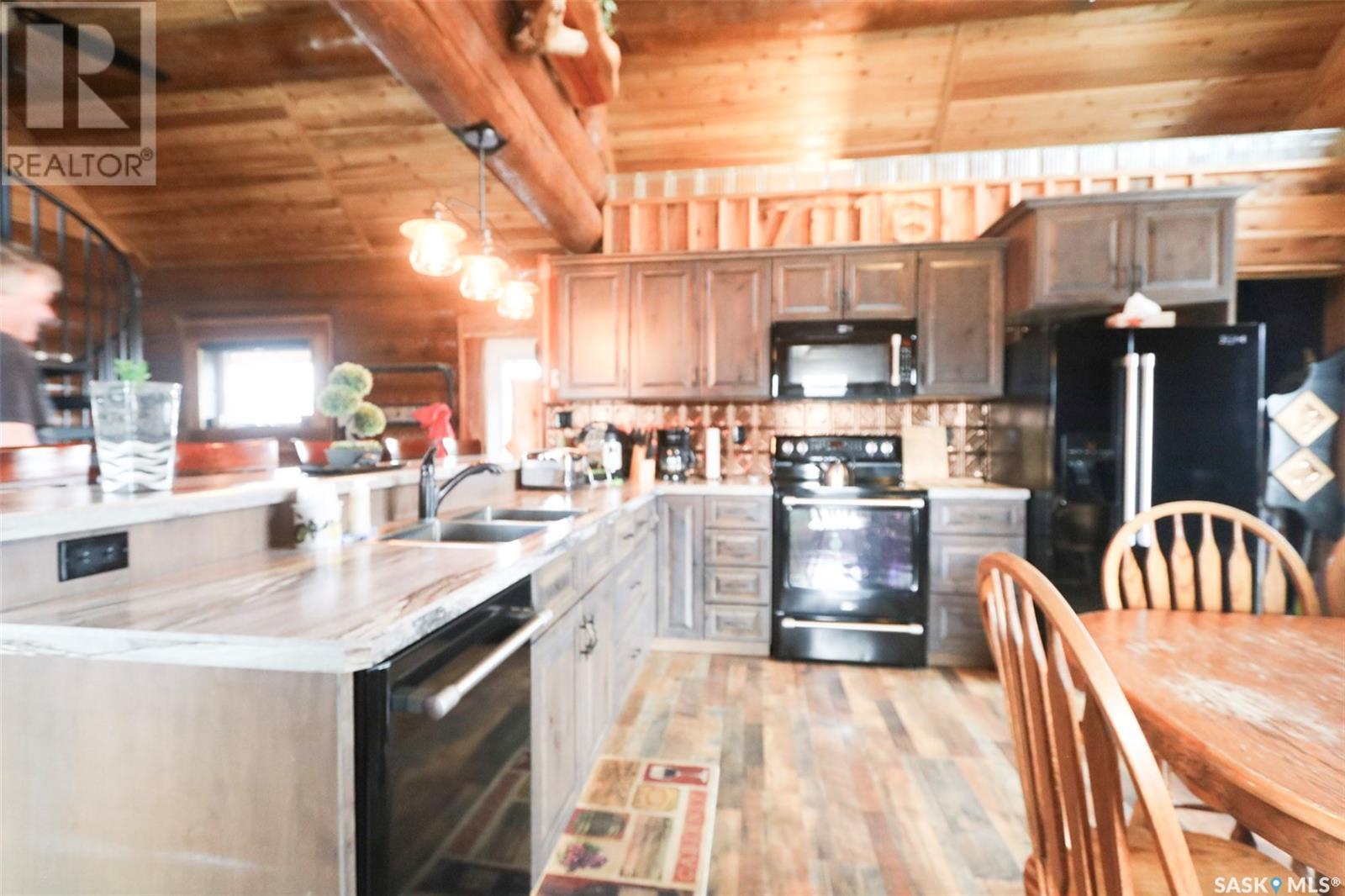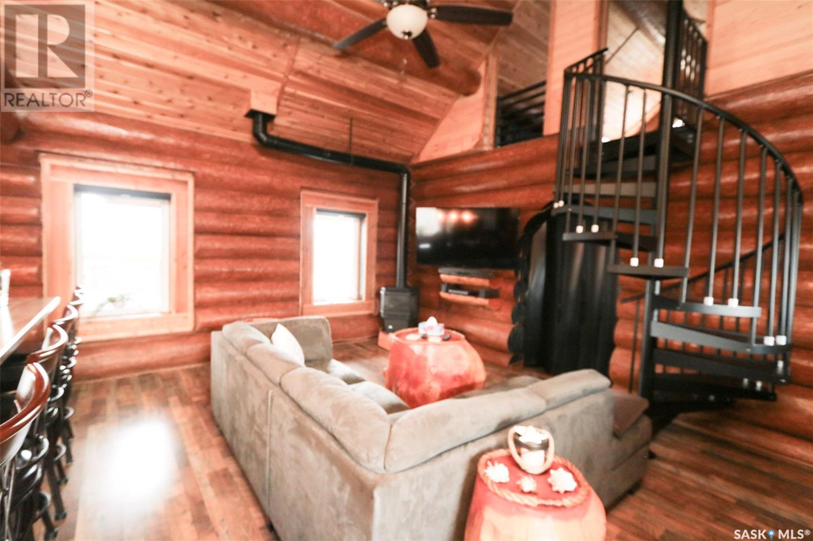 Escape to your private oasis with this stunning custom log home nestled on the south edge of Deerfoot Trail, offering peace and seclusion surrounded by mature trees. Located just 3 minutes from the beach and sand dunes, this home provides quick access to all the outdoor fun your family craves. With ample parking space for your camper, boat, or toys, adventure is always within reach.The property also features a charming guest bunkhouse with a kitchenette and an outhouse for convenience during those cozy fire-lit evenings. Inside the main home, you'll find a spacious family room perfect for games, lounging, and entertaining. Custom side-up counters line both sides of the room, leading to the back door, where you'll find the laundry area and a versatile room that can host two bedrooms, along with a shared 3-piece bath. Large barn-style doors open to a future covered patio, offering additional living space.Upstairs, the craftsmanship continues with beautiful log finishes throughout, creating an inviting and cozy atmosphere with vaulted ceilings. The highlight of this space is the expansive covered concrete balcony, complete with in-floor heating and breathtaking lake views. The custom log table with built-in benches provides the perfect spot for family gatherings and sunset watching. The well-appointed kitchen offers plenty of space for preparing your favorite dishes, while the inviting living room with a fireplace is perfect for those quiet evenings in. The master suite features a luxurious 5-piece bath, a walk-in closet, and stackable laundry for added convenience. A second balcony off the living room is the perfect spot for morning coffee as you take in the sunrise.A custom spiral staircase leads to the loft space, ideal for a bedroom or play area for the kids. Whether you're enjoying nature, spending time with family, or pursuing your hobbies, this home offers a lifestyle that's second to none. (id:43042)
