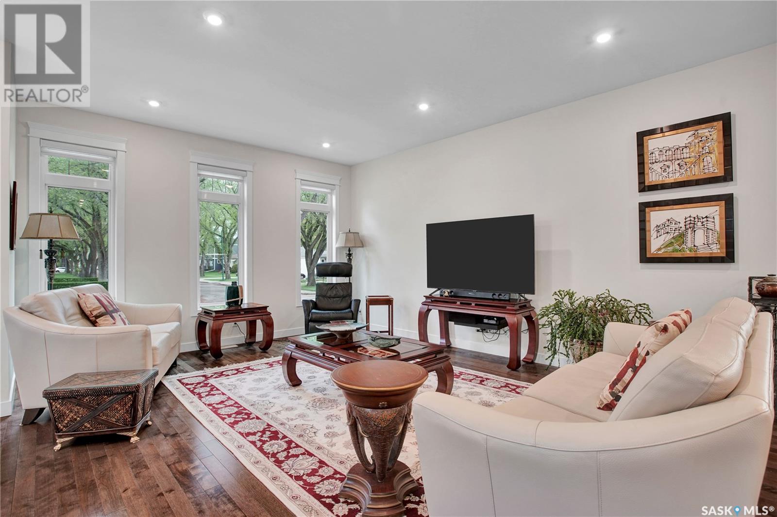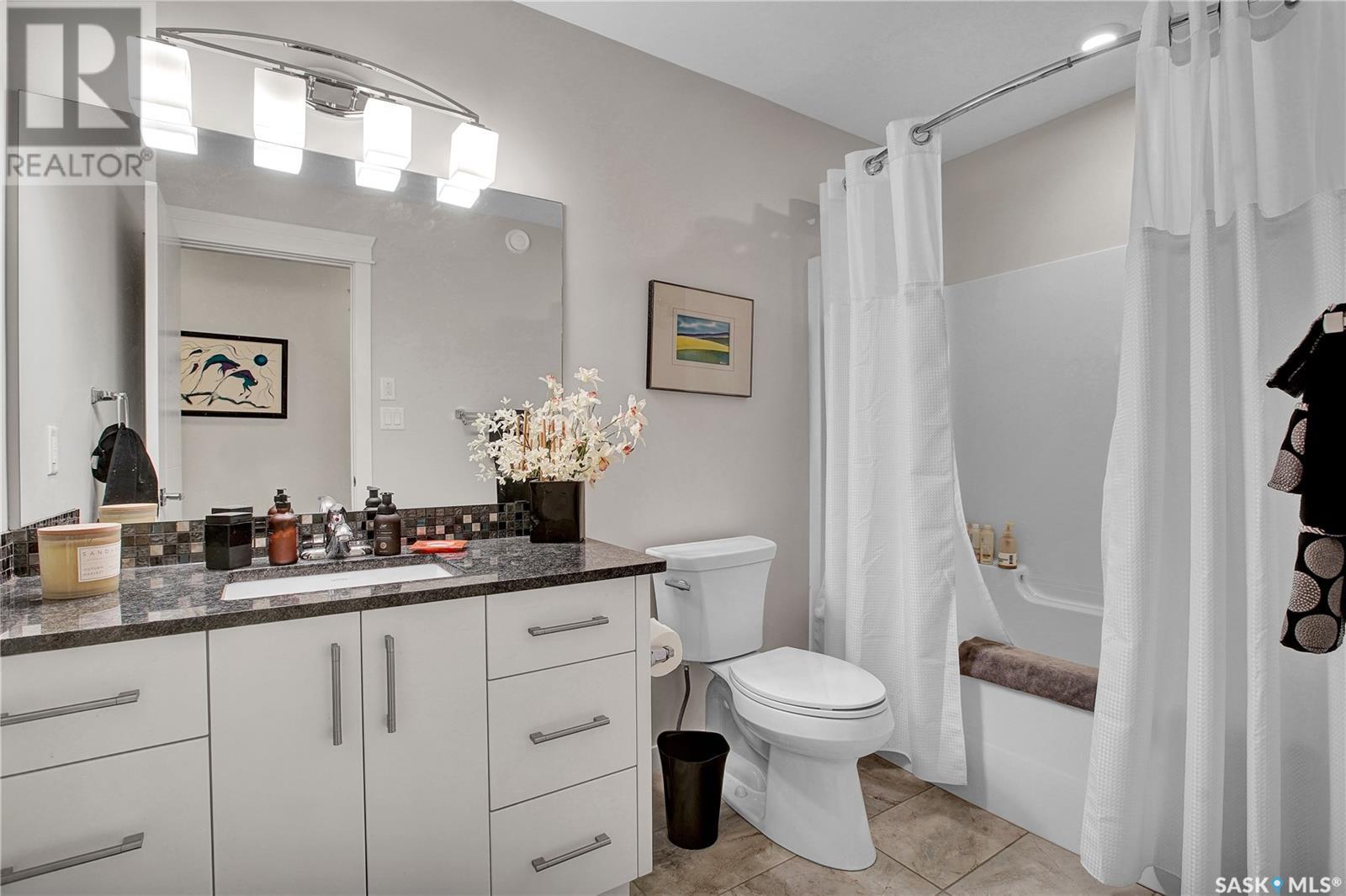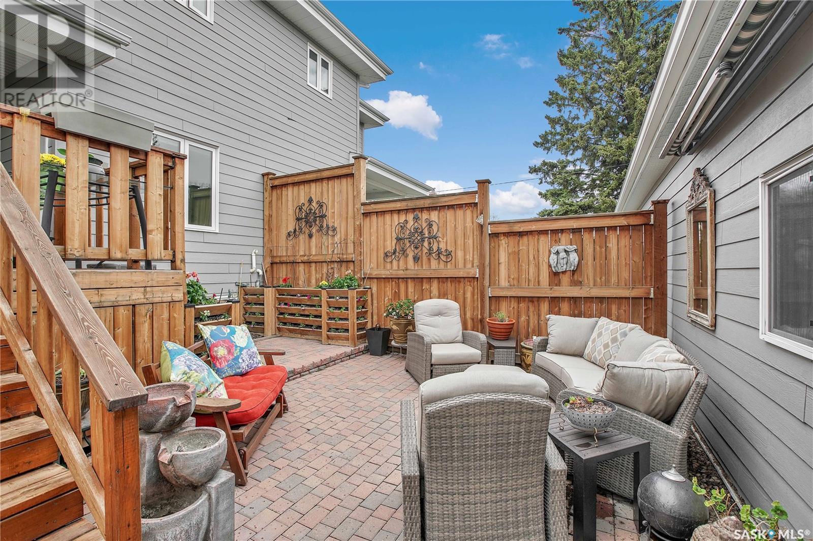 ***View the Video***Here is a dream property nestled in the heart of the Haultain community. This newer infill property boasts grand curb appeal & will for sure catch your eye with its stunning brick exterior accented with hardie board on the remainder. Sitting at 1850sqft, this home is larger than the average newer homes in this area, allowing for extra features & extra room for living & entertaining. Inside you are greeted with 9 foot ceilings & an open floorplan. The main floor is outfitted with hardwood flooring & has a large front room with huge windows allowing for abundance of natural light - with window coverings controlled via remote, another special perk of many in this home! The kitchen separates the living room to a formal dining space that is easily able to house your extra large table for those big gatherings, a rare feature in today's newer homes! The kitchen has a walk-in pantry, gas stove, granite counters & offsetting cabinets featuring a large island ideal for entertaining & food prep!!! There is of course a 2 pc bathroom on the main for convenience. Upstairs houses 3 of the 4 bedrooms in this home along with 2 more bathrooms. The owner's suite is gorgeous - featuring a nice sized walkin closet with custom shelving & a large 4 piece bathroom with dual sinks, walk-in glass & tile shower! There is also upstairs laundry in its own room with a utility sink. Downstairs is developed & continues with the 9 foot ceilings too. There is separate entrance if you choose to put in a basement suite. The basement has a gorgeous wet bar & nice sized sitting room, storage room, 3pc bath, & a good sized bedroom. The utility room has ample storage space that houses the central vac, high efficient furnace & water heater! Outside is tastefully done with a private patio area that leads to your double detached oversized heated garage. Other features include central air conditioning & a natural gas bbq line too! Contact a Realtor today to schedule your private viewing!!! (id:43042)