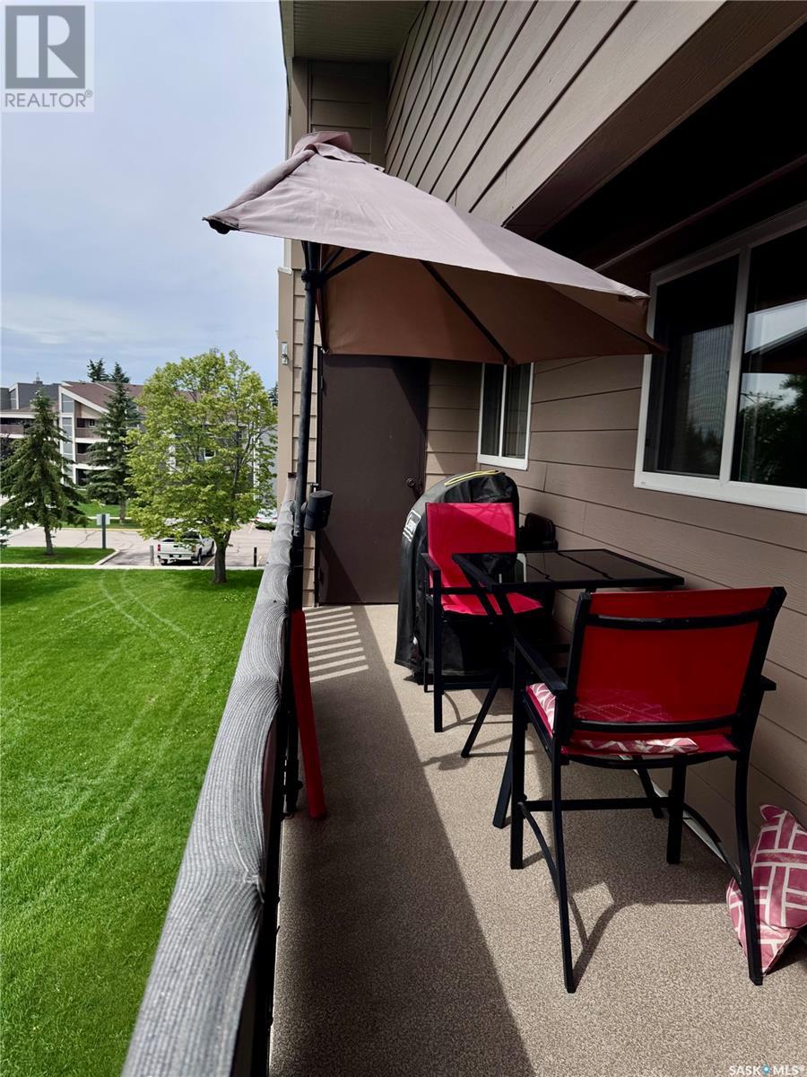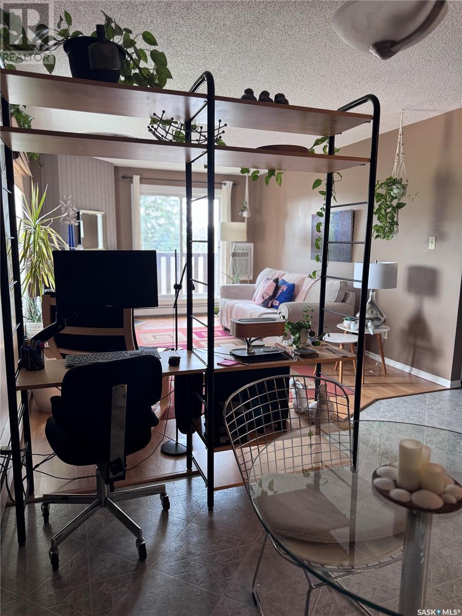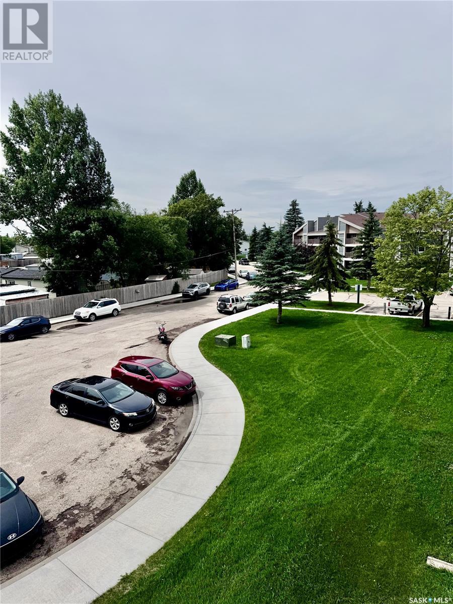 TOP FLOOR 2 bedroom corner unit is 883 sq.ft and is ideally located in the well sought after complex of Forest Grove Village. This unit faces south and is perfectly located in a quiet corner of the complex beside the school park and walking path. Enjoy the added feature of an east facing bonus window in the living room providing an abundance of natural light into the living area. Features include convenient in-suite laundry and plenty of storage & closet space through out. An additional storage room is also located on the balcony. Upgrades include newer windows, patio door, AC unit and brand new tub & surround. The unit opens up to a very large balcony for outdoor relaxation. Very close to schools, shopping and services including public transit with direct bus service to the U of S and downtown. One electrified surface parking stall is included. Additional parking stall rental inquiries through the on-site office pending availability. As well, a large parking area on the street is located only steps away. On-site staff operations are located in the center of the complex in the Recreation Centre which features a very affordable membership program with access to the racquetball courts, exercise room and a games area. Move in ready opportunity for homeowners or investors alike. Schedule your viewing today ! (id:43042)