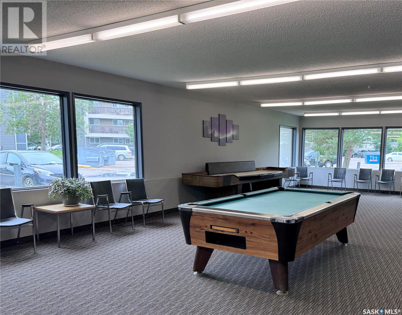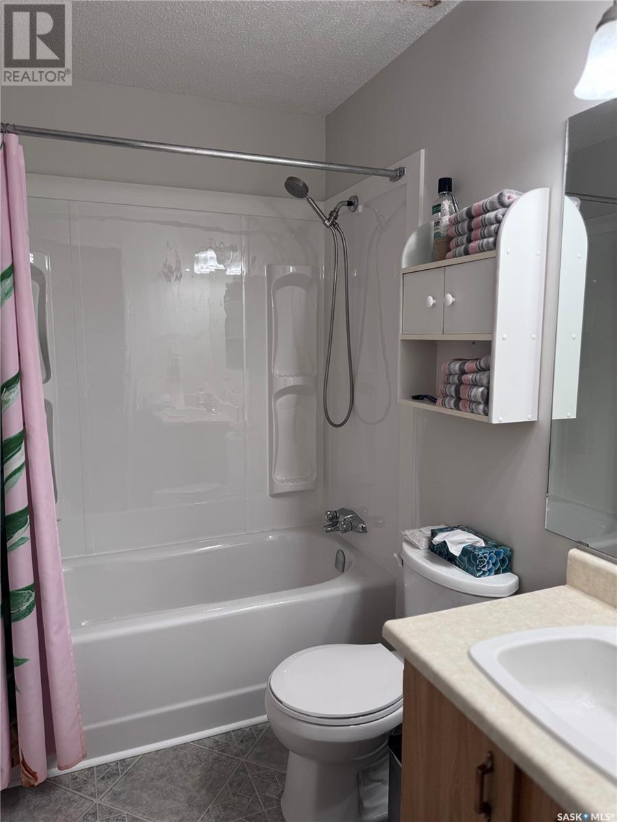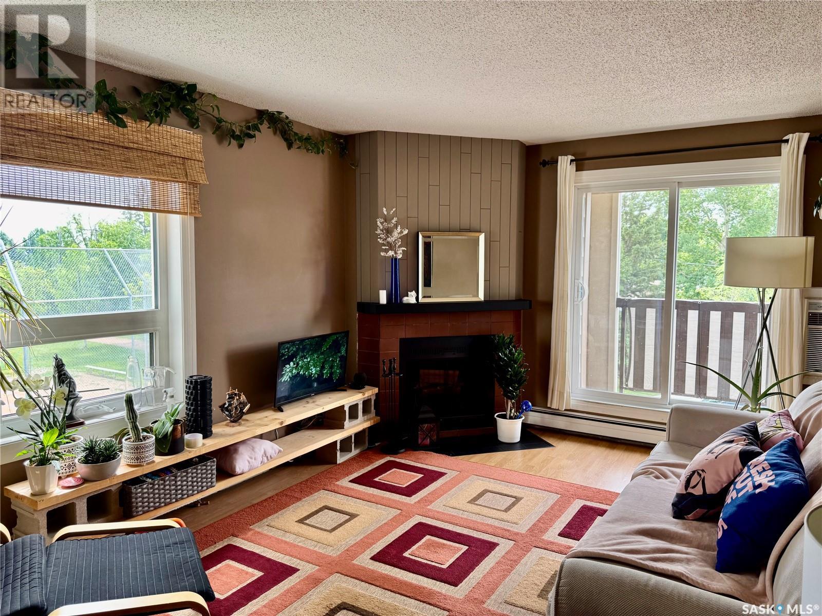 TOP FLOOR 2 bedroom corner unit is 883 sq.ft and is ideally located in the well sought after complex of Forest Grove Village. This unit faces south and is perfectly located in a quiet corner of the complex beside the school park and walking path. Enjoy the added feature of an east facing bonus window in the living room providing an abundance of natural light into the living area. Features include convenient in-suite laundry and plenty of storage & closet space through out. An additional storage room is also located on the balcony. Upgrades include newer windows, patio door, AC unit and brand new tub & surround. The unit opens up to a very large balcony for outdoor relaxation. Very close to schools, shopping and services including public transit with direct bus service to the U of S and downtown. One electrified surface parking stall is included. Additional parking stall rental inquiries through the on-site office pending availability. As well, a large parking area on the street is located only steps away. On-site staff operations are located in the center of the complex in the Recreation Centre which features a very affordable membership program with access to the racquetball courts, exercise room and a games area. Move in ready opportunity for homeowners or investors alike. Schedule your viewing today ! (id:43042)