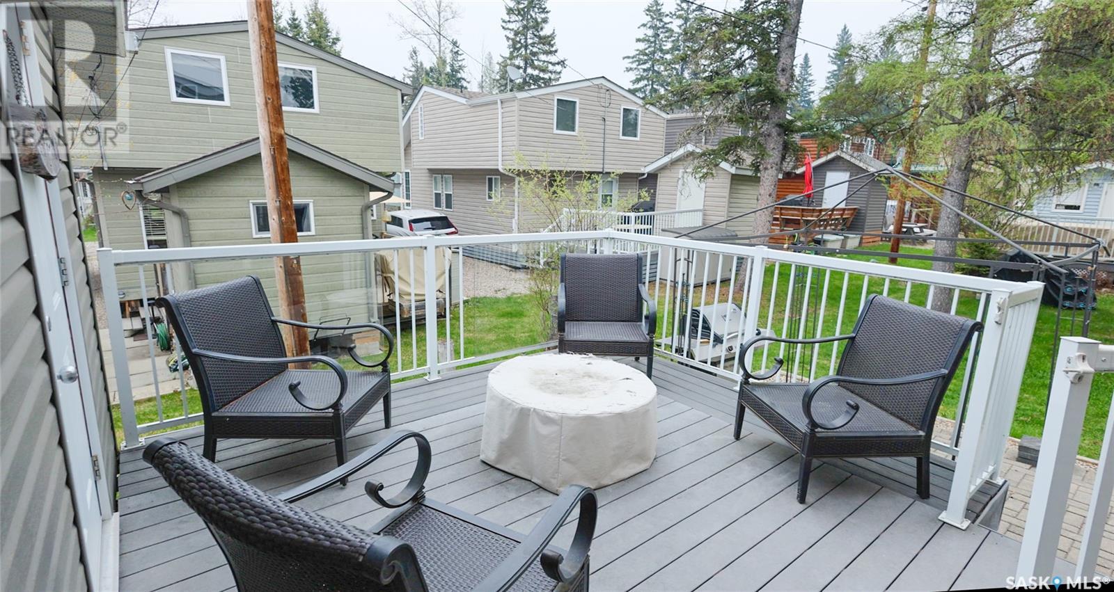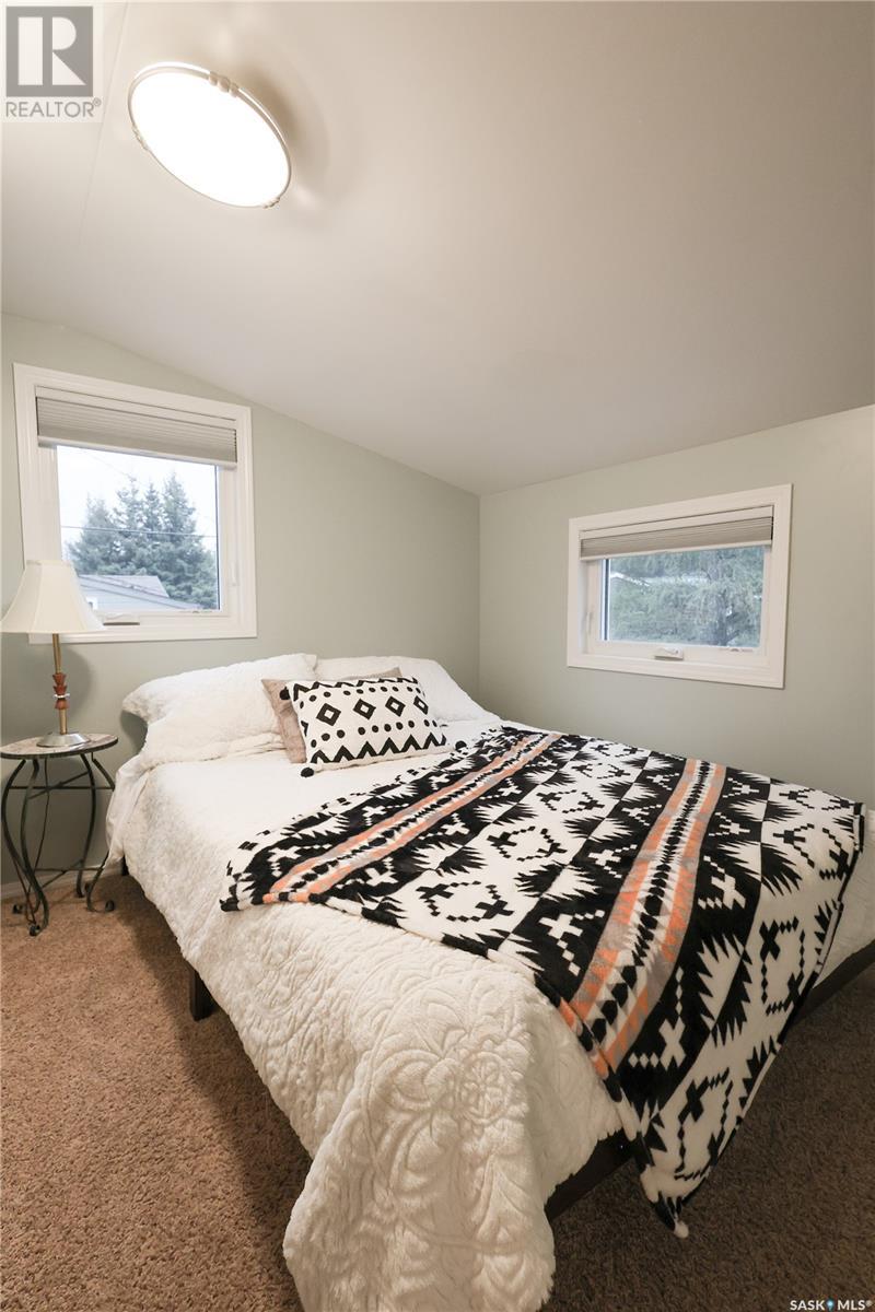 The Prince Albert National Park getaway you have been searching for! Located just minutes from the beach and town centre of the ever popular Waskesiu, this spacious property in the "Bird Streets" features 3 bedrooms and 2 bathrooms to maximize the space of the 30ft x 50ft lot! Upon entering this 868 sq/ft cabin that rests on a concrete pad, you will notice the spacious kitchen featuring all white appliances, a large center island and all the creature comforts of home including microwave and a dishwasher! Moving into the charming and spacious dining and living room you will notice the many large windows and 15 foot vaulted ceilings allowing for tons of natural light to fill the main living space. A 2 piece bathroom concludes the first floor. and the second floor boasts three spacious bedrooms and a very large 4 piece bathroom! Other notable features include stacked washer and dryer outfit in shed which are accessible from the maximum allowance back deck, green space on one side for extra privacy, and central forced air heat and A/C! A rare upgrade in the Bird Streets! Don't miss out on this opportunity, call your Realtor today! (id:43042)