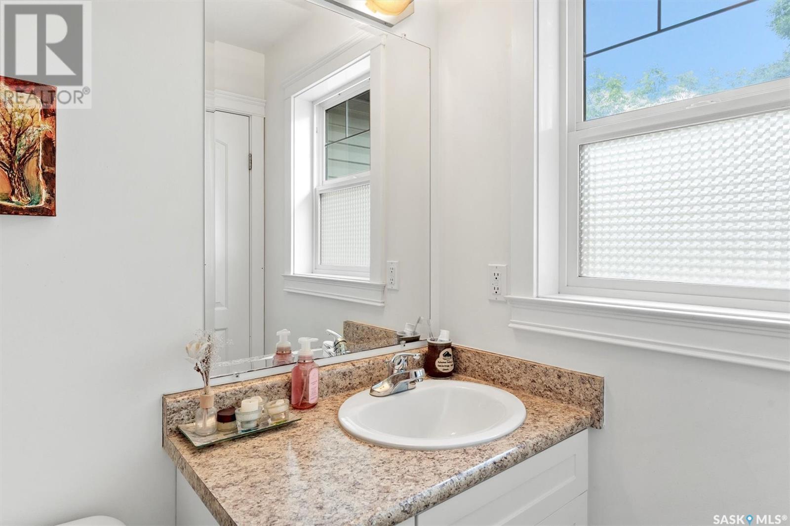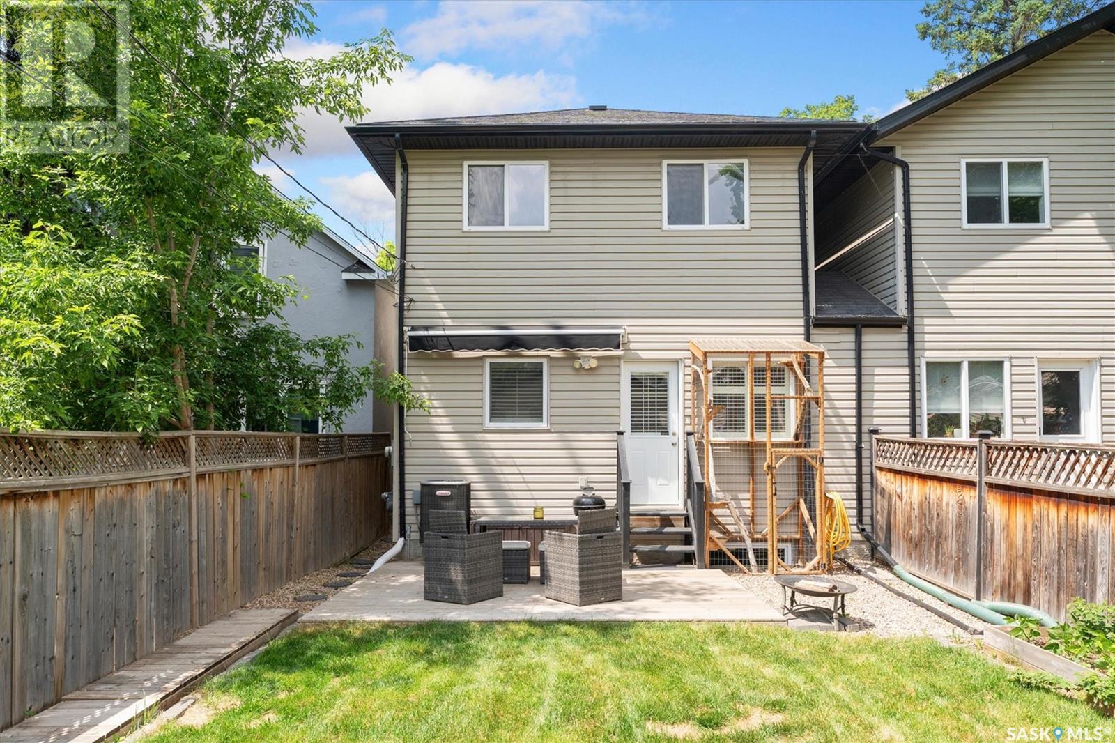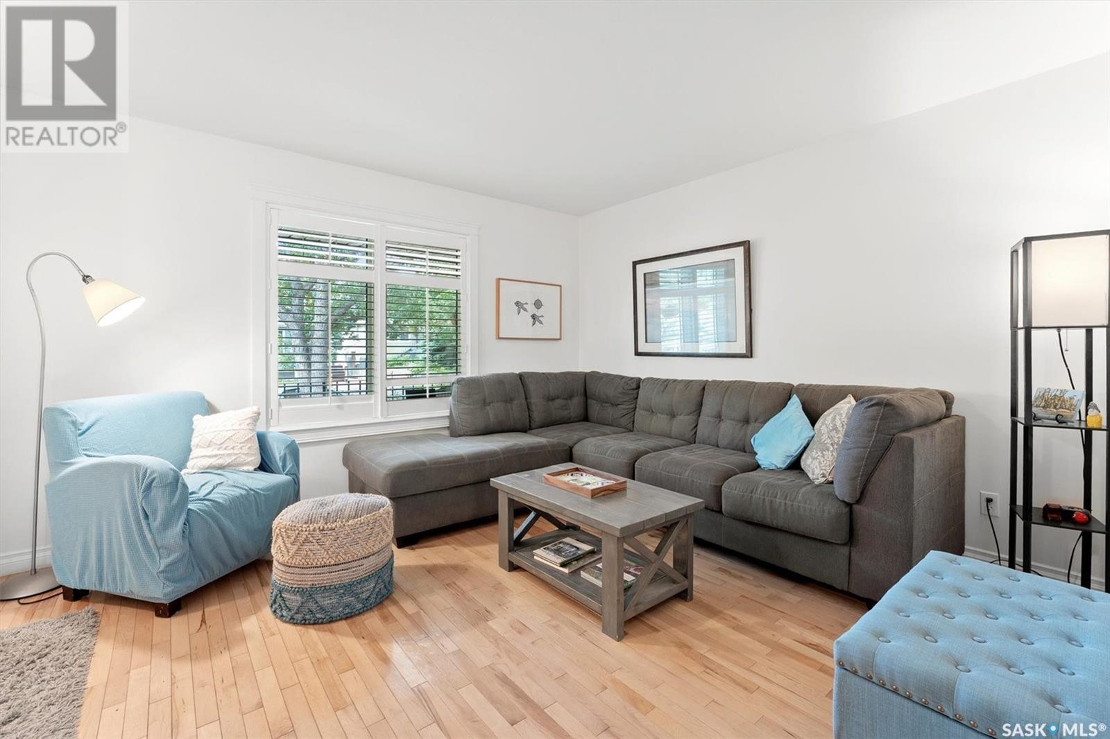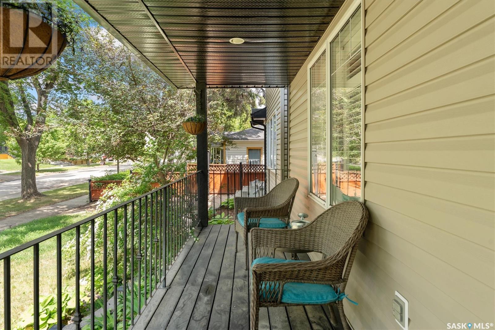 Start your day with coffee on the covered front veranda, set on a mature, tree-lined street in the heart of Buena Vista. This well-kept two-storey offers 4 bedrooms and 3 bathrooms, with recent updates and custom plantation shutters throughout. The main floor includes a front living room and foyer, a spacious kitchen with pantry, a large dining area, and a 2-piece powder room. Upstairs features three bedrooms and two full bathrooms, including a 4-piece ensuite off the primary bedroom. The basement is developed with a family room, fourth bedroom, storage areas, utility room, laundry and a rough-in for a future bathroom. The backyard is fully fenced and includes a back deck and a double detached garage. Located close to highly rated schools, 8th Street, the river, and Circle Drive, this home offers easy access to daily amenities and key routes. You’re also just a short walk or bike ride to downtown and nearby pathways. A solid home in a prime location, with clear pride of ownership throughout. (id:43042)