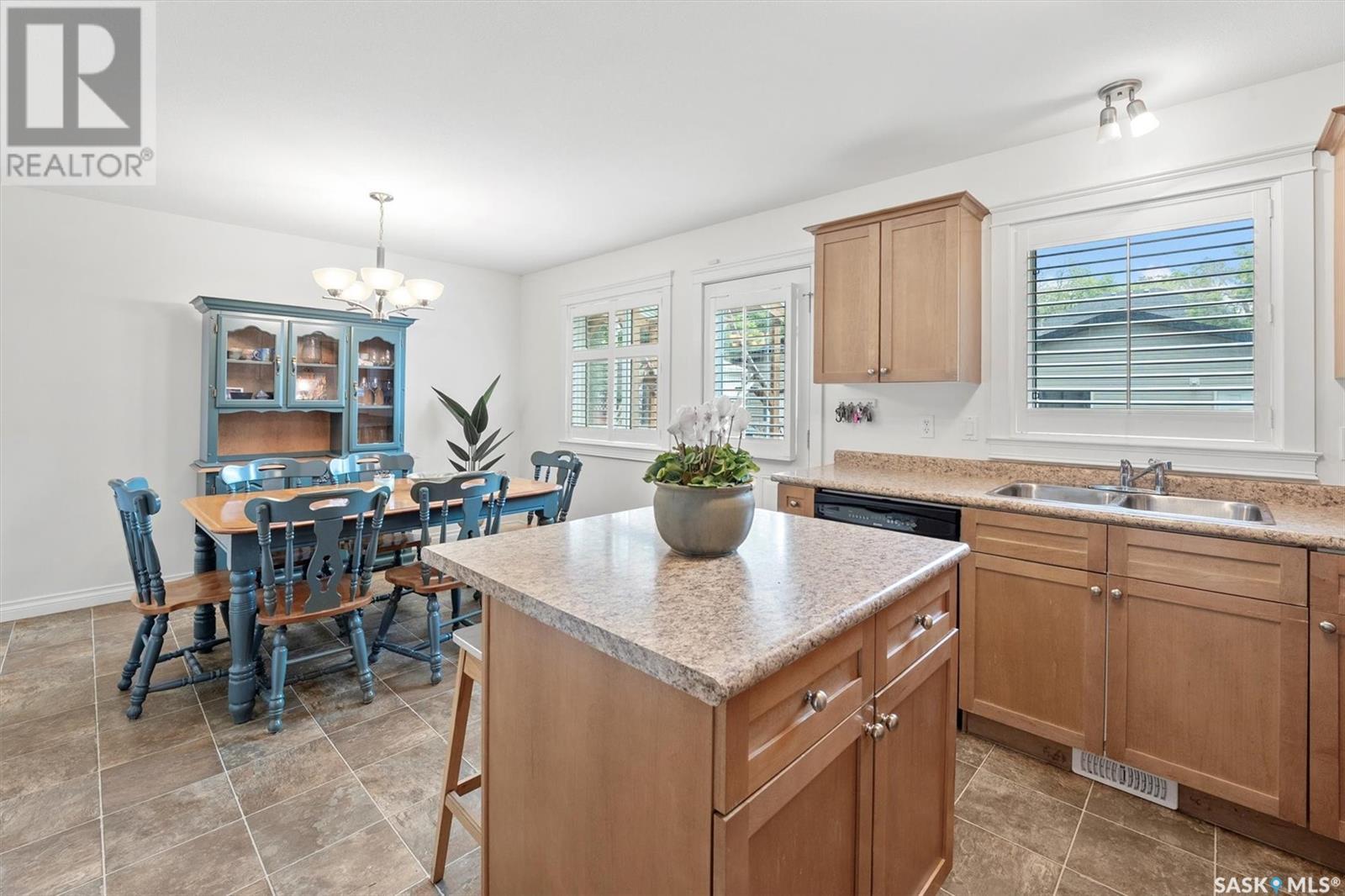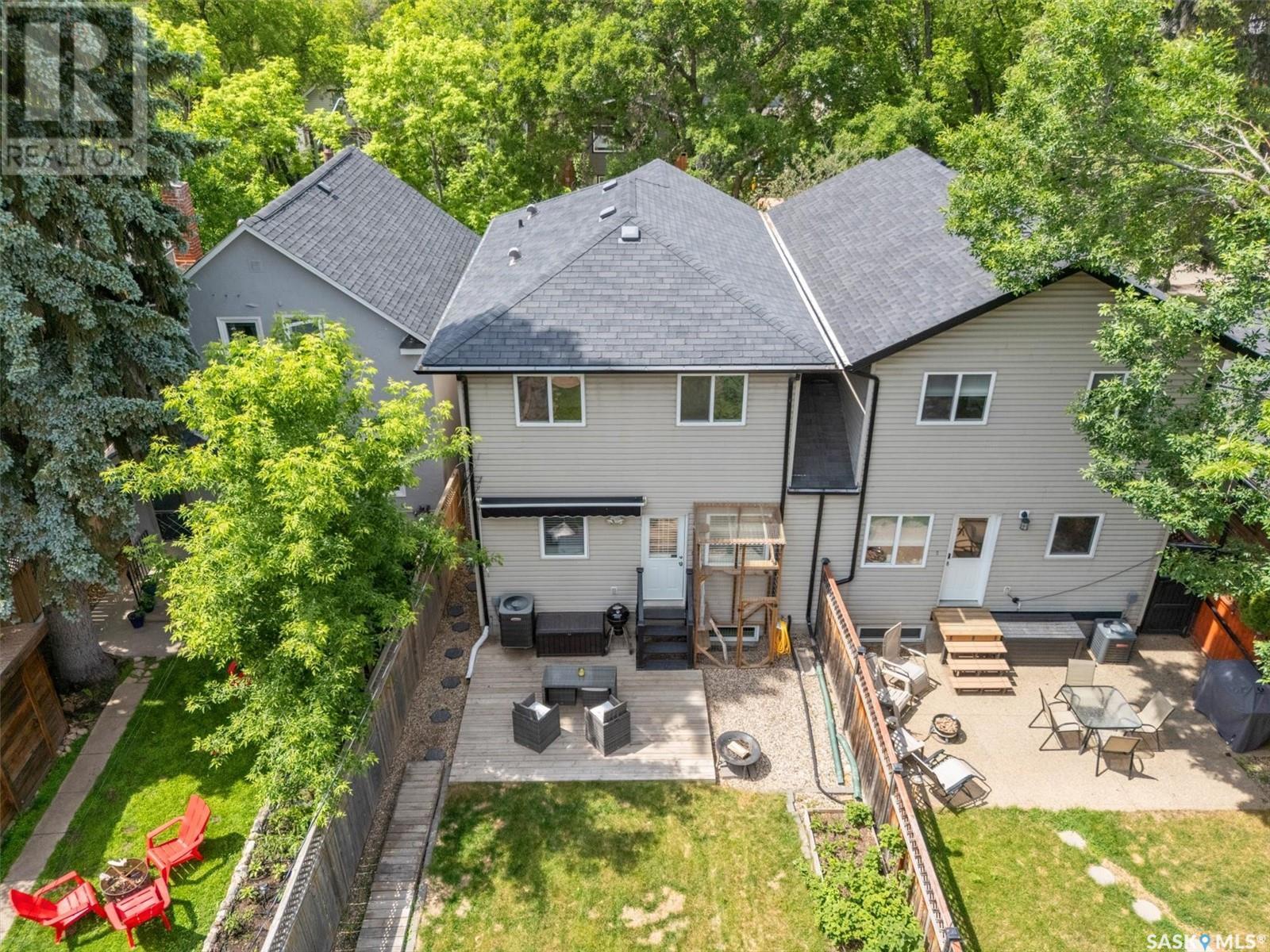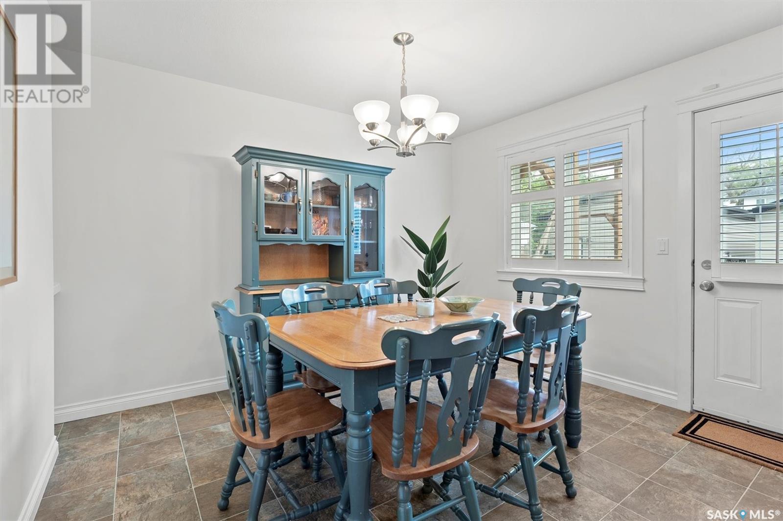 Start your day with coffee on the covered front veranda, set on a mature, tree-lined street in the heart of Buena Vista. This well-kept two-storey offers 4 bedrooms and 3 bathrooms, with recent updates and custom plantation shutters throughout. The main floor includes a front living room and foyer, a spacious kitchen with pantry, a large dining area, and a 2-piece powder room. Upstairs features three bedrooms and two full bathrooms, including a 4-piece ensuite off the primary bedroom. The basement is developed with a family room, fourth bedroom, storage areas, utility room, laundry and a rough-in for a future bathroom. The backyard is fully fenced and includes a back deck and a double detached garage. Located close to highly rated schools, 8th Street, the river, and Circle Drive, this home offers easy access to daily amenities and key routes. You’re also just a short walk or bike ride to downtown and nearby pathways. A solid home in a prime location, with clear pride of ownership throughout. (id:43042)