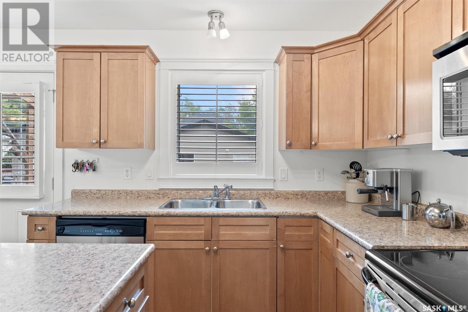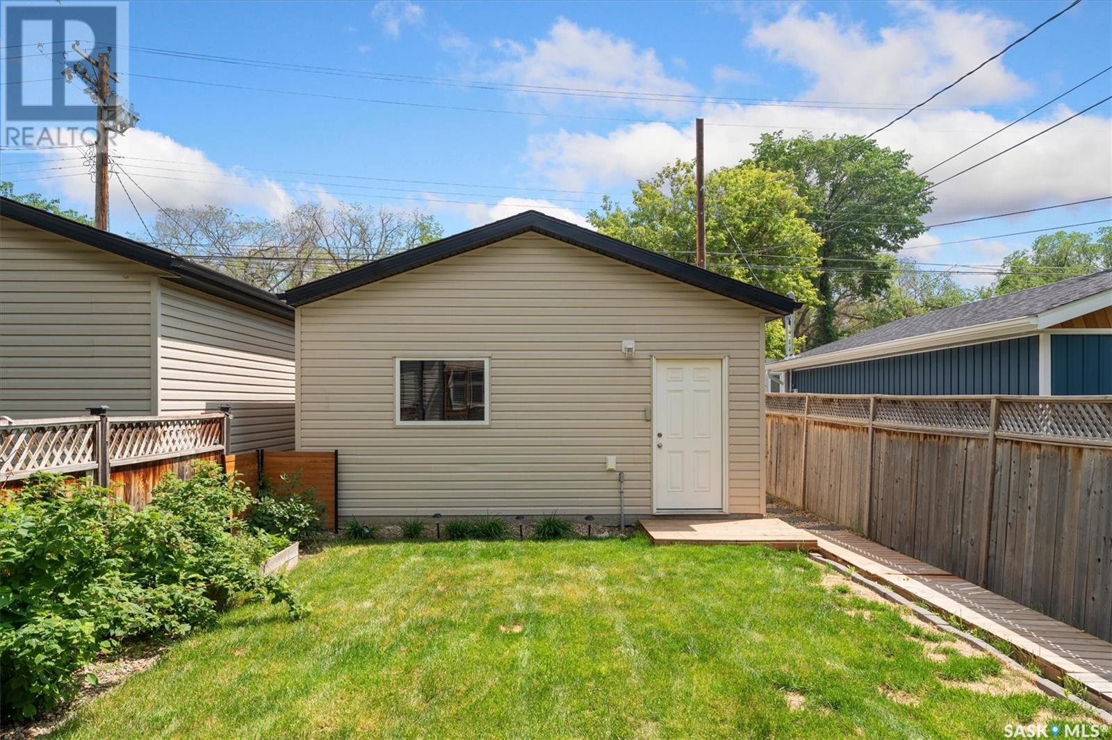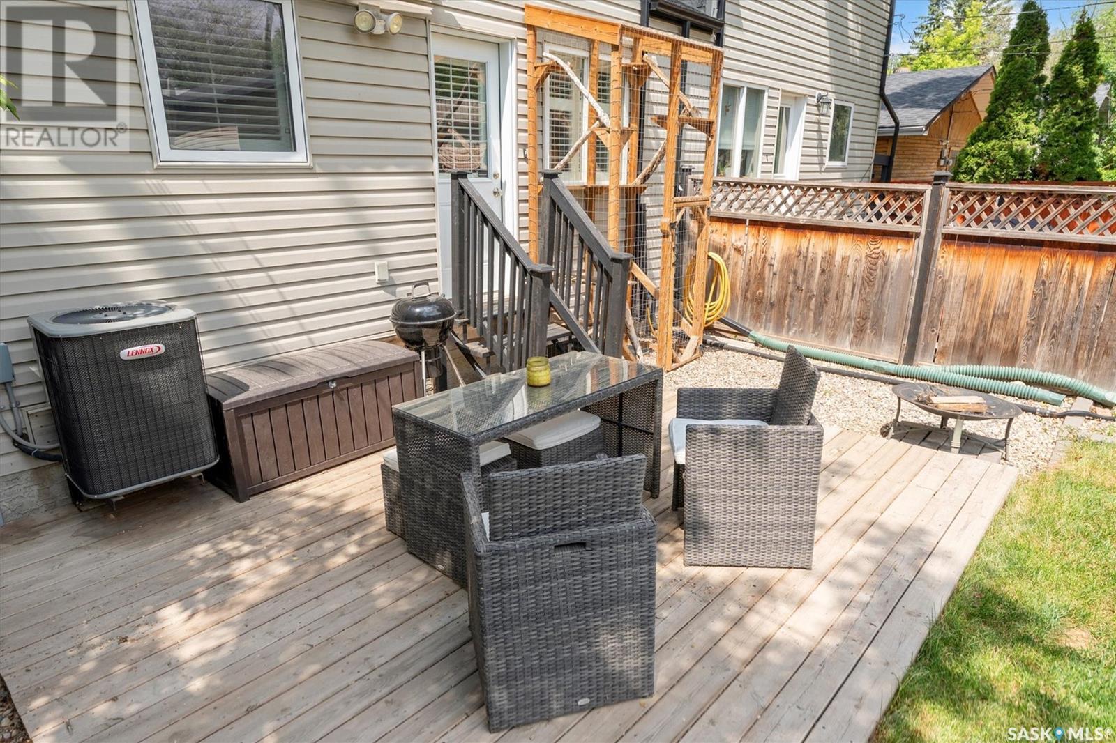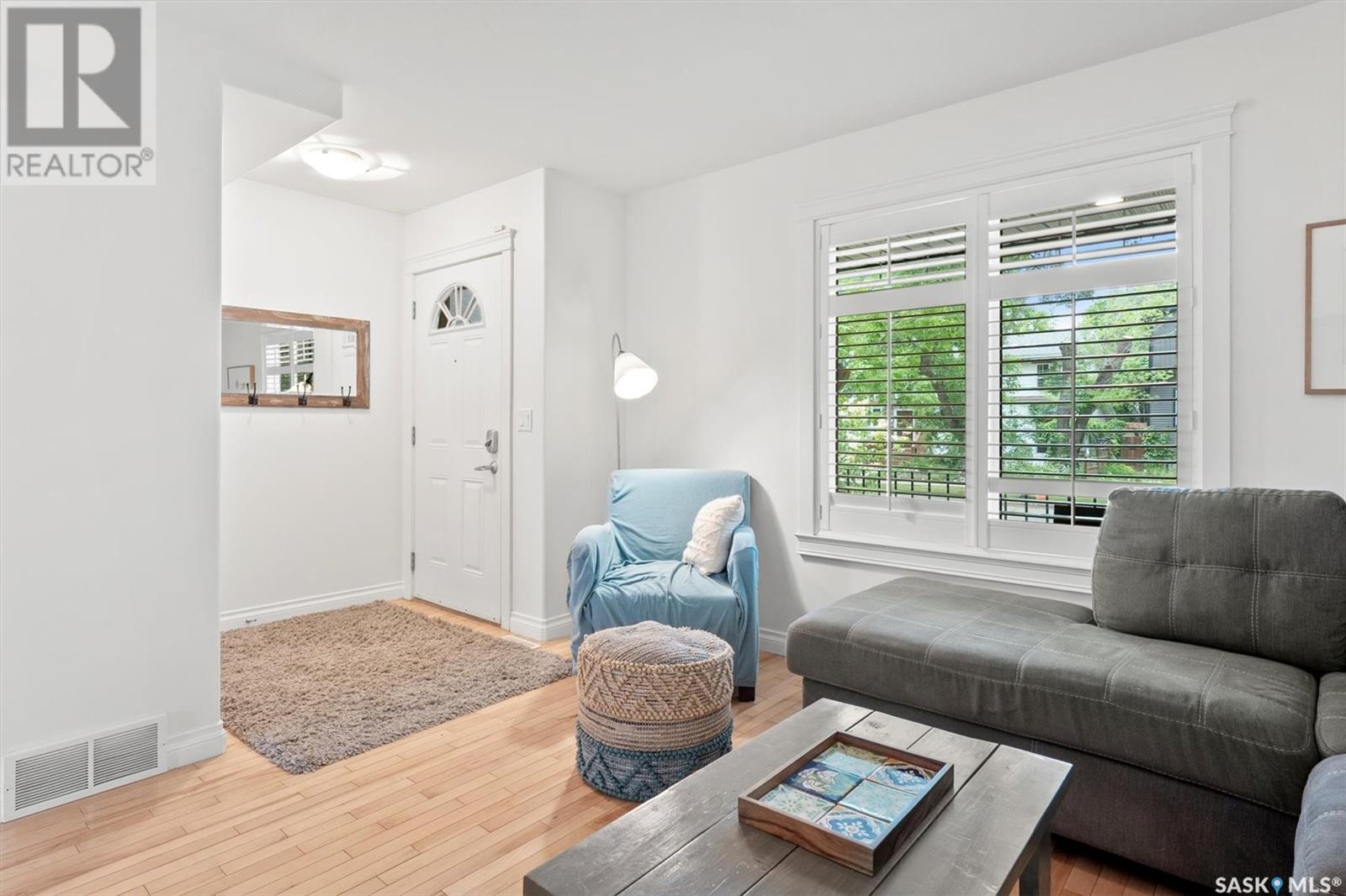 Start your day with coffee on the covered front veranda, set on a mature, tree-lined street in the heart of Buena Vista. This well-kept two-storey offers 4 bedrooms and 3 bathrooms, with recent updates and custom plantation shutters throughout. The main floor includes a front living room and foyer, a spacious kitchen with pantry, a large dining area, and a 2-piece powder room. Upstairs features three bedrooms and two full bathrooms, including a 4-piece ensuite off the primary bedroom. The basement is developed with a family room, fourth bedroom, storage areas, utility room, laundry and a rough-in for a future bathroom. The backyard is fully fenced and includes a back deck and a double detached garage. Located close to highly rated schools, 8th Street, the river, and Circle Drive, this home offers easy access to daily amenities and key routes. You’re also just a short walk or bike ride to downtown and nearby pathways. A solid home in a prime location, with clear pride of ownership throughout. (id:43042)