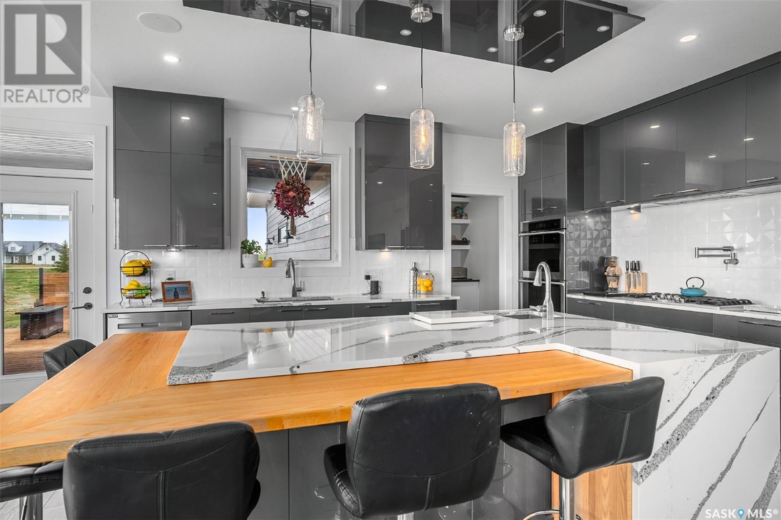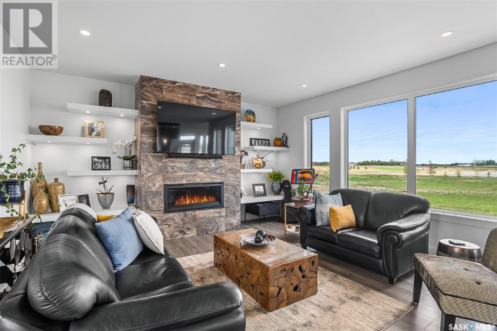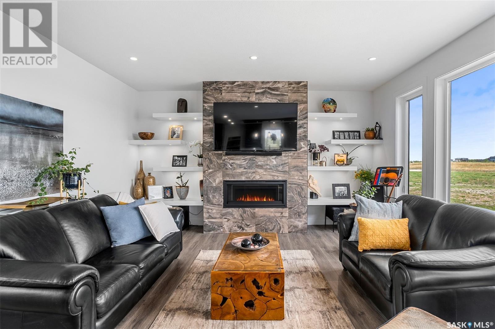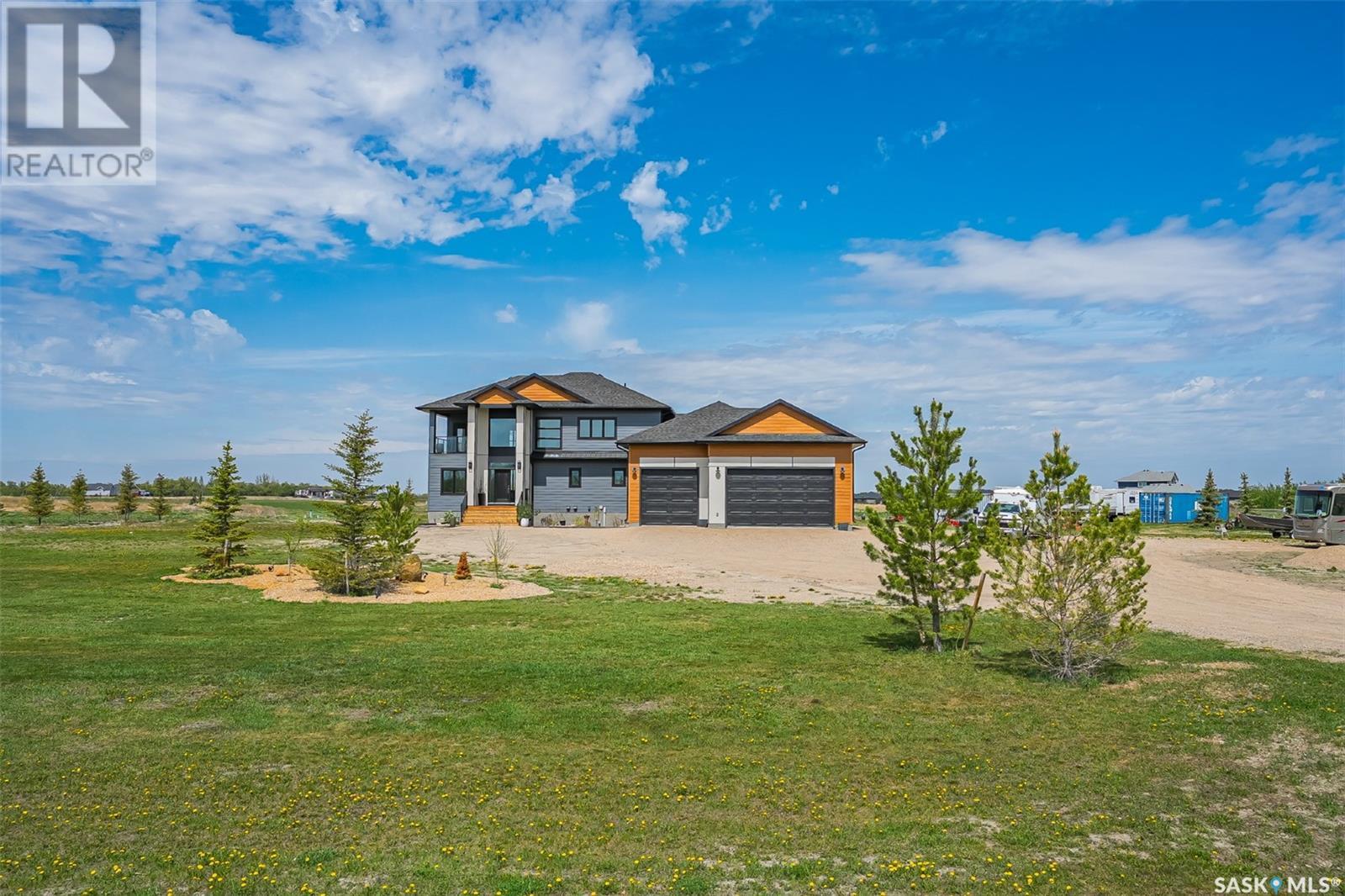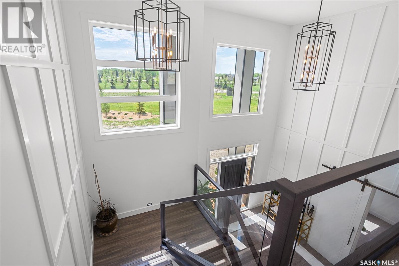 Welcome to 172 Grandview Trail, a masterpiece of modern luxury set on three acres in the prestigious Grasswood Estates. This stunning four-bedroom, four-bathroom residence offers an unparalleled blend of architectural sophistication, comfort, and functional design—including a spacious five-car attached garage for the discerning homeowner. Step inside to the heart of the home, where a sleek, contemporary kitchen awaits. Designed to impress, it features glossy cabinetry, pristine countertops, high-end stainless steel appliances, and exquisite pendant lighting—making it the perfect space for gourmet cooking and effortless entertaining. The adjacent living room radiates warmth and elegance. A striking fireplace framed by polished stone and flanked with custom built-ins sets a cozy yet refined tone. Expansive windows flood the space with natural light and provide tranquil views of the surrounding landscape. Outside, the home’s bold, modern facade combines clean architectural lines with a sophisticated mix of wood and contemporary materials. Nestled under open skies and surrounded by natural beauty, this property offers the perfect balance of grandeur and serenity. Retreat to the spa-inspired bathrooms, complete with premium fixtures, glass-enclosed showers, and luxurious finishes that elevate everyday routines. The fully developed lower level provides even more space to unwind and entertain, featuring a large family room, an inviting bar area, a private theatre room, and a gym that could also serve as a versatile fourth bedroom. Car enthusiasts and hobbyists will appreciate the five-car attached garage, offering ample room for vehicles, storage, and workspace—without compromising on style. Ideally located just minutes from city conveniences yet tucked away in a quiet, private setting, it’s a refined lifestyle (id:43042)