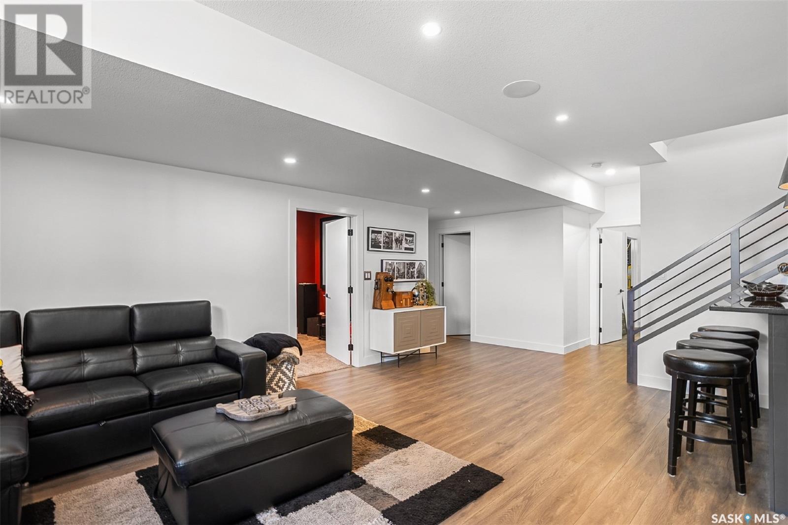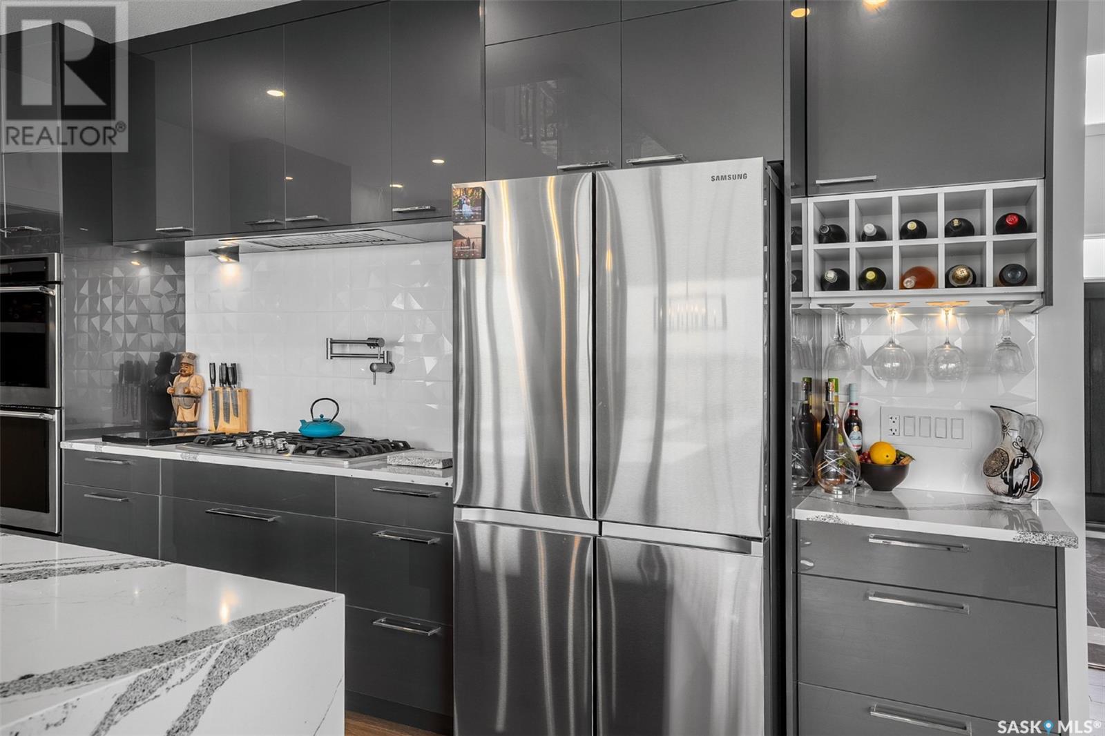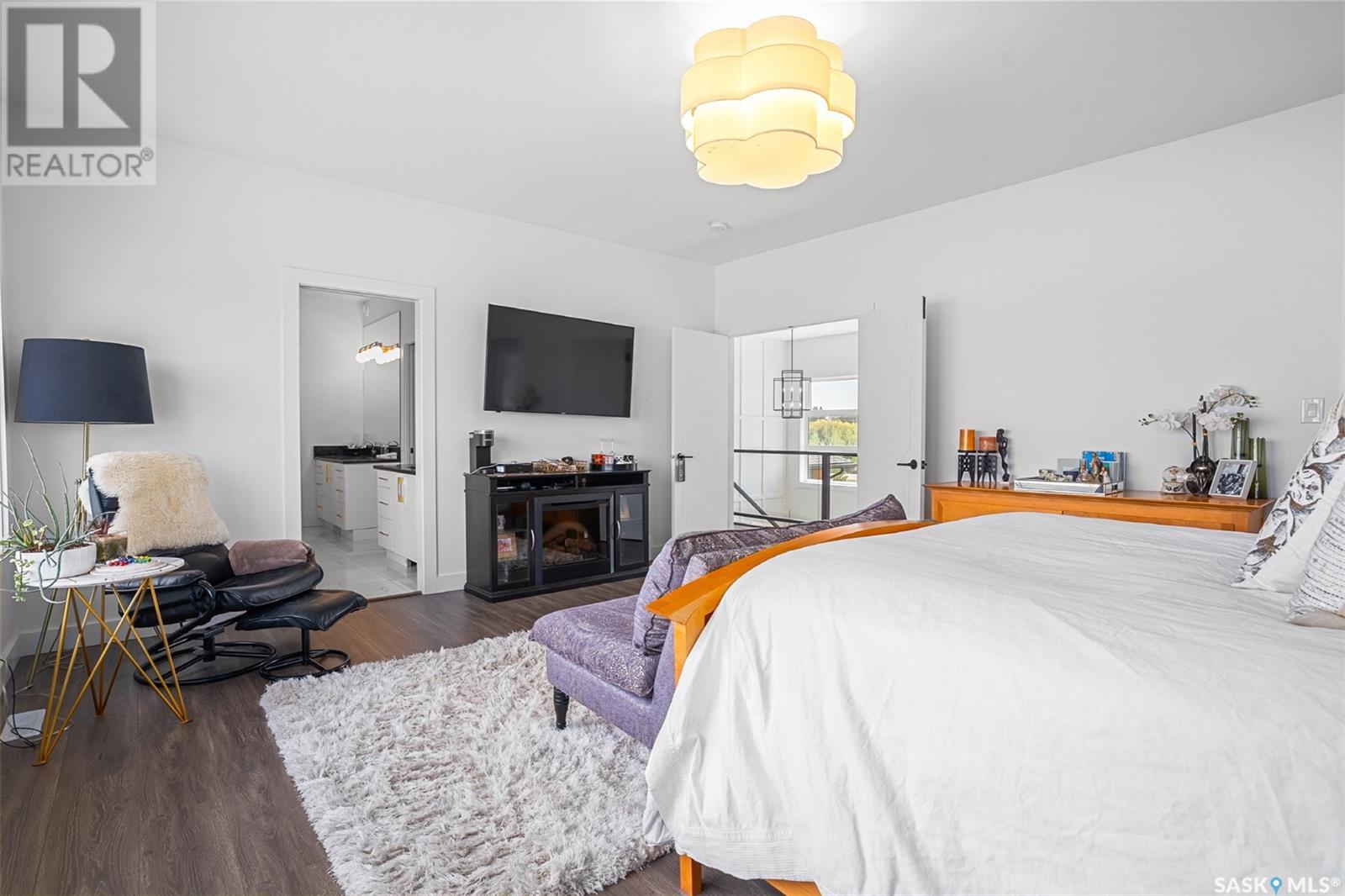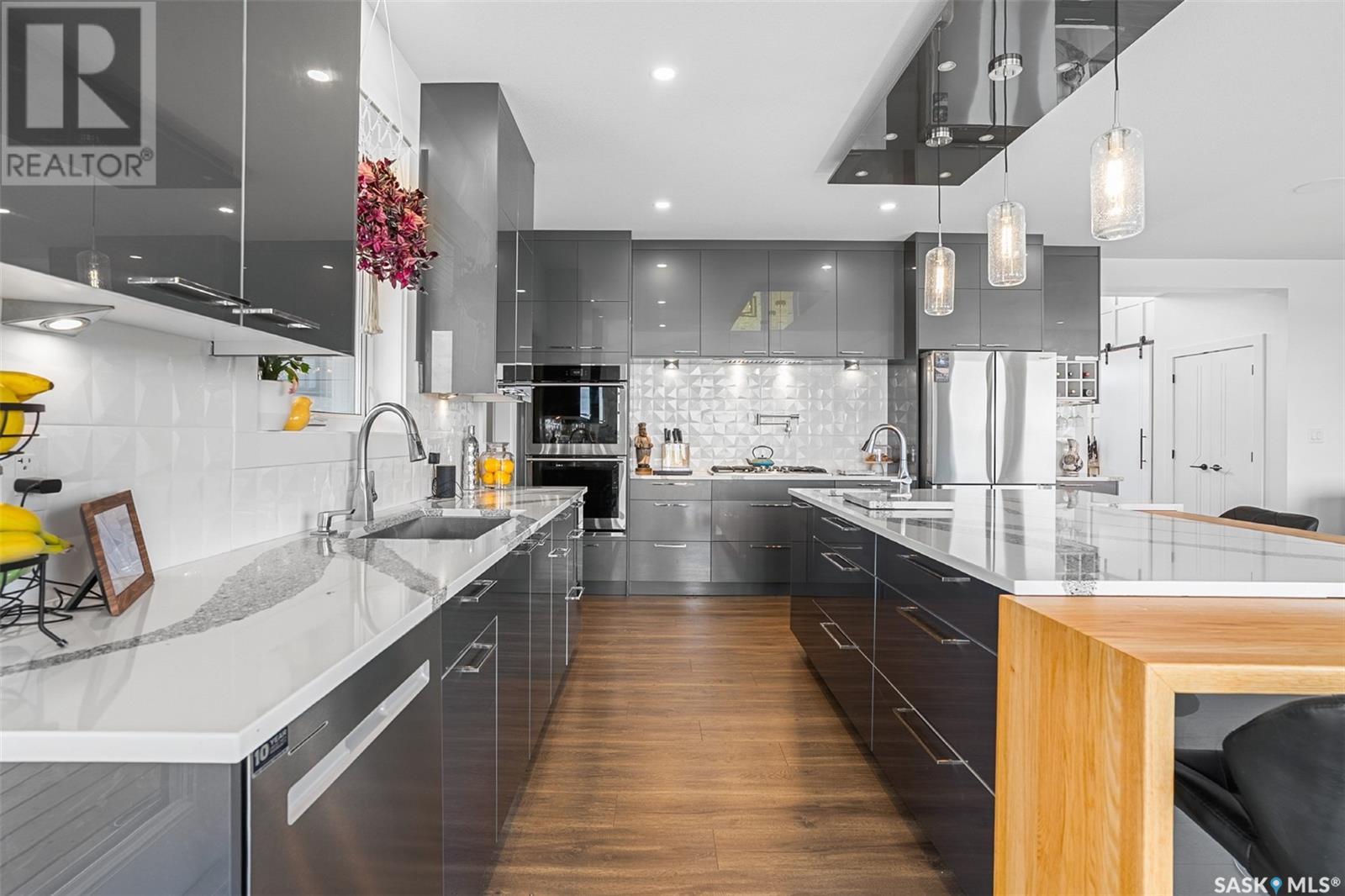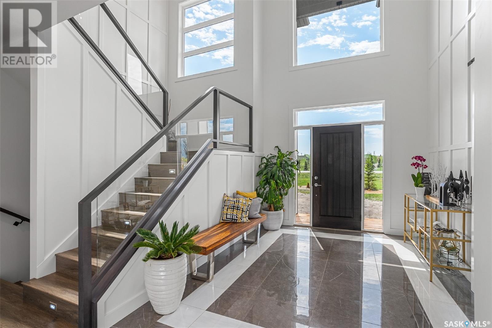 Welcome to 172 Grandview Trail, a masterpiece of modern luxury set on three acres in the prestigious Grasswood Estates. This stunning four-bedroom, four-bathroom residence offers an unparalleled blend of architectural sophistication, comfort, and functional design—including a spacious five-car attached garage for the discerning homeowner. Step inside to the heart of the home, where a sleek, contemporary kitchen awaits. Designed to impress, it features glossy cabinetry, pristine countertops, high-end stainless steel appliances, and exquisite pendant lighting—making it the perfect space for gourmet cooking and effortless entertaining. The adjacent living room radiates warmth and elegance. A striking fireplace framed by polished stone and flanked with custom built-ins sets a cozy yet refined tone. Expansive windows flood the space with natural light and provide tranquil views of the surrounding landscape. Outside, the home’s bold, modern facade combines clean architectural lines with a sophisticated mix of wood and contemporary materials. Nestled under open skies and surrounded by natural beauty, this property offers the perfect balance of grandeur and serenity. Retreat to the spa-inspired bathrooms, complete with premium fixtures, glass-enclosed showers, and luxurious finishes that elevate everyday routines. The fully developed lower level provides even more space to unwind and entertain, featuring a large family room, an inviting bar area, a private theatre room, and a gym that could also serve as a versatile fourth bedroom. Car enthusiasts and hobbyists will appreciate the five-car attached garage, offering ample room for vehicles, storage, and workspace—without compromising on style. Ideally located just minutes from city conveniences yet tucked away in a quiet, private setting, it’s a refined lifestyle (id:43042)