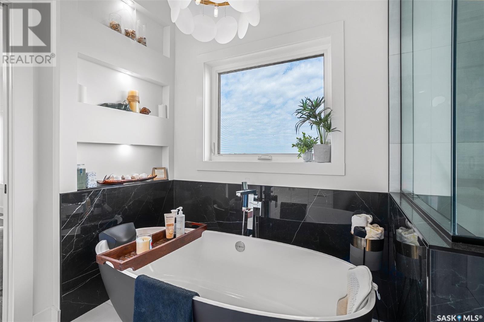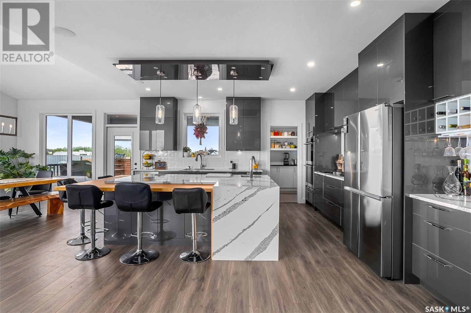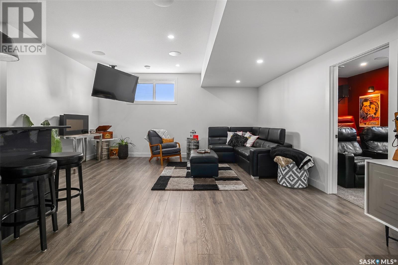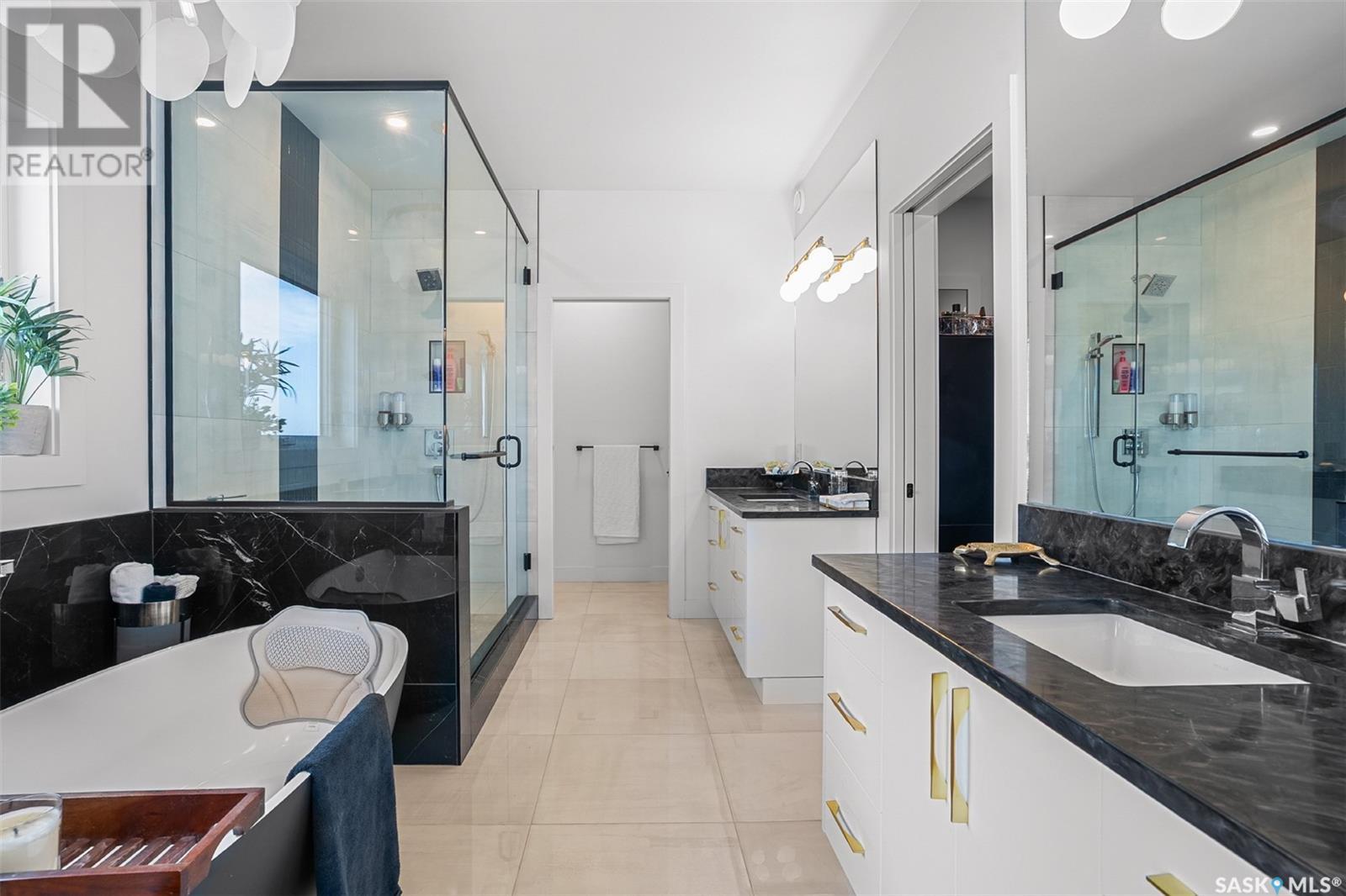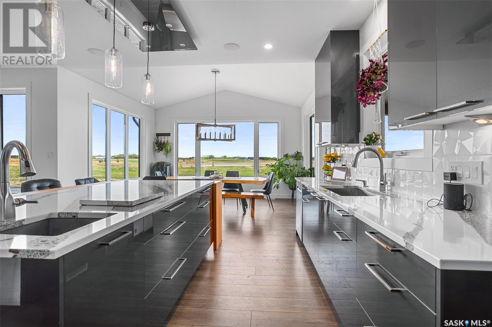 Welcome to 172 Grandview Trail, a masterpiece of modern luxury set on three acres in the prestigious Grasswood Estates. This stunning four-bedroom, four-bathroom residence offers an unparalleled blend of architectural sophistication, comfort, and functional design—including a spacious five-car attached garage for the discerning homeowner. Step inside to the heart of the home, where a sleek, contemporary kitchen awaits. Designed to impress, it features glossy cabinetry, pristine countertops, high-end stainless steel appliances, and exquisite pendant lighting—making it the perfect space for gourmet cooking and effortless entertaining. The adjacent living room radiates warmth and elegance. A striking fireplace framed by polished stone and flanked with custom built-ins sets a cozy yet refined tone. Expansive windows flood the space with natural light and provide tranquil views of the surrounding landscape. Outside, the home’s bold, modern facade combines clean architectural lines with a sophisticated mix of wood and contemporary materials. Nestled under open skies and surrounded by natural beauty, this property offers the perfect balance of grandeur and serenity. Retreat to the spa-inspired bathrooms, complete with premium fixtures, glass-enclosed showers, and luxurious finishes that elevate everyday routines. The fully developed lower level provides even more space to unwind and entertain, featuring a large family room, an inviting bar area, a private theatre room, and a gym that could also serve as a versatile fourth bedroom. Car enthusiasts and hobbyists will appreciate the five-car attached garage, offering ample room for vehicles, storage, and workspace—without compromising on style. Ideally located just minutes from city conveniences yet tucked away in a quiet, private setting, it’s a refined lifestyle (id:43042)