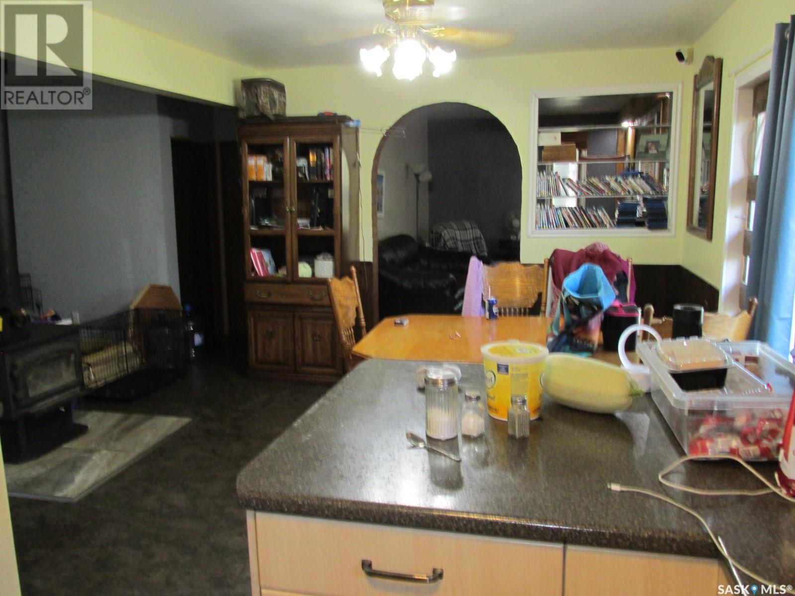 Welcome to the Moose Range Acreage! Nestled “in the woods”, only about 10 km to Carrot River, this unique property on 19.95 acres has the feel of living in the forest as it is surrounded by trees, it also has the pasture at the back. There is a shop with wood heat, garage, barn and several other outbuildings. While the original building was 1960 (as per SAMA), it was brought in and added onto and put on the foundation in 1984. When you go inside, you will enter a good size foyer. Kitchen has a great layout with plenty of storage options and a peninsula to the dining room which is open to the multi-purpose area with an inviting wood stove. The 2 bedrooms are upstairs, along with the bathroom. The basement is currently mostly storage, and laundry but could be re-developed as framing is there and plumbed in for another bathroom. The heating is a combination of electric baseboard heat and the wood stove. The yard is for nature lovers. It is well treed. There is a barn with concrete floor and the well behind it. Do you love nature and the forest feel? This might be an opportunity for you! (id:43042)