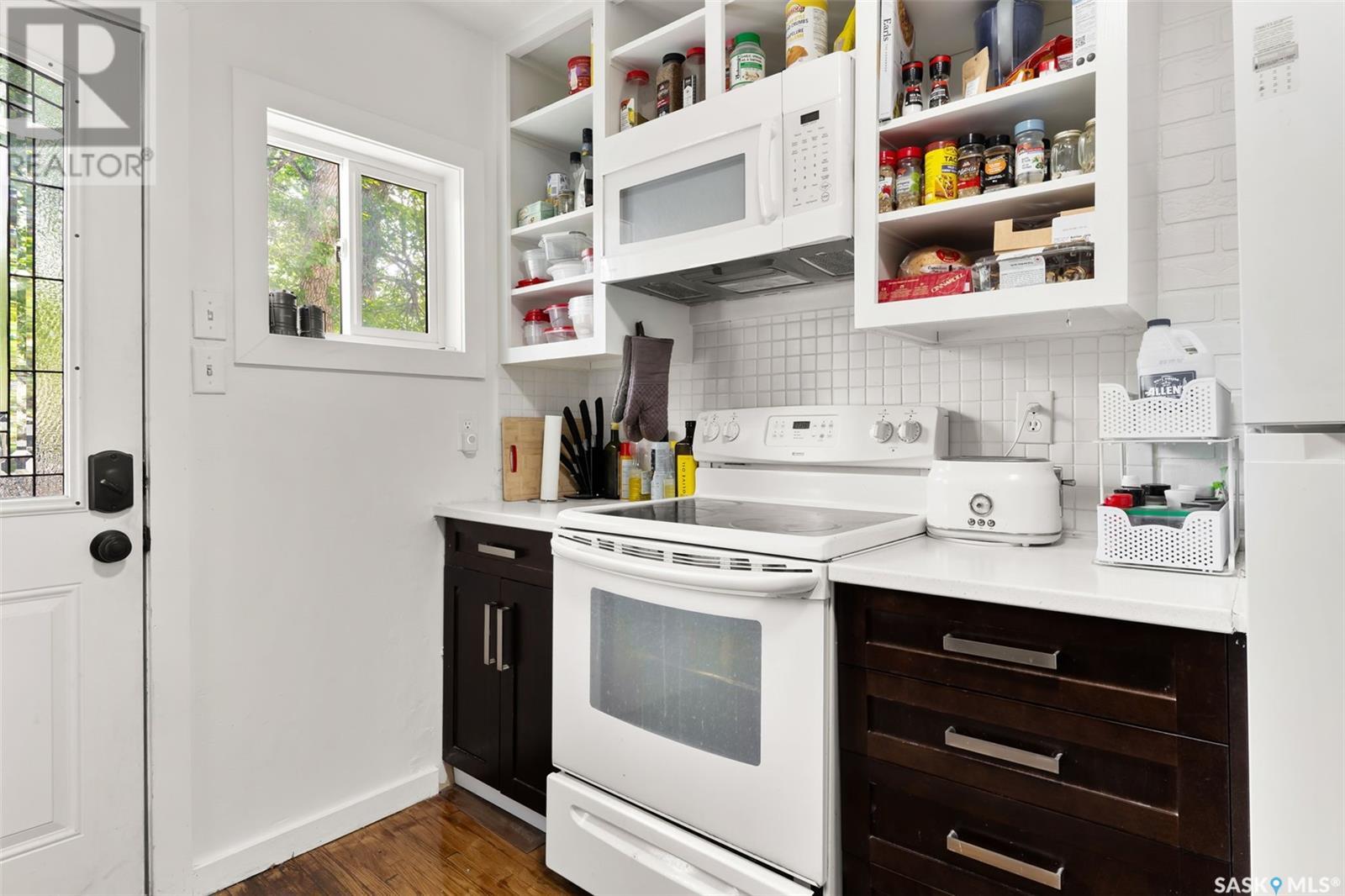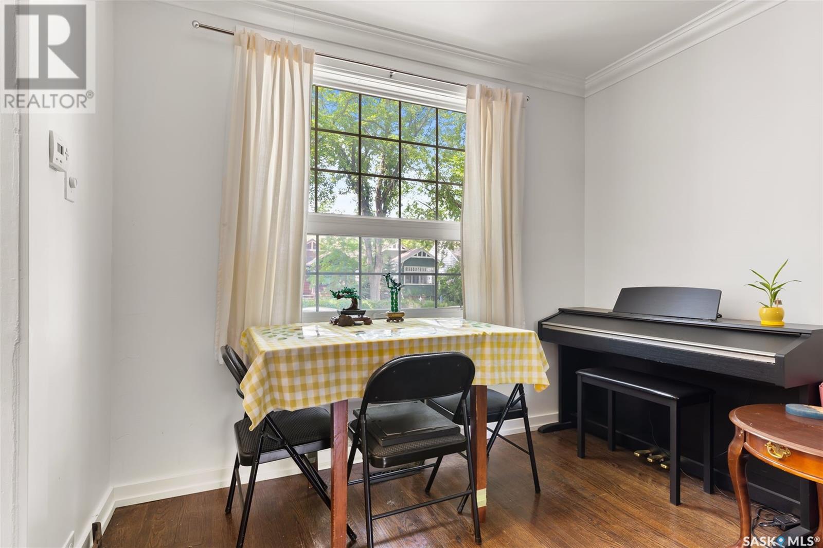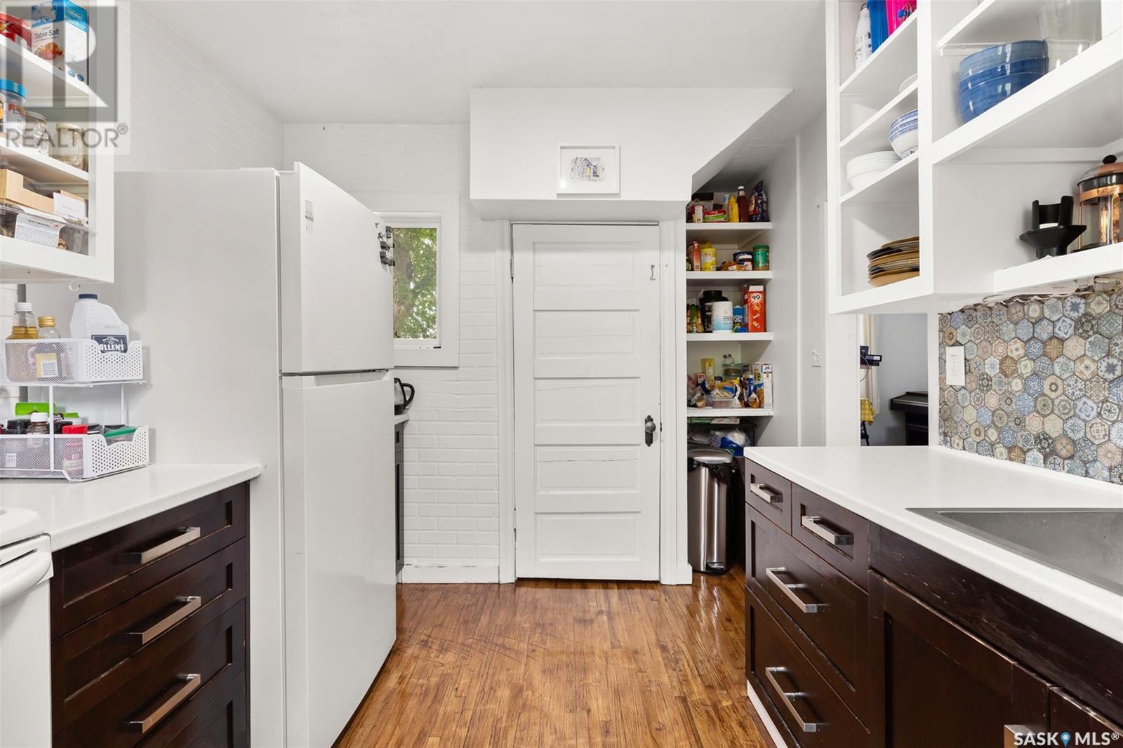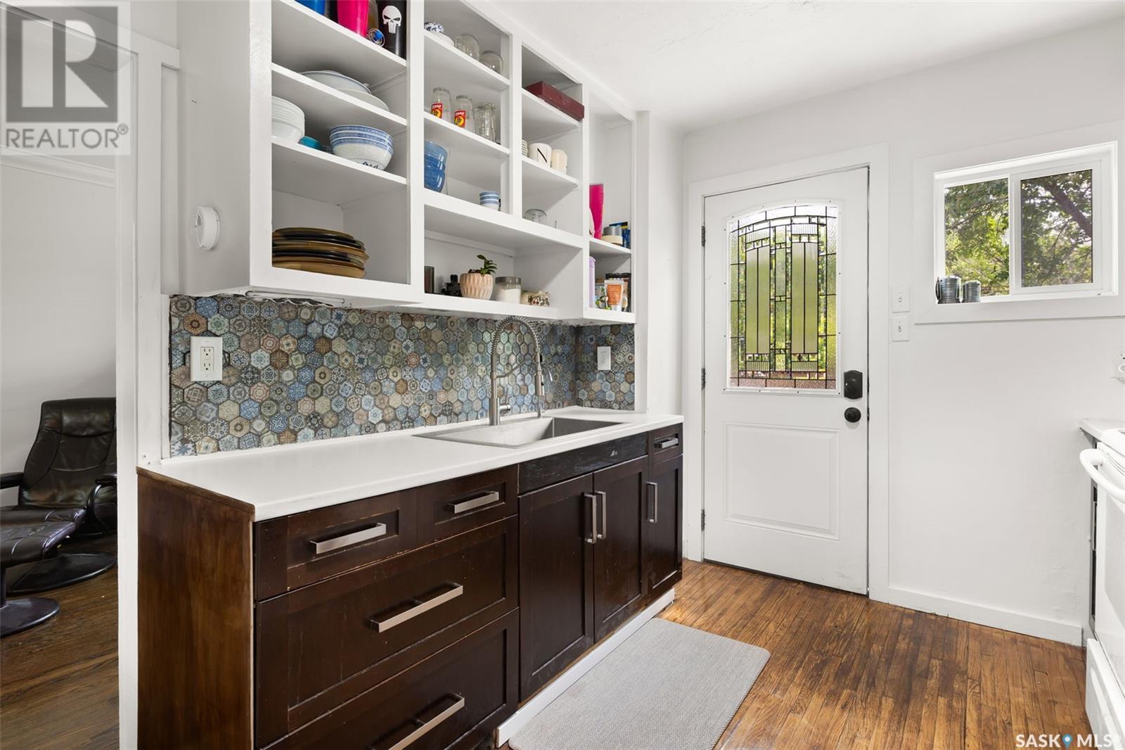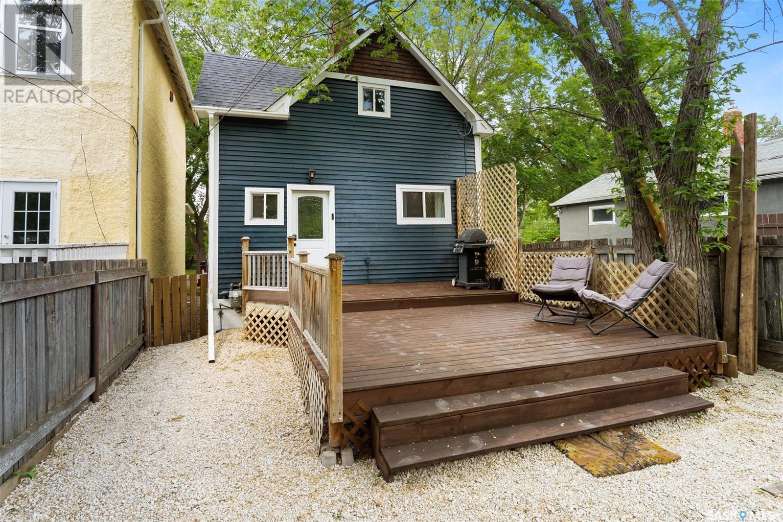 You are finally home at 1941 Montague Street in the charming neighbourhood of Cathedral. This one and a half storey, 867 sqft character home has been well maintained and cared for. Entering this home through the welcoming 3-season front porch where you can hang your coat and store your shoes, take that sigh and say, “I’m home!”. As you enter the main floor there is a staircase to the second level with an alcove next to it that is perfect for a small table to set down your keys. To the left you enter the living room and dining area. Hardwood flooring and high ceilings open this space up. Enjoy entertaining friends or unwinding in the living room. Off the dining area is the kitchen. There are open front upper cabinets and more storage than you would think. There is an attractive tile backsplash and a large stainless steel sink. Appliances are included. From the kitchen you have direct access to the 2-tiered deck and backyard. Enjoy summer nights BBQ’ing with friends and family and then gather around the firepit to roast marshmallows! The backyard is fully fenced and has a cute garden shed. A future garage would easily fit in this backyard. The exterior of the home was recently repainted; it has updated windows and brand-new shingles were installed 2025. Going back to the home, we will go to the second floor where there are two good sized bedrooms on opposite sides of the hallway and an updated 4-pce bathroom. The basement is an undeveloped space and is currently used for storage and is home to the laundry area. There is a High Efficiency Furnace, updated electrical panel, sump pump, and plenty of room for storage. Just unpack your bags and come home! (id:43042)