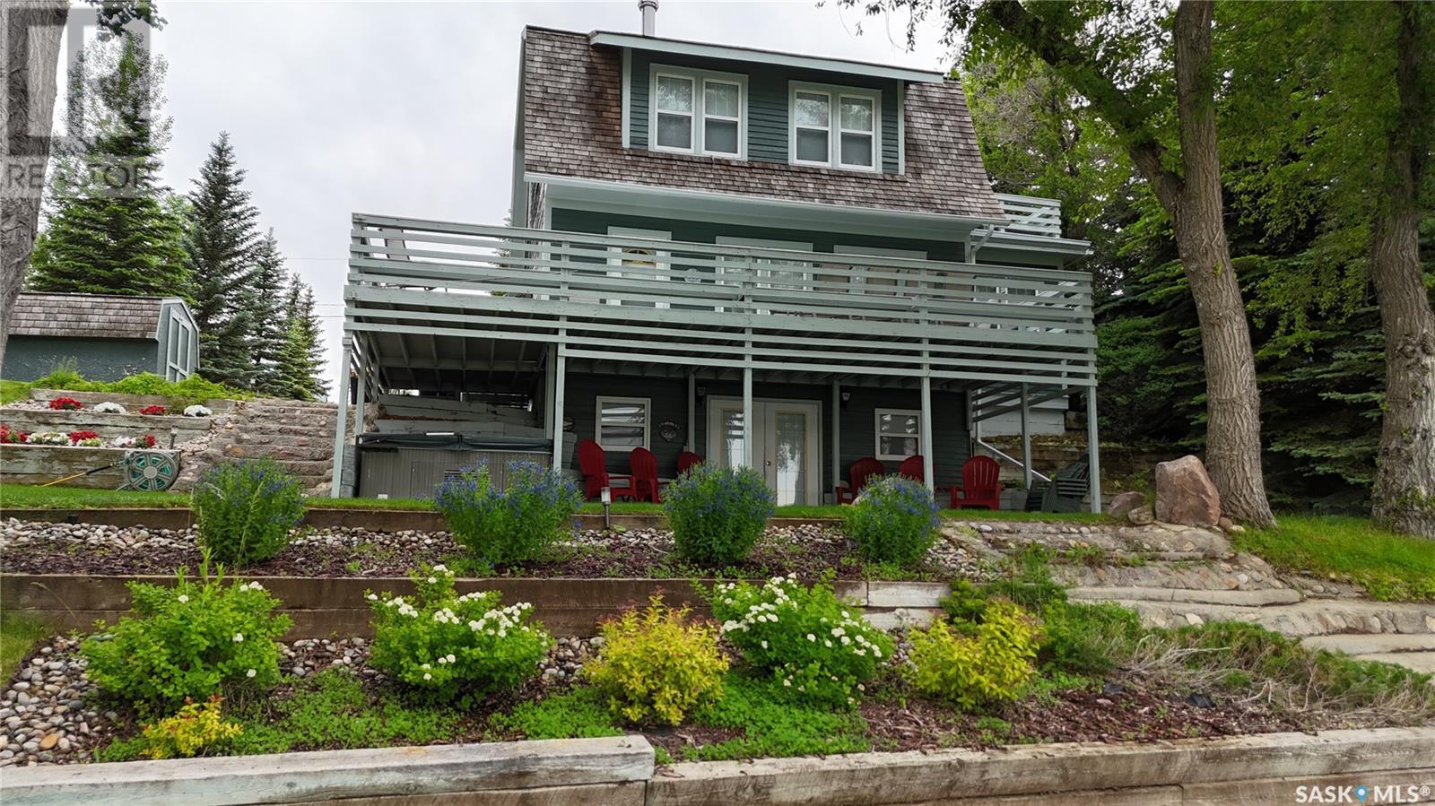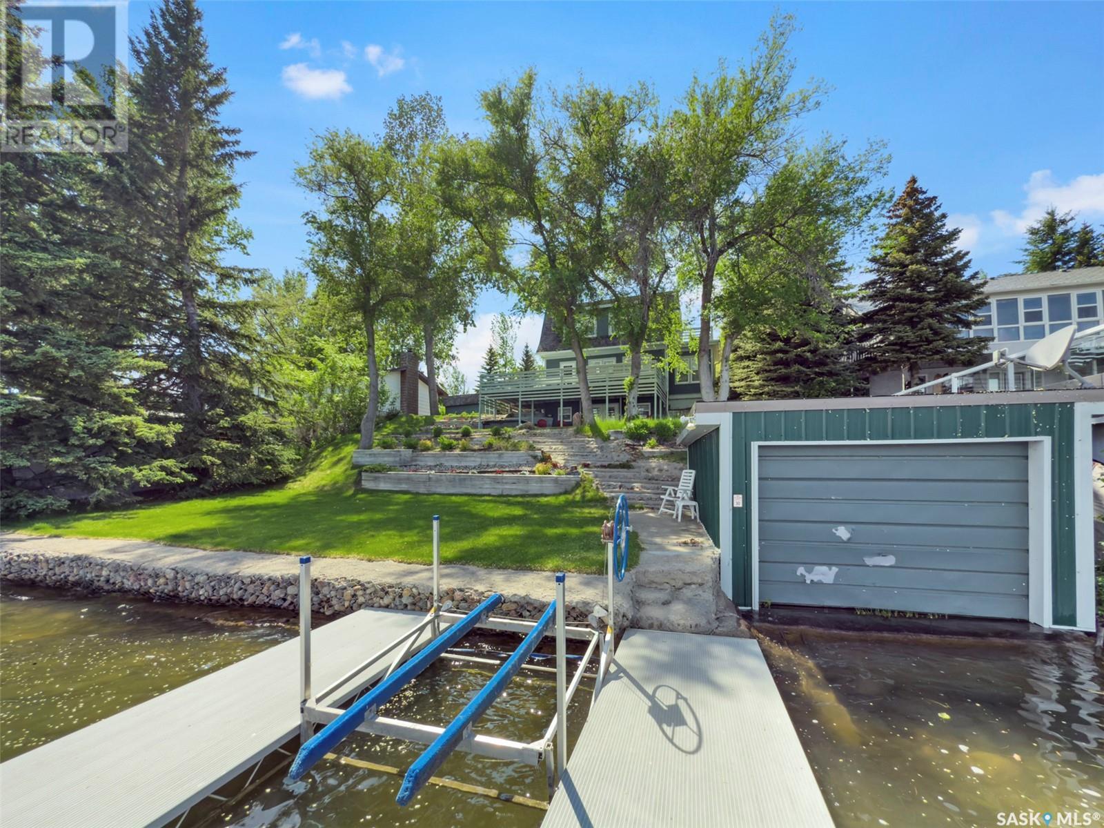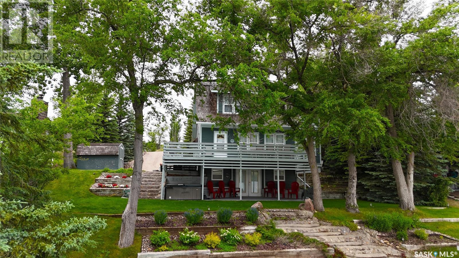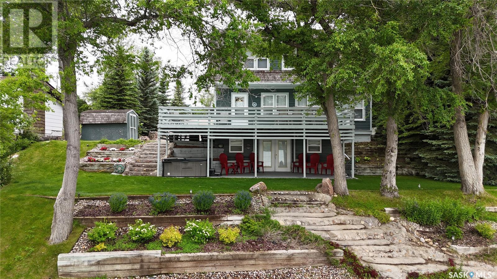 RARE OPPORTUNITY — DEEDED waterfront properties like this are nearly impossible to find! Perfectly positioned on Blanke’s Beach at Lac Pelletier SK, this expansive & private lot offers prime 4-season lakefront living. This fully updated character home preserves its timeless charm, showcasing 9’ ceilings & original hardwood floors throughout. The 2-storey walkout features a full-length upper deck & lower patio w/ hot tub—perfect for relaxing & soaking up lake life. Inside you’ll find refinished trims, updated plumbing, wiring, PVC windows & updated exterior doors. The main floor offers a spacious living room w/ east-facing lake views, sunroom w/ north windows, generous dining area, galley-style kitchen & rear mudroom. A cozy Franklin wood stove adds charm. Upstairs features 3 bedrooms incl. primary w/ private north deck & a 4pc bath w/ a classic clawfoot tub. The walkout level offers family room, 3pc bath, laundry & garden doors to the lower deck. Direct waterfront access includes boathouse, docks & a huge lawn area—ideal for gathering w/ family & friends. Whether it’s boating, fishing, swimming, or evenings by the fire, this is where lifelong lake memories are made. Private well w/ submersible pump, RO system, 1200 gal septic, underground sprinklers front, north & south w/ timers. Fully furnished minus personal items. Also available: 22’ Tahoe 230HP inboard boat & 3-seater Bombardier jet ski. Lac Pelletier offers 9-hole golf, clubhouse, restaurant, pickleball, mini-golf & year-round fun. Just 30 min SW of Swift Current — your chance to own a rare DEEDED waterfront gem & Get Your Lake On! (id:43042)
