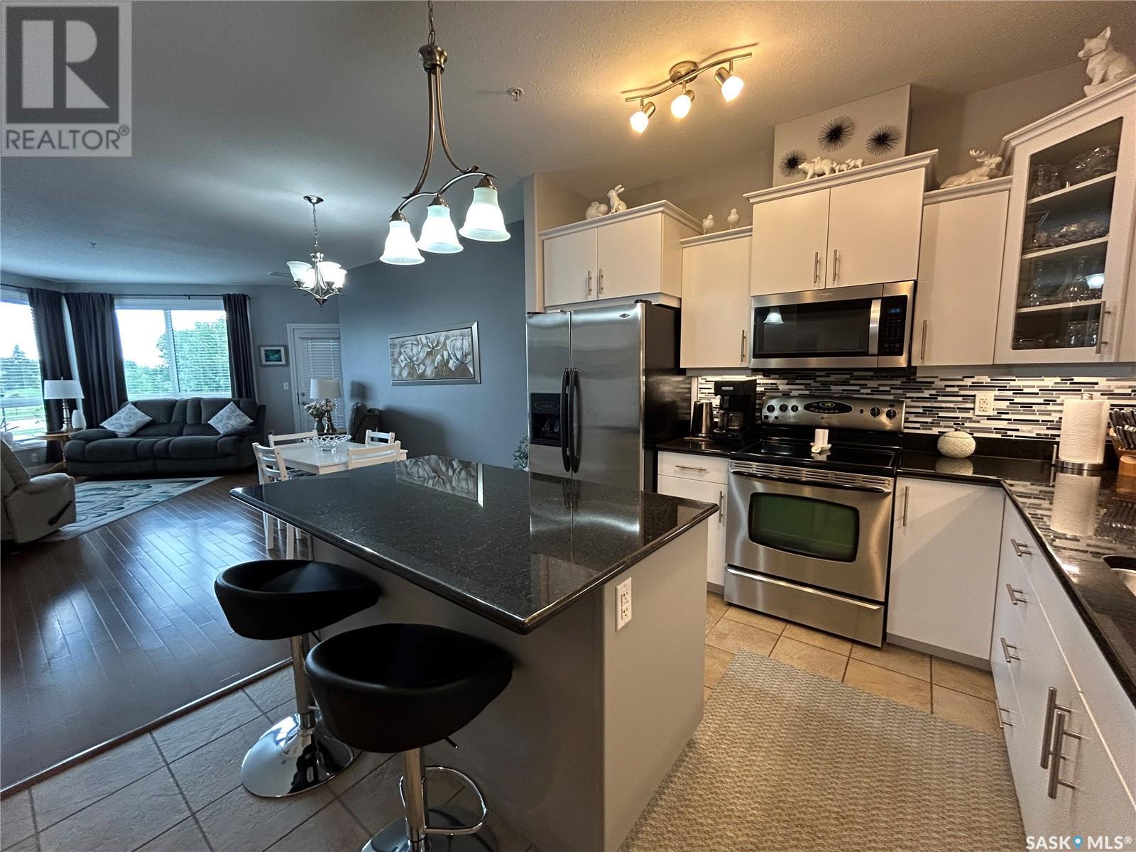 $591.17 MonthlyWelcome to this bright and beautifully maintained 1,127 SqFt condo in the highly desirable community of The Willows. Located on the second floor, this southeast facing unit offers abundant natural light and a thoughtfully designed layout. The updated kitchen features elegant granite countertops, a stylish backsplash, upgraded cabinetry, an island with seating and stainless steel appliances. The open concept design flows seamlessly into the dining and living areas. With in floor heating and central air conditioning, you’ll stay comfortable no matter the season. This unit offers two spacious bedrooms, including a primary suite with a walk-in closet and a 3 piece ensuite. Additional highlights include a large laundry room with extra storage, a private balcony with natural gas BBQ hookup, and two parking stalls, one underground and one surface. Enjoy a range of premium amenities, including an exercise room, recreation room, ample visitor parking, and a convenient car wash bay, a bonus you'll love year round. There is also a secure storage room. You'll be just steps away from the Willows Golf & Country Club, making this a perfect home for golf enthusiasts or anyone seeking a serene, upscale environment. Don’t miss your chance to own this exceptional and affordable condo in one of Saskatoon's most sought after communities. Book your private showing today! (id:43042)