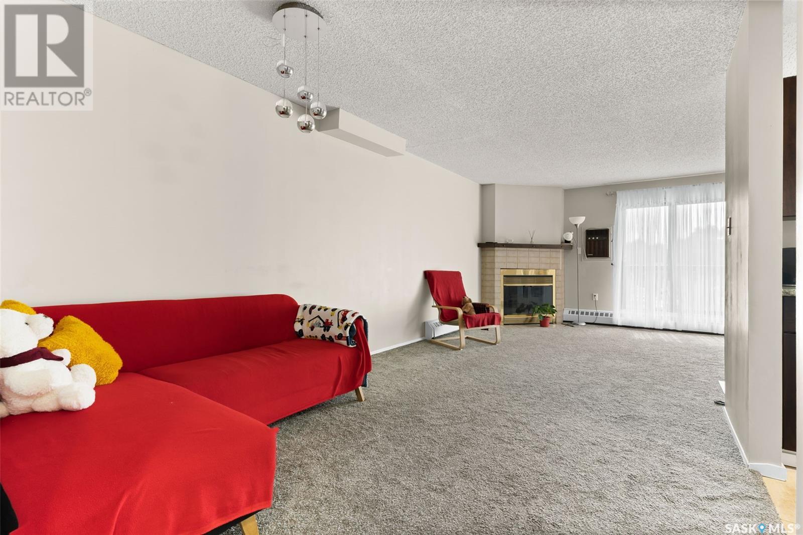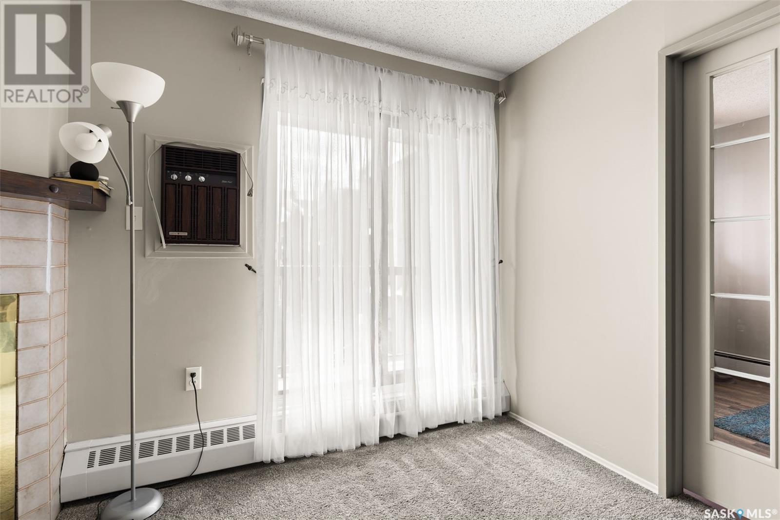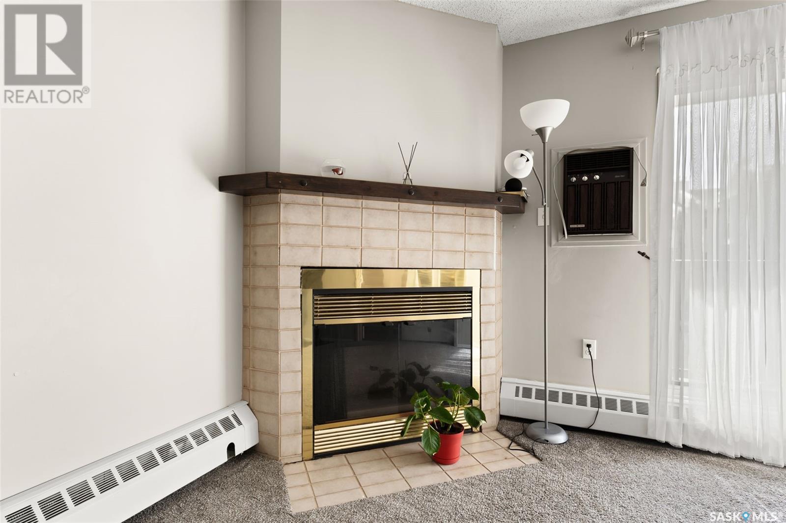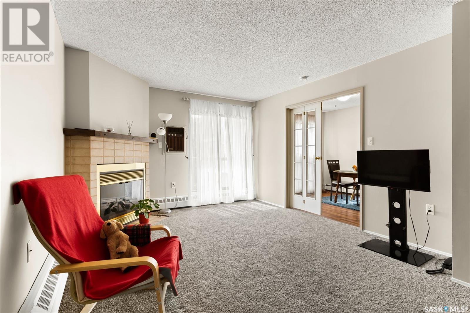 $443.53 MonthlyWelcome to 3420 Park Street, Unit #202 — a well-maintained and inviting second-floor condo tucked away in a quiet, tree-lined complex in Regina’s desirable neighborhood of University Park. This spacious 2-bedroom, 2-bathroom unit offers 980 sq ft of comfortable living space with a functional layout, and a warm, homey feel. Step inside to a bright and cozy living room with plush carpet, a charming wood fireplace, and large patio doors that lead to your private balcony — perfect for enjoying your morning coffee with views of the green space and ample parking. French doors open to a versatile dining area or den with rich laminate flooring and natural light streaming through the large window. The galley-style kitchen features dark espresso cabinetry, ceramic tile flooring, appliances included. Both bedrooms are generously sized with neutral tones and updated carpet, offering plenty of space for rest, work, or play. The full bathroom has modern fixtures and extra storage. Additional features include in-suite storage, an electrified parking stall, and wall A/C. The building is well-managed and located within walking distance to green space, transit, shopping, and easy access to the University of Regina and Arcola Avenue. Affordable, clean, and move-in ready — this condo is ideal for first-time buyers, students, or anyone looking to downsize in a great location. Don’t miss out (id:43042)
