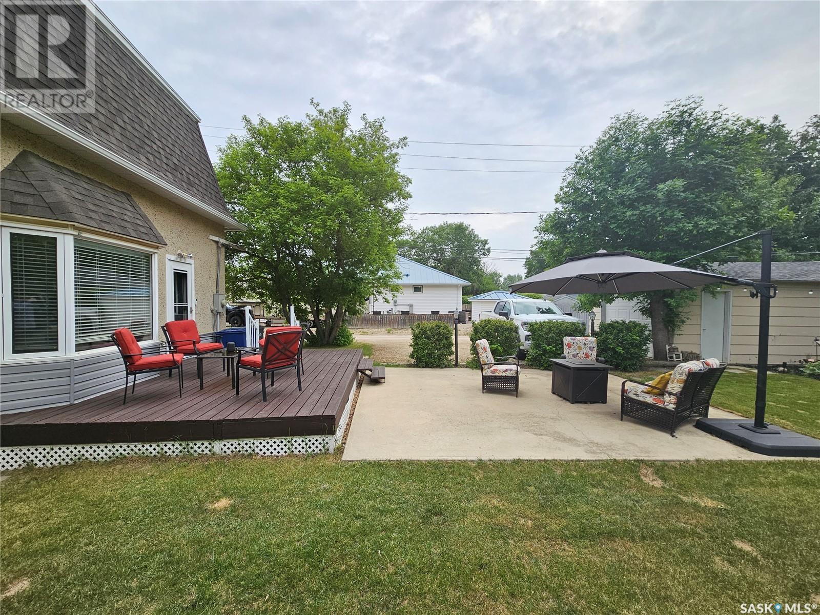 202 Souris Avenue - Carlyle - Charming Character Home with Exceptional Outdoor Space. Welcome to this well-maintained character home, full of charm and warmth! Nestled on a spacious lot, this property boasts an incredible backyard oasis complete with mature trees that provide privacy, a large private deck perfect for entertaining, and a cozy fire pit area for those relaxing evenings outside. There’s ample parking along the side of the house, as well as a fully insulated detached garage—ideal for keeping your vehicle protected or for use as a workshop. Inside, the home offers a welcoming mudroom with plenty of space for coats, boots, and outdoor gear. A unique nook with a window overlooking the backyard adds extra charm—perfect as a reading corner or plant-filled retreat. The kitchen is cute and functional, and it flows into a spacious dining room, ideal for family dinners and gatherings. A dedicated office area offers a quiet workspace, and the cozy living room is filled with natural light thanks to the many windows. Upstairs, you'll find a generous primary bedroom featuring a massive walk-in closet, as well as an additional bedroom. The 4-piece bathroom includes a relaxing soaker tub and an oversized countertop with ample space for all your essentials. The lower level adds even more living space, including a comfortable rec room (perfect for work out or a play area), a bonus room, a large utility/storage room, a dedicated laundry area, and a convenient 3-piece bathroom. This home has been lovingly cared for and is a truly unique find. If you're looking for character, comfort, and an amazing outdoor space, this one is not to be missed! (id:43042)