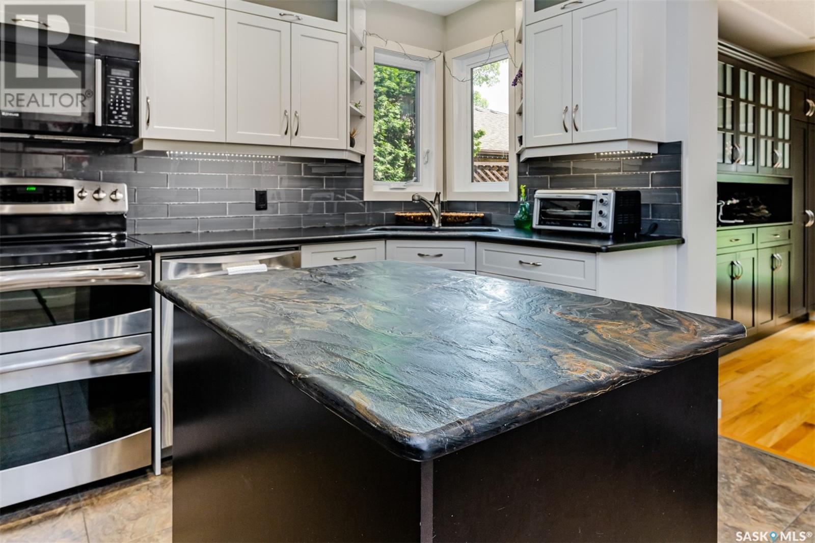 Welcome to one of Saskatoons finest condominium developments- Heritage Estates. This two story townhouse has had numerous upgrades including a stunning kitchen complete with leather looking countertops and island with gorgeous countertop. During the renovations they also added in a built in hutch in dining nook area. There is a gas fireplace in living room that compliments both dining and living room area. Garden doors off nook to rear interlocking brick patio and grassed area with the pool and clubhouse access nearby. The home offers 2 bedrooms plus a den that overlooks the main floor front entry (potentially could be a 3rd bedroom)on the 2nd floor. The Master bedroom offers 3 closets as well as a 4 piece ensuite consisting of double sinks in vanity, toilet plus a large soaker tub. The 2nd bedrooms is also a good size with double closet. The main floor also offers a 2 piece bath/laundry combination room. This home has had numerous upgrades including the triple pane LowE argon PVC windows and a recently installed water heater. The double attached garage is finished and offers direct entry (inside dimensions are 23' deep by 20' wide). The lower level has approx 9' high ceilings and is open for your own personal development. Condo fees are set at $578/month (Professionally managed) which includes common insurance & maintenance, snow removal for driveway and sidewalk and roadway within complex, lawn care, garbage & reserve fund. This development has recently had all roofs within the redone. Not only will you appreciate the luxury living space, you can immerse yourself into the community offered within this long standing condo complex. They have a variety of weekly events with a Thursday Happy hour, pickle ball, coffee gatherings and plenty of card games. You will be able to enjoy the outdoor pool, and recreation center and tennis courts that also serve as pickle ball courts. Taxes for 2024 $4111. For more information on this outstanding home contact your agent to view. (id:43042)