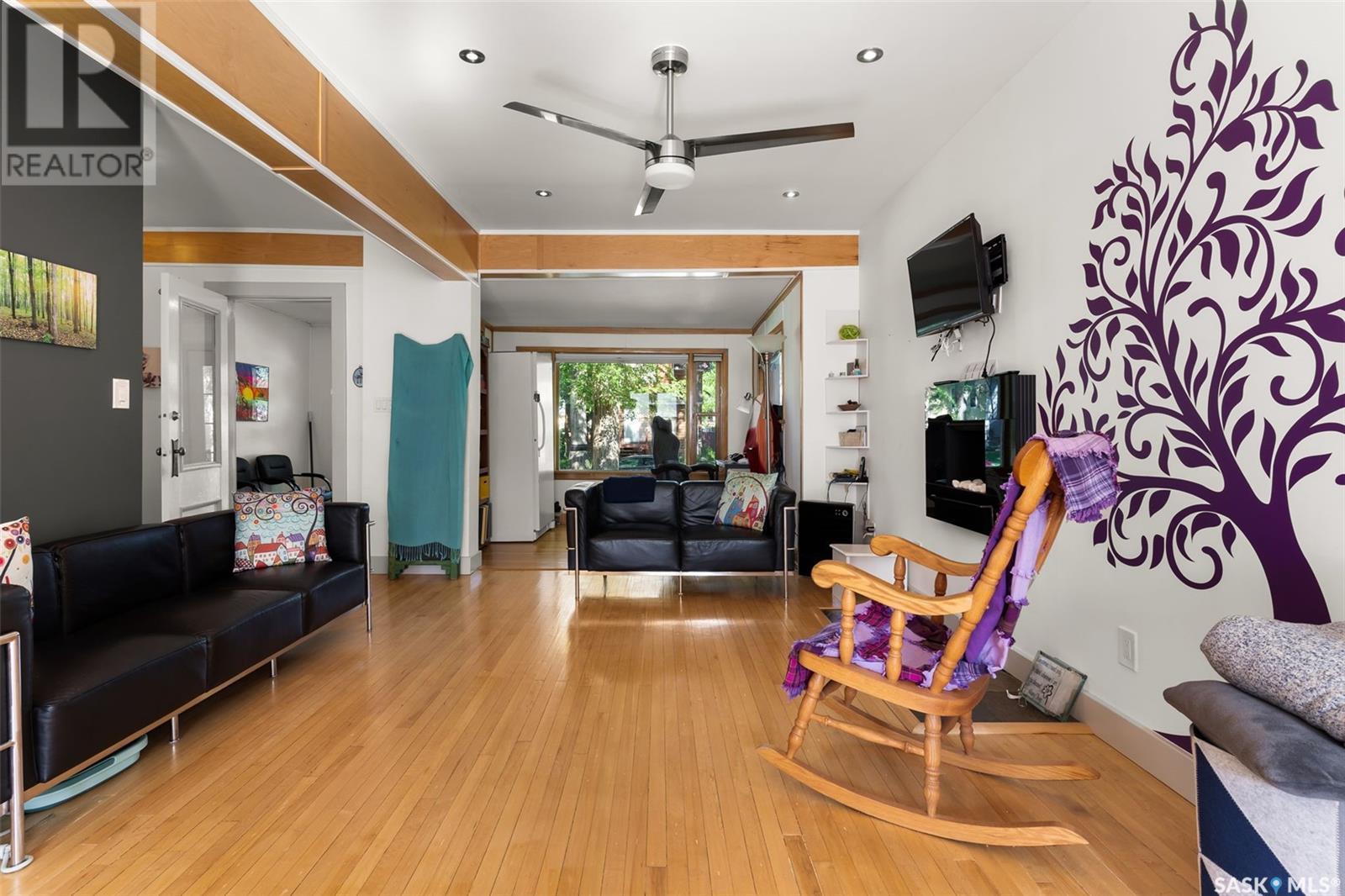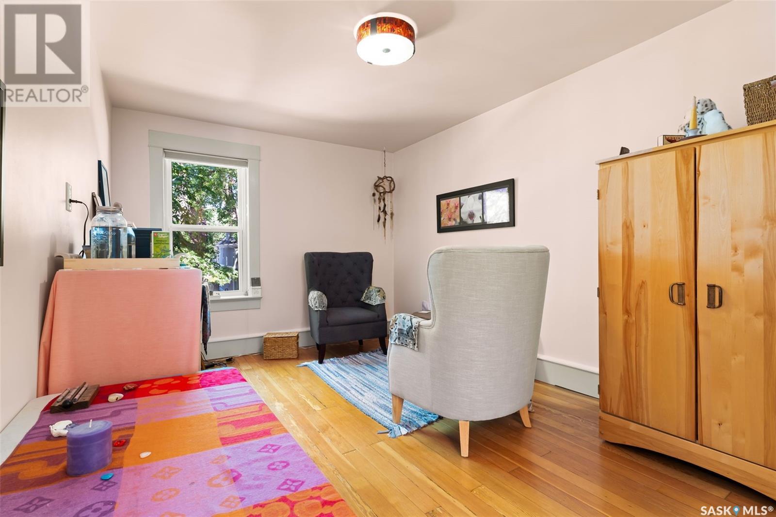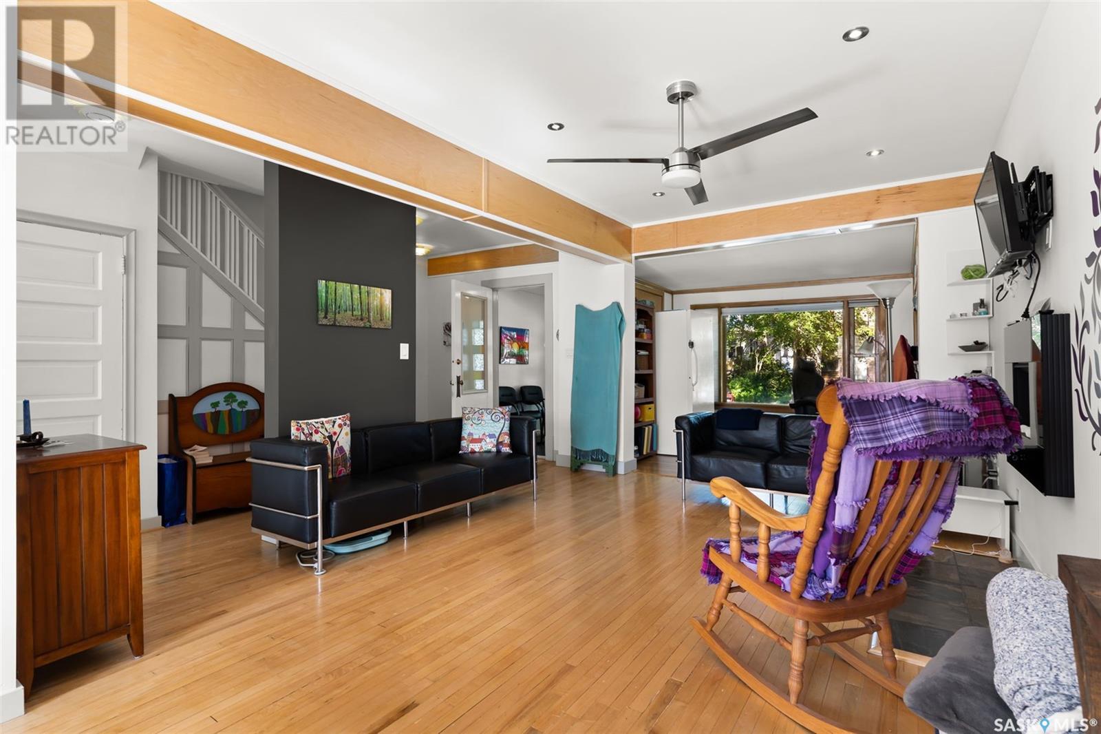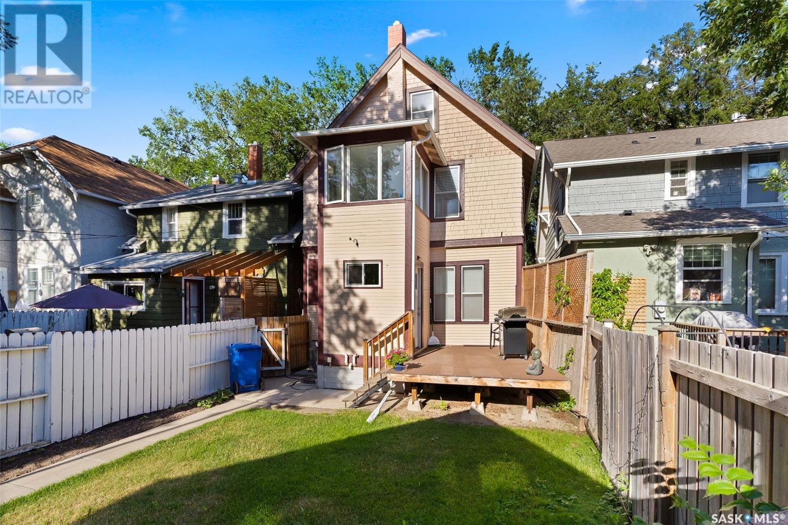 Welcome to this beautifully maintained 4-bedroom, 2-bathroom character home in Regina’s vibrant Cathedral neighbourhood—just steps from 13th Avenue’s iconic shops and cafés and around the corner from Connaught Elementary School. Step inside through the unique front entry featuring coloured glass block and into a space where refinished hardwood floors (2017) and natural light create a warm, inviting atmosphere. The open-concept main floor allows sunlight to pour in from both the east and west, filling the spacious living and dining areas. Thoughtfully updated lighting and finishes complement the original charm, creating a beautiful contrast throughout. The chef-inspired kitchen is both stylish and practical, featuring granite counter tops, stainless steel appliances, a gas range, and new kitchen flooring (2025). It’s a space where form meets function! The second level hosts two spacious bedrooms, including the primary with a private 2-piece ensuite. You’ll also find a stunning 4-piece bathroom with standout tile work, a generously sized laundry room, and a rare serene sunroom perfect for relaxing, reading, or recharging. The third level has two more bedrooms—ideal for children, guests, or creative workspaces. Outside, enjoy your private backyard retreat featuring a low-maintenance Trex deck (2020), beautifully landscaped yard, a single detached garage with power (2018), and an additional parking pad. Extensive updates over the years provide peace of mind and added comfort: New furnace, spray-foamed front and back porch undersides, and teleposts installed (2018) New deck and shingles on the south side of the house (2020). Central air conditioning, garage painted (2021). Back of the house painted (2022). Shingles on south side of garage and front overhang of house, plus freshly painted front and side window trim (2024). A perfect blend of character, charm, and thoughtful upgrades in one of Regina’s most beloved neighbourhoods—this is Cathedral living at its finest. (id:43042)