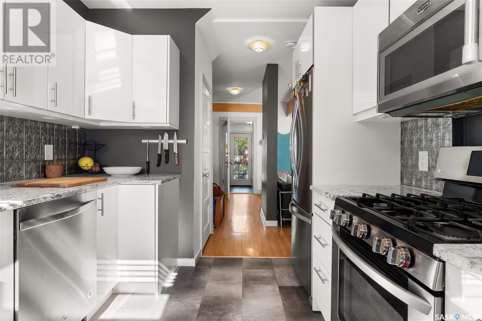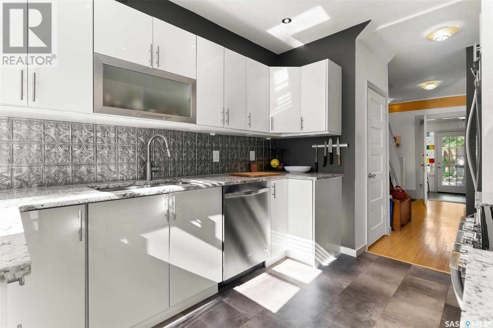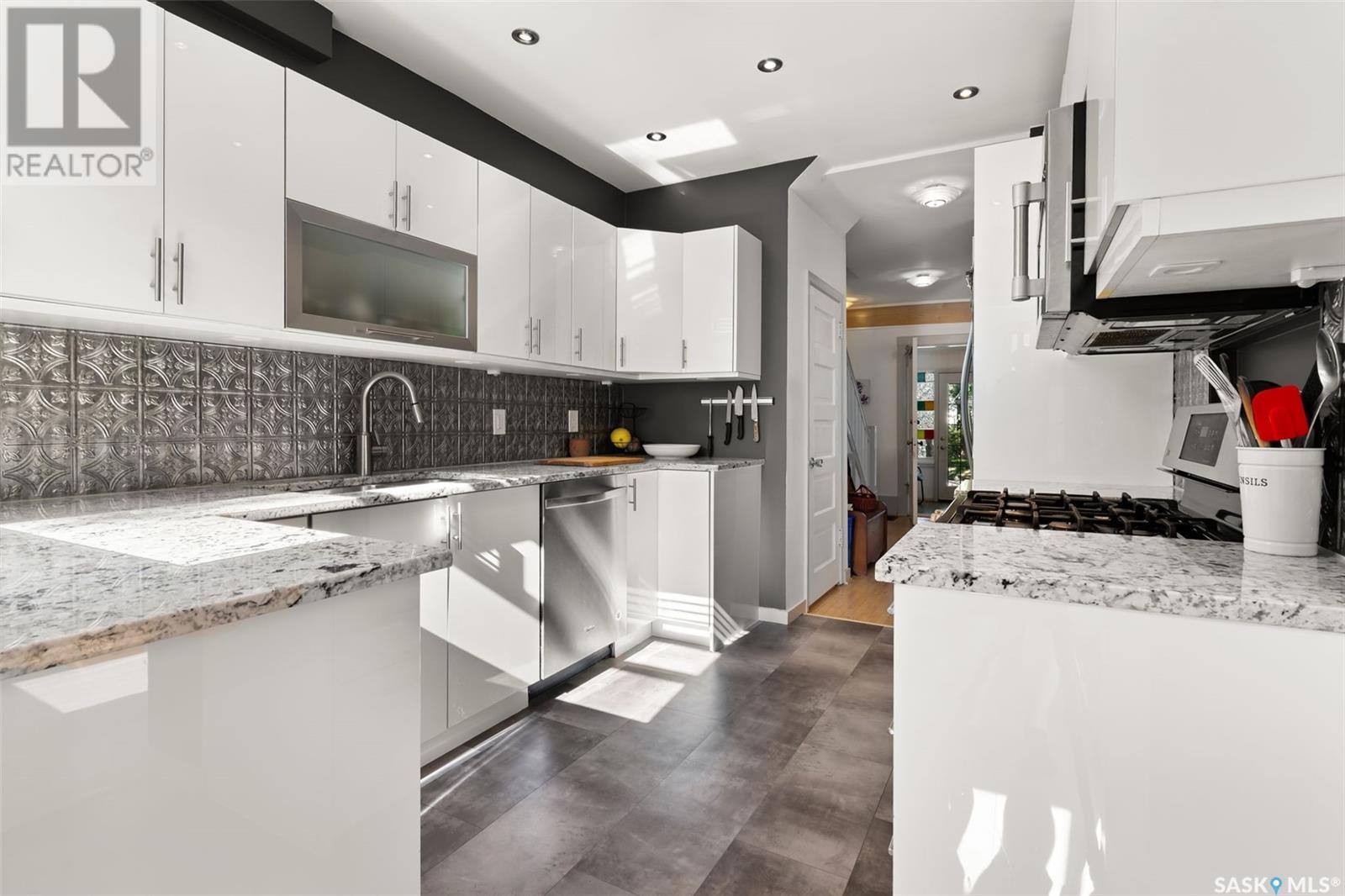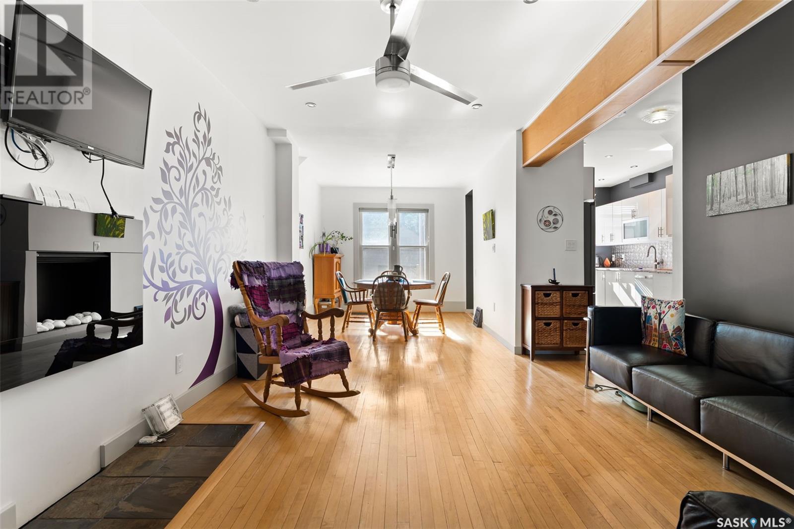 Welcome to this beautifully maintained 4-bedroom, 2-bathroom character home in Regina’s vibrant Cathedral neighbourhood—just steps from 13th Avenue’s iconic shops and cafés and around the corner from Connaught Elementary School. Step inside through the unique front entry featuring coloured glass block and into a space where refinished hardwood floors (2017) and natural light create a warm, inviting atmosphere. The open-concept main floor allows sunlight to pour in from both the east and west, filling the spacious living and dining areas. Thoughtfully updated lighting and finishes complement the original charm, creating a beautiful contrast throughout. The chef-inspired kitchen is both stylish and practical, featuring granite counter tops, stainless steel appliances, a gas range, and new kitchen flooring (2025). It’s a space where form meets function! The second level hosts two spacious bedrooms, including the primary with a private 2-piece ensuite. You’ll also find a stunning 4-piece bathroom with standout tile work, a generously sized laundry room, and a rare serene sunroom perfect for relaxing, reading, or recharging. The third level has two more bedrooms—ideal for children, guests, or creative workspaces. Outside, enjoy your private backyard retreat featuring a low-maintenance Trex deck (2020), beautifully landscaped yard, a single detached garage with power (2018), and an additional parking pad. Extensive updates over the years provide peace of mind and added comfort: New furnace, spray-foamed front and back porch undersides, and teleposts installed (2018) New deck and shingles on the south side of the house (2020). Central air conditioning, garage painted (2021). Back of the house painted (2022). Shingles on south side of garage and front overhang of house, plus freshly painted front and side window trim (2024). A perfect blend of character, charm, and thoughtful upgrades in one of Regina’s most beloved neighbourhoods—this is Cathedral living at its finest. (id:43042)