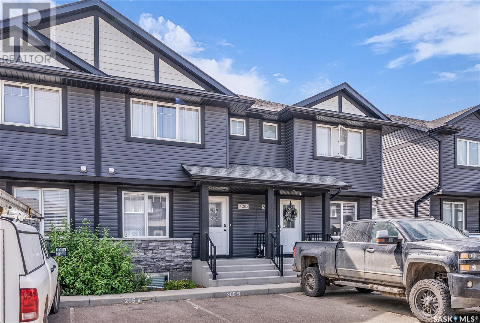 1st Time buyers!! Investors!! Welcome to this beautiful townhouse at 205 - 171 Beaudry Cres, Located in the popular Lake Vista neighborhood of Martensville, this home features 2 Master Bedrooms and each has their own 4 piece en suite! The kitchen features granite countertops, classy subway tile backsplash, stainless steel appliances and direct access to the West exposed deck. A barn wood feature wall gives the living room a rustic chic & cozy feel. The basement is open for development and could easily accommodate another bedroom and bathroom. Other features include 2 electrified parking stalls, second floor laundry & central air. Don't miss out! (id:43042)