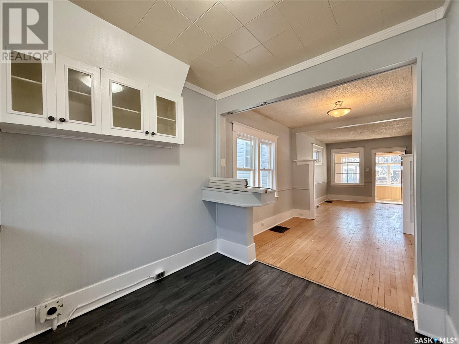 Located in trendy Cathedral this cute and cozy 2 bedroom bungalow is move-in-ready. Fresh paint throughout in modern tones and full of character. Enter into the front porch which acts as a sunny 3-season room. Original hardwood flooring in the main area along with bedrooms adds to the original charm. Large windows bring in the natural sunlight all day long. Open main living area contributes to a perfect family atmosphere. The living room is at the front of the house with enough room for the entire family. A partial wall slightly separates the living room and dining room to give each their distinct space. The kitchen has white cabinetry with open upper shelving to show off your dishes. Large deep stainless steel sink under the window looking out to the backyard. Plenty of counter space with dark laminate counters and contrasting white backsplash. Main hall has 2 good sized bedrooms and a 4-piece bathroom. Bathroom continues the old character look with a clawfoot tub and pedestal sink. Lower level is dry and clean and offers laundry and lots of storage. Super cute back yard has a small patio for summertime BBQ’s or getting lost in a book. Grass area for kids play area or pets. Single detached garage with parking spot to one side. Within walking distance to downtown or Wascana Park. The bike path is 3 blocks away that will take you across Regina. Cathedral is Regina’s downtown trendy area that has stores and restaurants along with many shops. Once a year the Cathedral Village Arts Festival attracts many people for food, music, theatre, dance and much more. Elementary school is within walking distance with high school not much farther away. University of Regina and Saskatchewan Polytechnic are a short drive. Don’t miss this cute house. (id:43042)