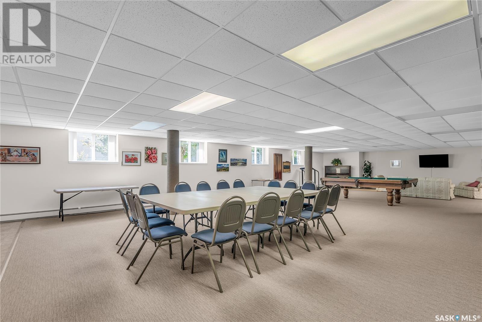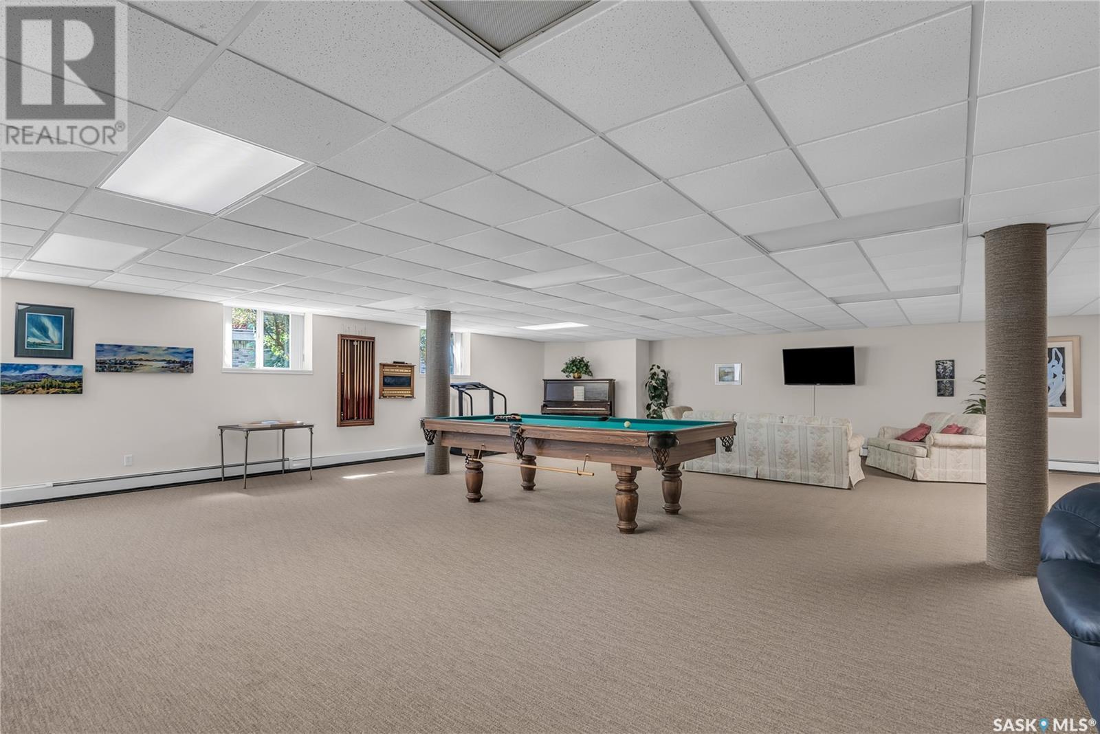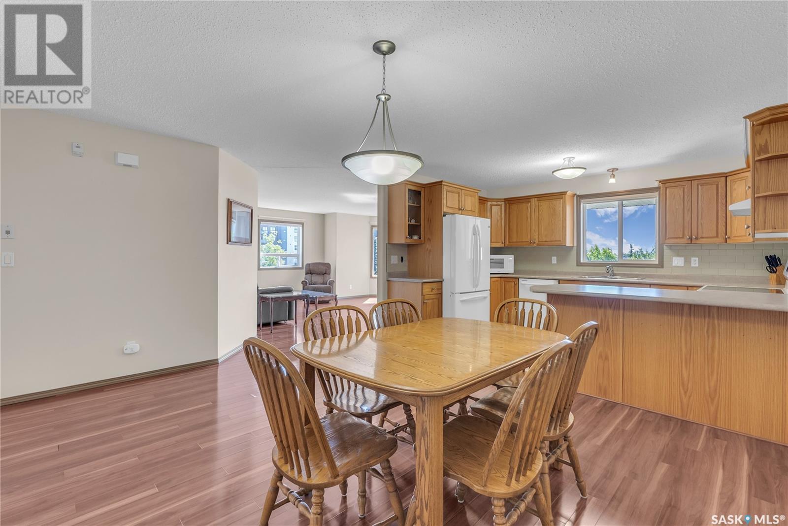 Welcome to Sienna Pointe I in the heart of University Heights-an inviting and beautifully maintained corner-unit condo that offers both space and comfort in a vibrant, walkable neighbourhood. Bathed in natural light from its southeast-facing exposure, this spacious 1,213 sq. ft. home feels bright and welcoming. The generous living room is truly the heart of the home, filled with sunlight from three directions and anchored by a cozy gas fireplace. Adjacent to the living area is a large dining room that comfortably accommodates a full dining set, including a buffet, making it ideal for hosting family and friends. The kitchen features ample countertop space, an eat-at peninsula, tile backsplash, and a sunny south-facing window above the sink. Plenty of cabinetry ensures everything has its place, and the overhead fan conveniently vents to the outside. The massive primary bedroom offers a peaceful retreat, complete with a walk-in closet and a private three-piece ensuite with a walk-in shower. A second bedroom provides flexibility for guests or a home office, while a spacious main bathroom adds convenience. The large laundry and storage room offers even more functionality with ample space for organization. This unit includes a heated underground parking stall and a secure storage unit in the east parkade. For those needing additional parking, electrified outdoor stalls are available for $200/year. The building is exclusively owner-occupied, ensuring a quiet and respectful atmosphere. Residents enjoy access to a well-appointed amenities room, guest suite, workshop, and a lovely outdoor gazebo for warm summer days. Recent updates include a new stove and washer in 2025, and a new furnace in 2020. Located just steps from grocery stores, banks, medical and dental clinics, restaurants, and more, this condo offers a lifestyle of ease, convenience, and community. Pets are not allowed. (id:43042)