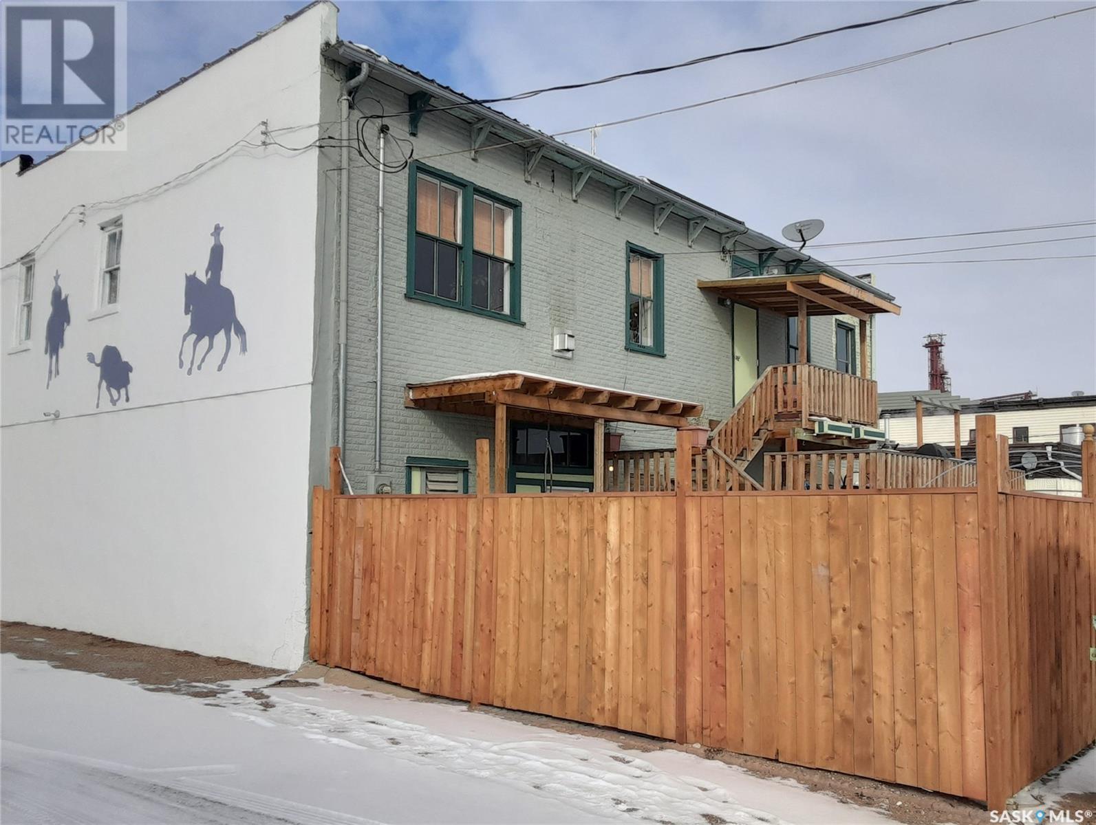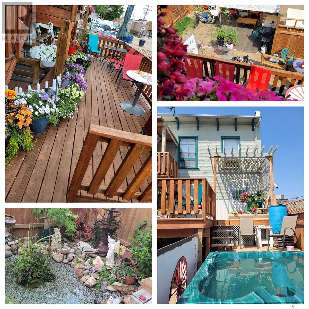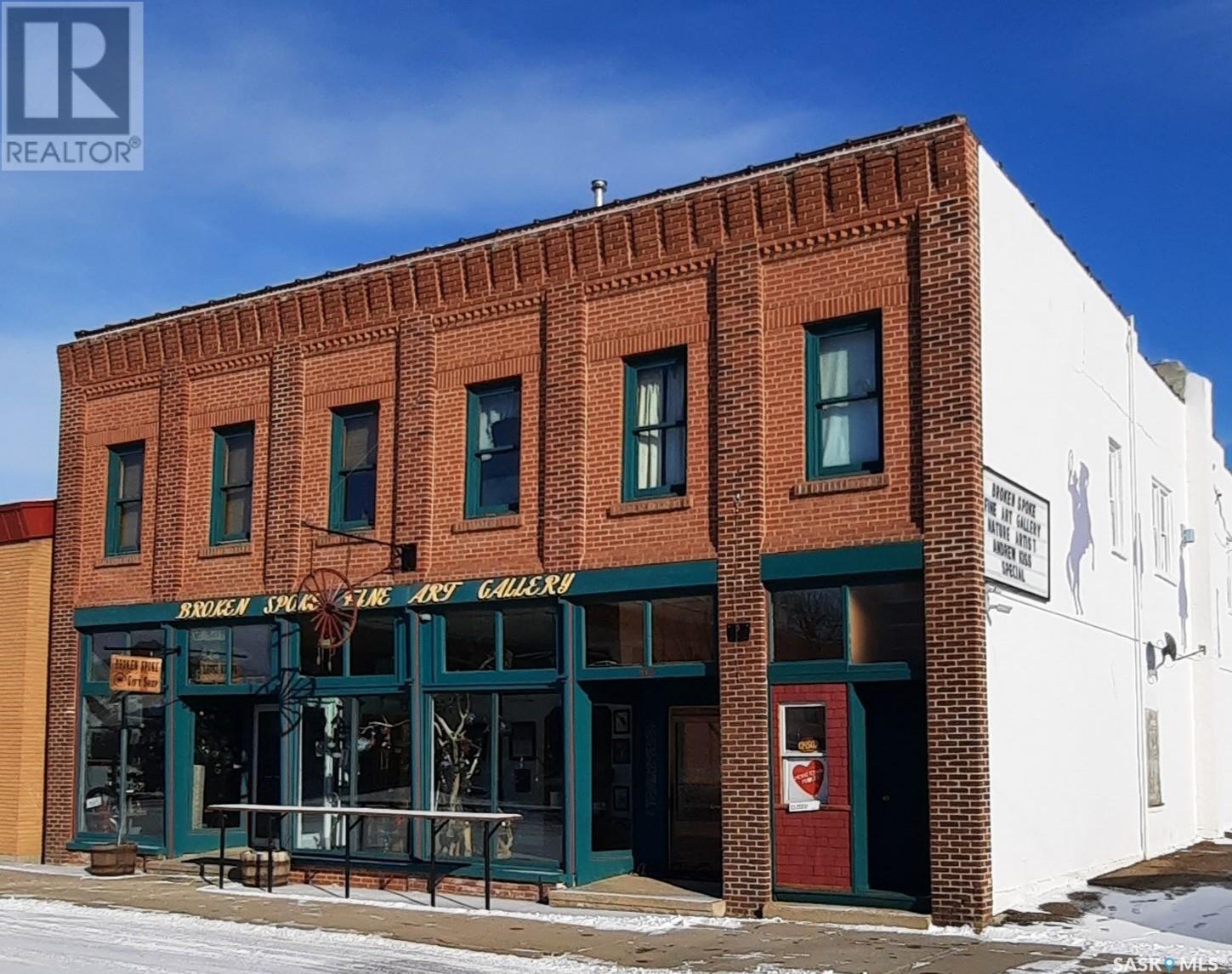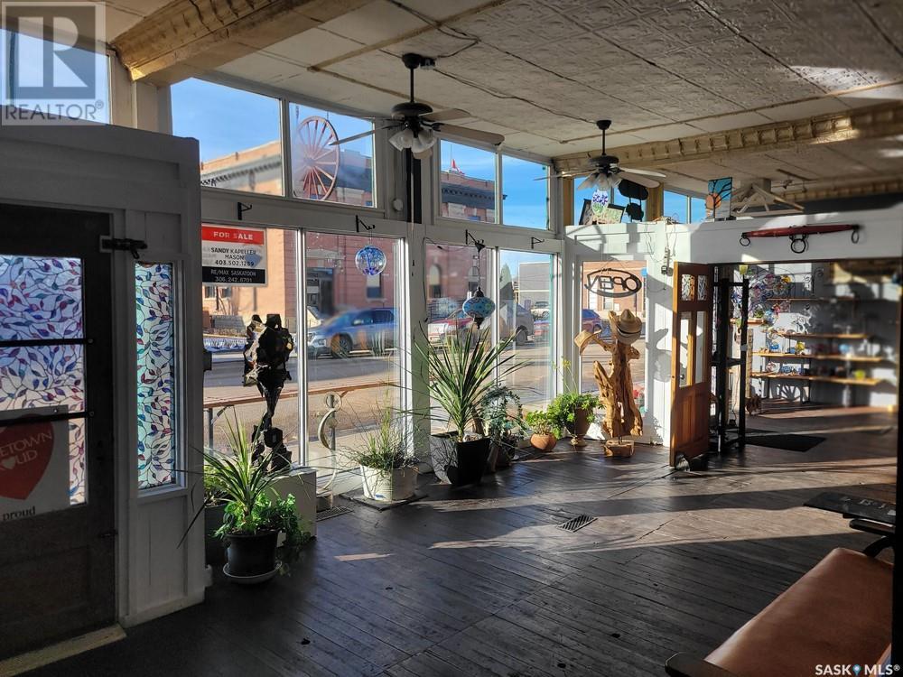 Heritage building for sale in Maple Creek's downtown core offering over $5000 per month in rental income. Built in 1915 this 'classic' has been inspected and updated to professional standards while maintaining its heritage designation. Currently being displayed as an art gallery with a gem and gift store, with 3800 square feet of retail space on the main floor, the opportunities are endless. If you'd like to continue this business (for the right price) the inventory can be included. Or bring your own ideas as the interior walls are not structural so can be moved to wherever your vision sees them. The second floor offers 5 suites; all are occupied with long term tenants. Two of the suites have their own laundry and the other 3 have a shared laundry room just down the hall. The rear of the building has been developed into a private oasis for the tenants use. It is fenced, has a pond, BBQ, covered sitting spaces as well as a hot tub. Maple Creek is a town of just over 2000 people however the Cypress Hills Provincial Park is just south of town; over 300,000 folks visit the park every summer filtering to Maple Creek for the boutique style shopping experience in Maple Creek's core. Be a part of the experience! Call today for your own private tour. (id:43042)