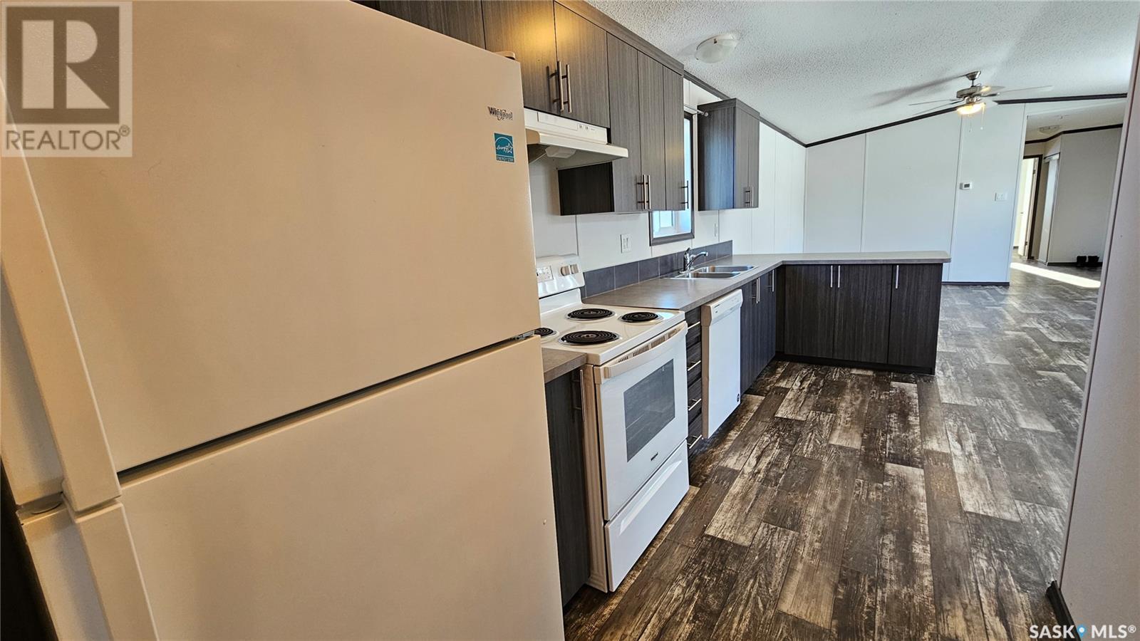 You can almost still smell the new on this 2020-built home in Prairie Sun Court. The 1,216 sq.ft. is a great size to feature plenty of room in the open kitchen/dining area/living room. The kitchen features dark cabinets, 3 appliances, and a convenient pantry. The 2 bedrooms down the west hall have the pleasure of their own 4-piece bathroom. The roomy primary bedroom boasts a walk-in closet and its own 3-piece bath including a large shower with seating. The laundry room has a newer washer and dryer, and also could serve as a back entry. Of course, you have PVC windows, vinyl siding – hey, everything is only 5 years old, so things like shingles, flooring, and fixtures still have a lot of life in them. At this price, this home is tough to beat. (id:43042)